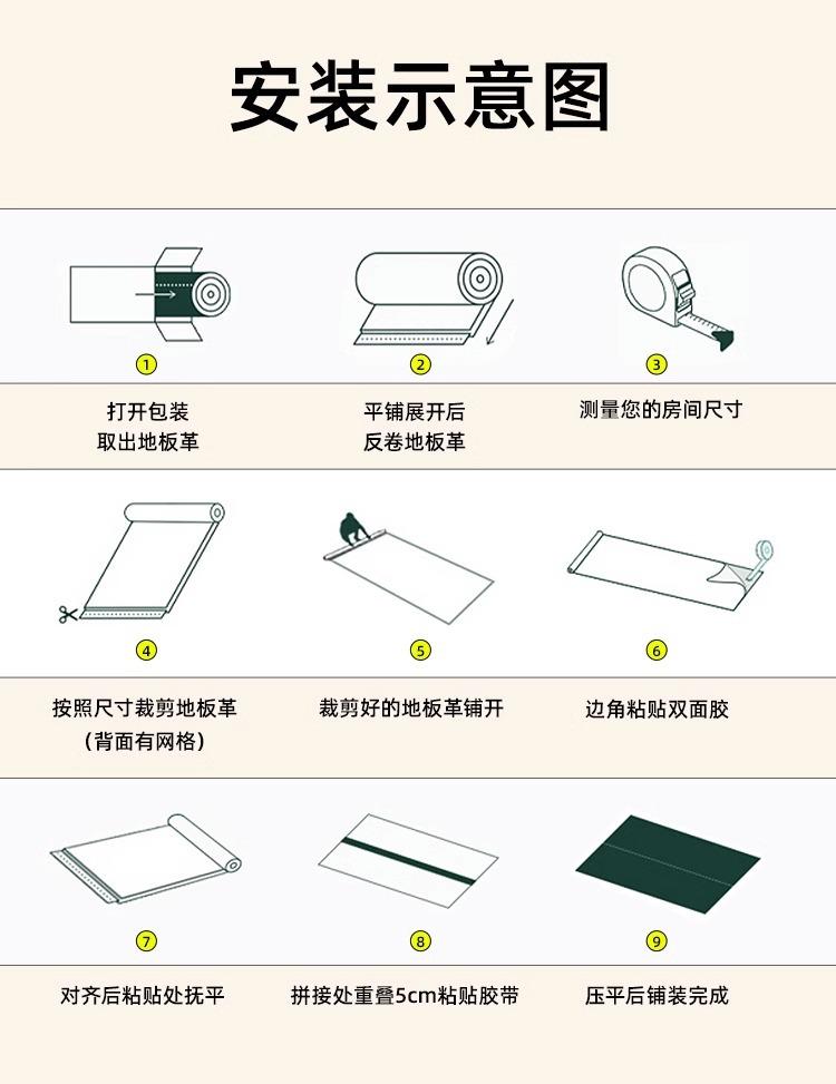 Alfombra Recámara Sala de Estar Área Grande Alfombra de Pavimento Completo Adhesiva Engrosada Resistente al Desgaste Habitación Hogar Piso de Plástico PVC Cuero
