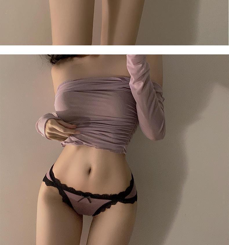 Berry Soda Encaje Francés Sexy Tiro Bajo Estilo Deseo Puro Panties de Niña Bloqueo de Color Irregular Caliente Transparente