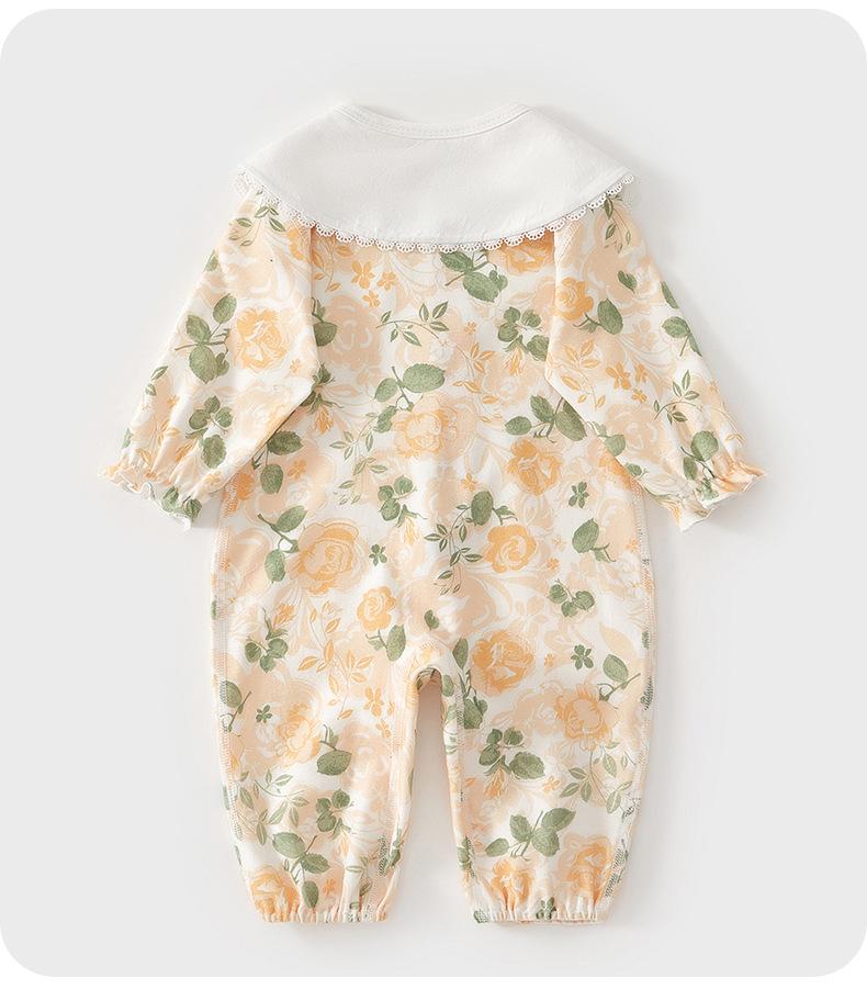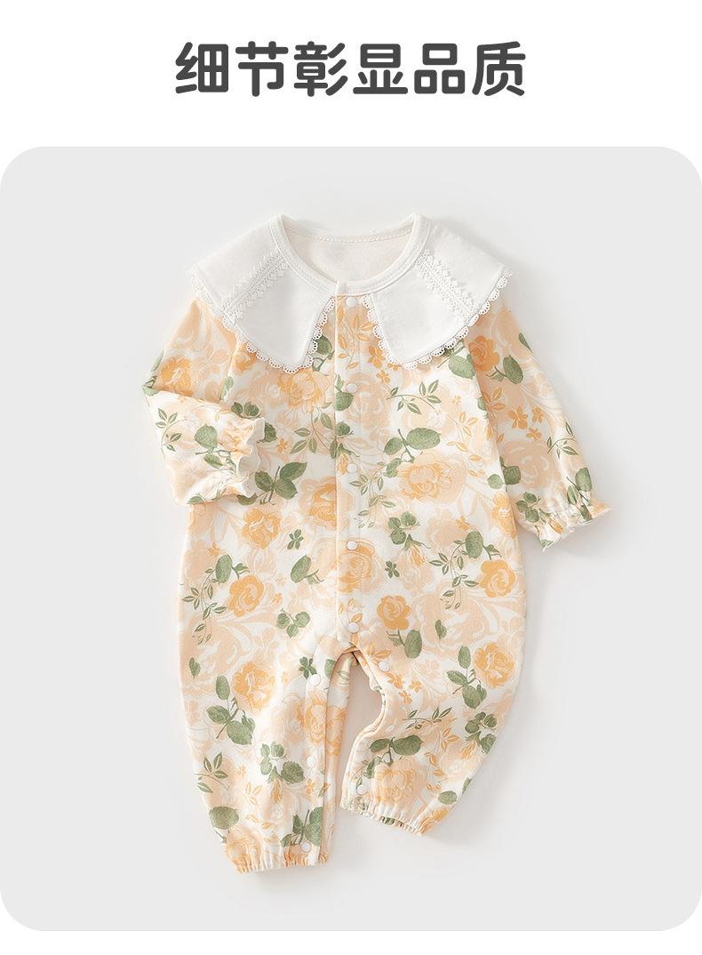 Mono de bebé de algodón puro, mameluco de princesa de manga larga para niña, ropa de gateo de primavera y otoño, ropa fina de otoño para las cuatro estaciones