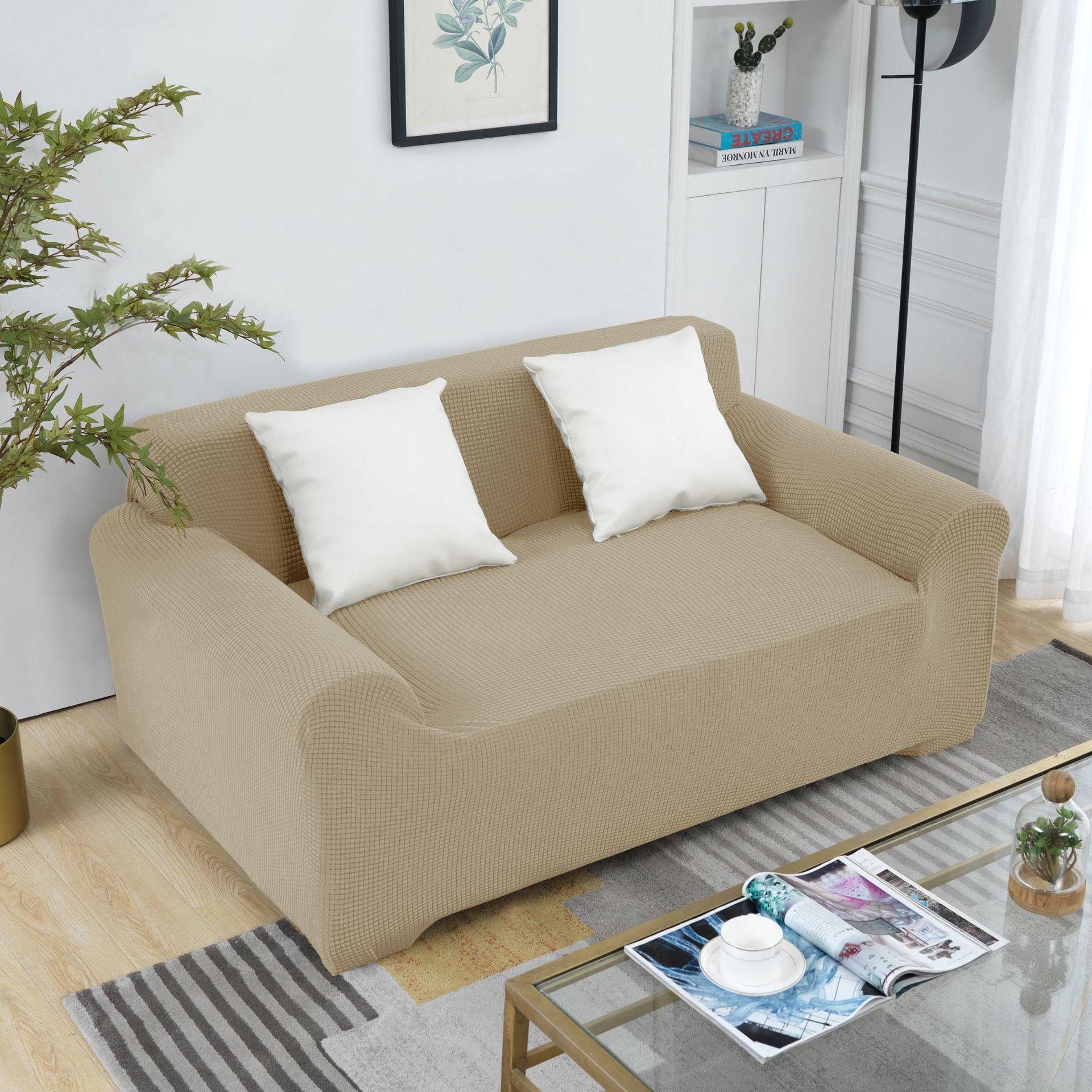 Funda de sofá de color liso con forro polar, funda de sofá con todo incluido, funda de sofá con combinación de cojines