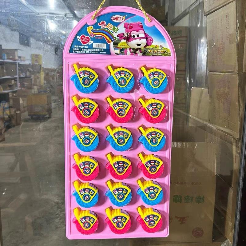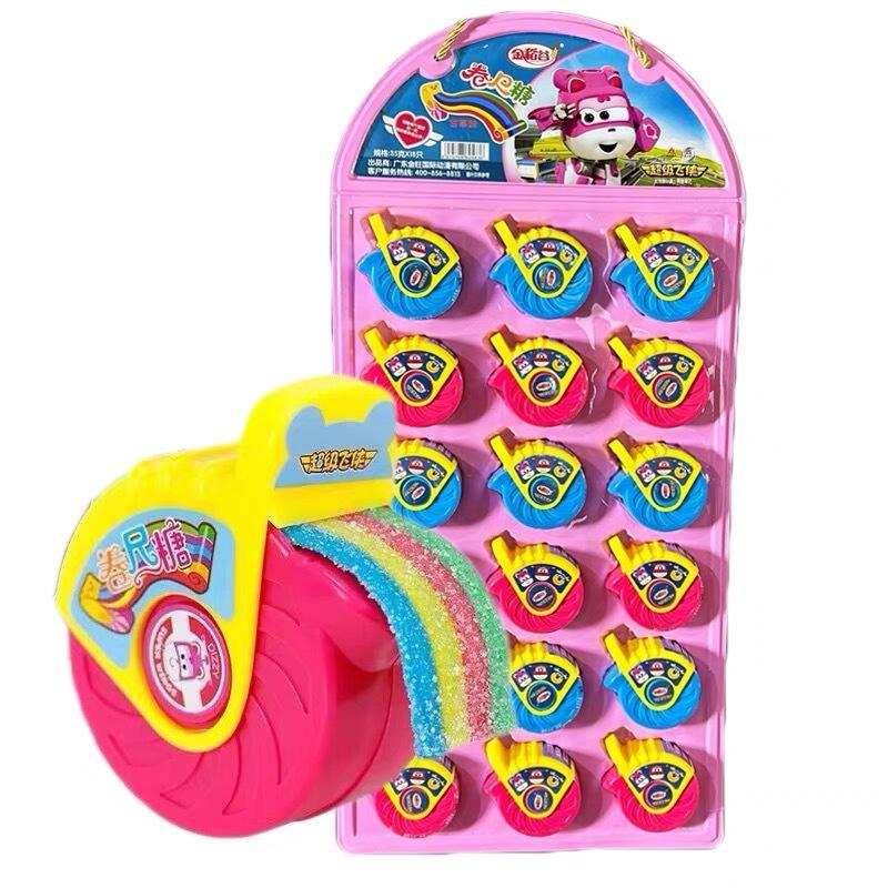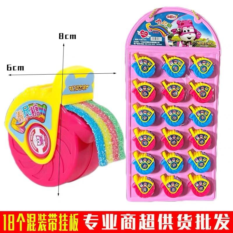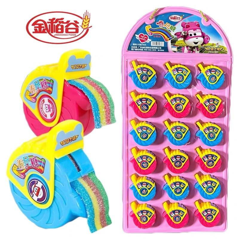 Juguete de caramelo con cinta de arcoíris para niños de arroz dorado, un rollo de jugo agridulce, caramelos suaves y largos, bocadillos divertidos y deliciosos.