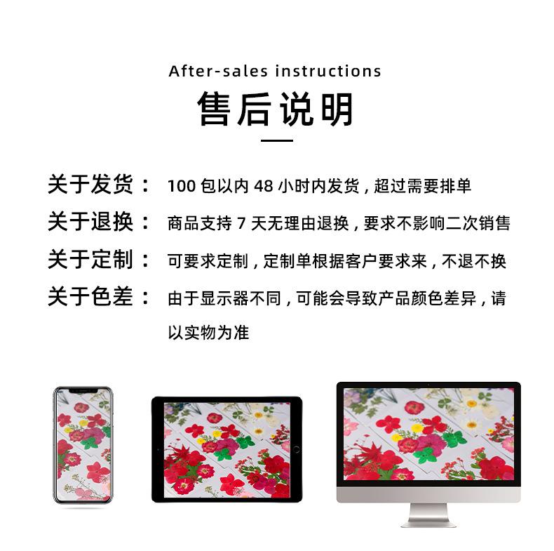 1. Nuestra tienda ofrece un plazo de devolución sin condiciones de siete días. Si no le convence el producto después de recibirlo, no abra el paquete. Las flores secas son frágiles y pueden dañarse fácilmente durante el desembalaje y el transporte, lo que afectará las ventas secundarias. Las flores secas se humedecen fácilmente al exponerlas al aire durante un tiempo prolongado. Tenga en cuenta que las flores secas no se pueden devolver ni cambiar una vez abierto el paquete.