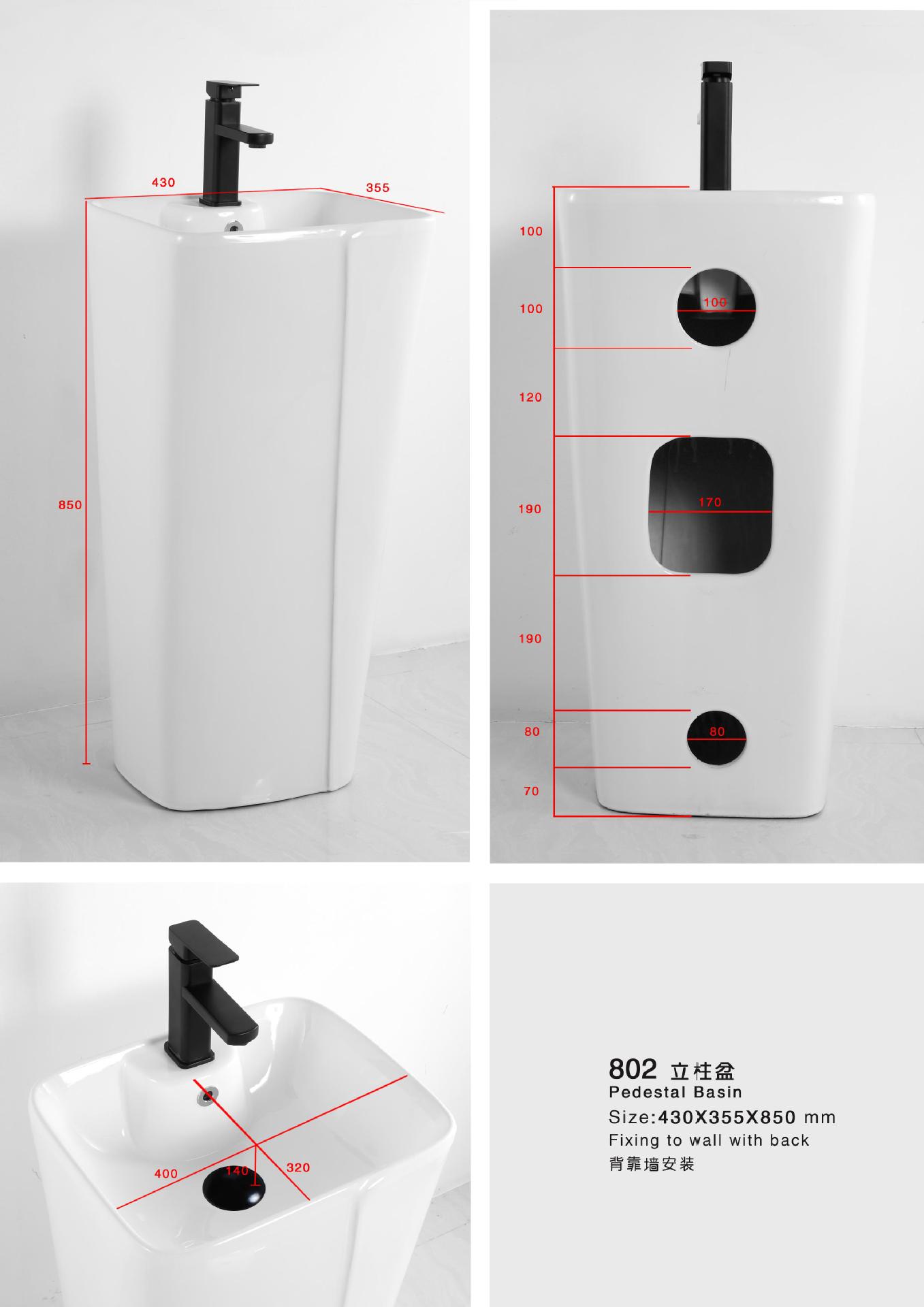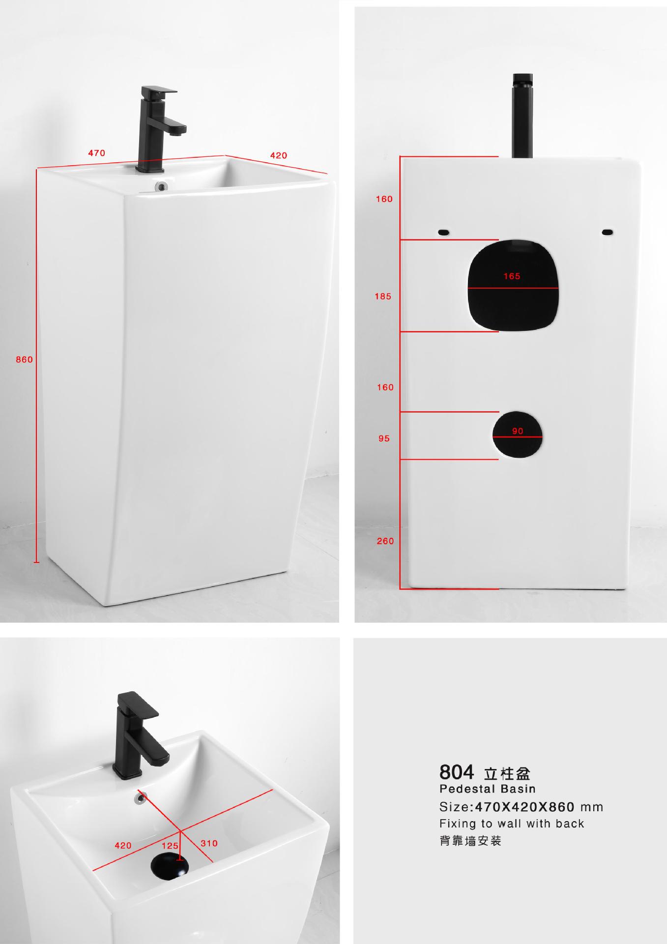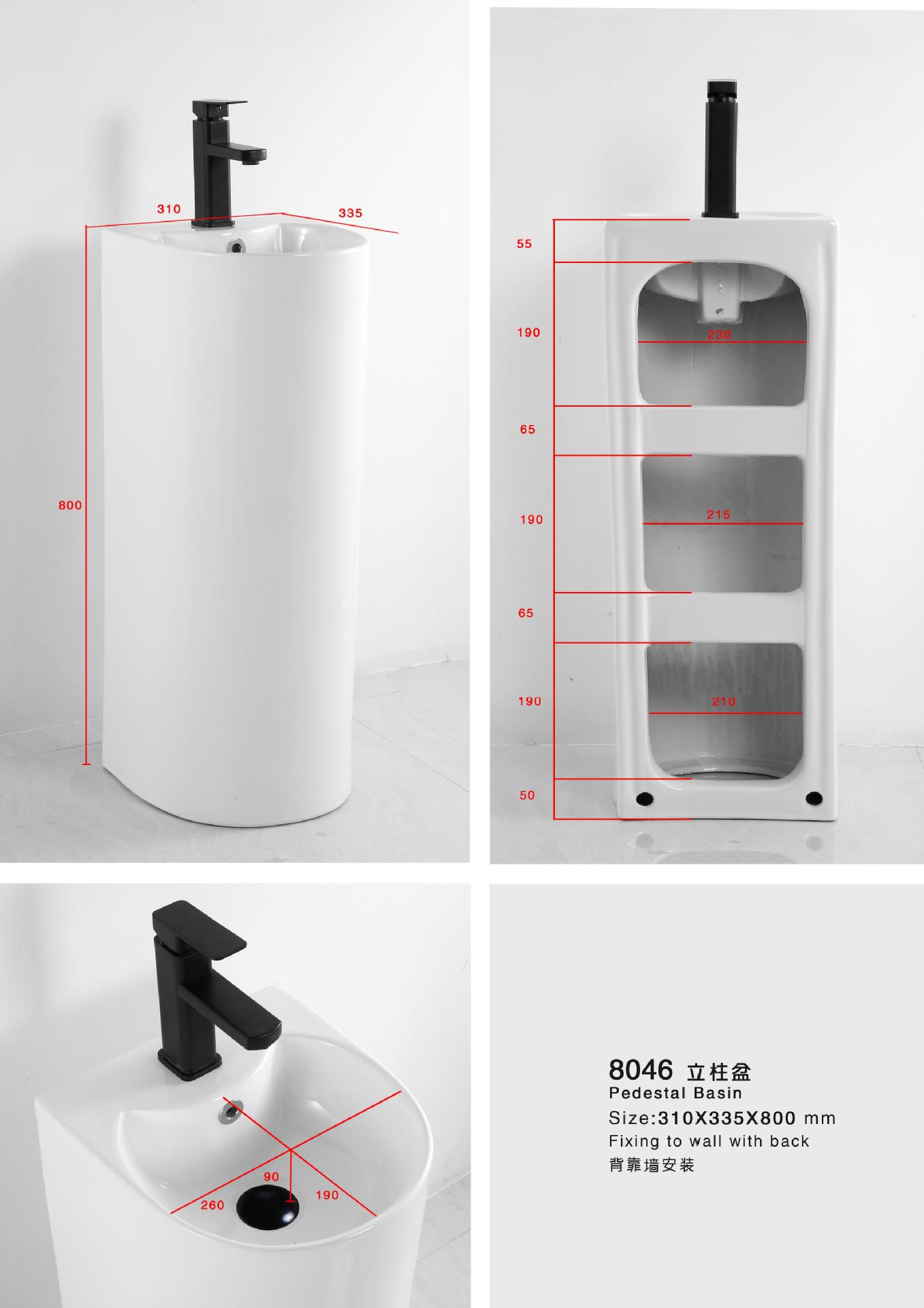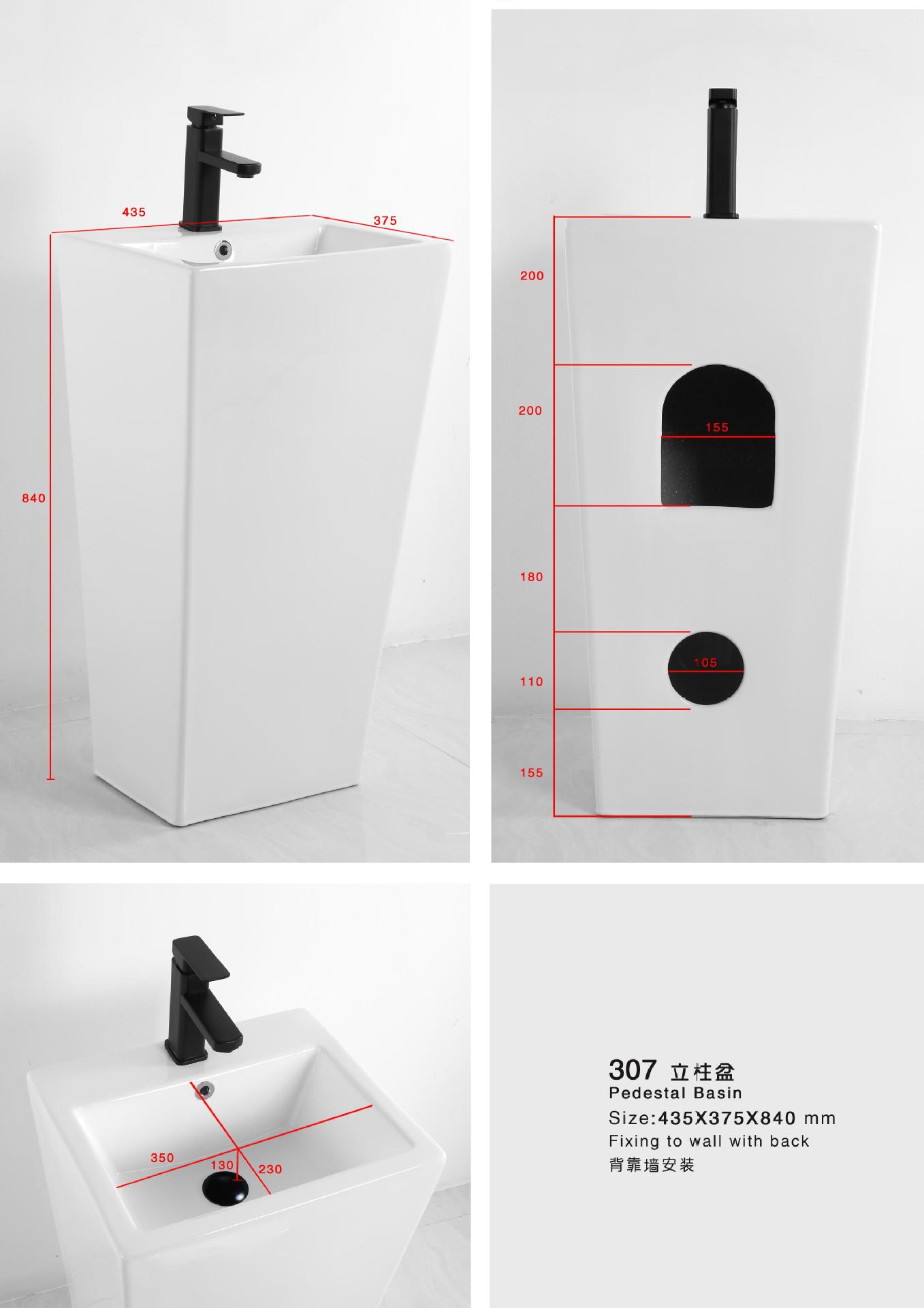 Lavabo de columna de cerámica integrado, lavabo de hotel, inodoro de balcón, proyecto de lavabo para apartamento pequeño