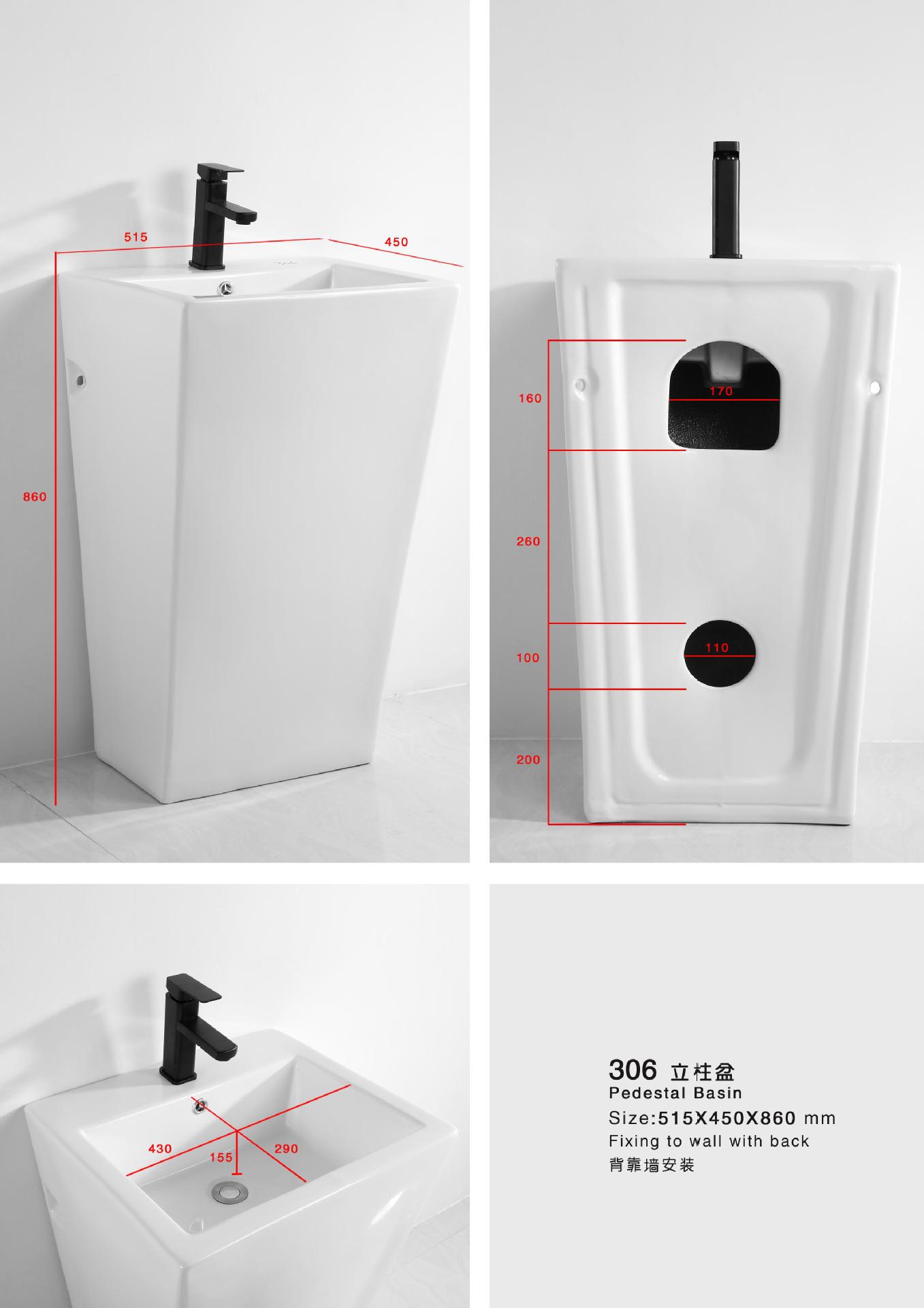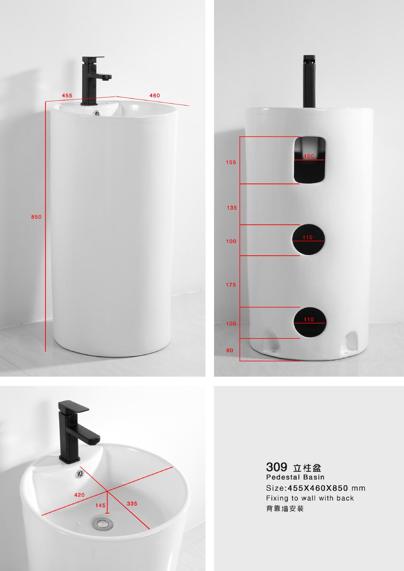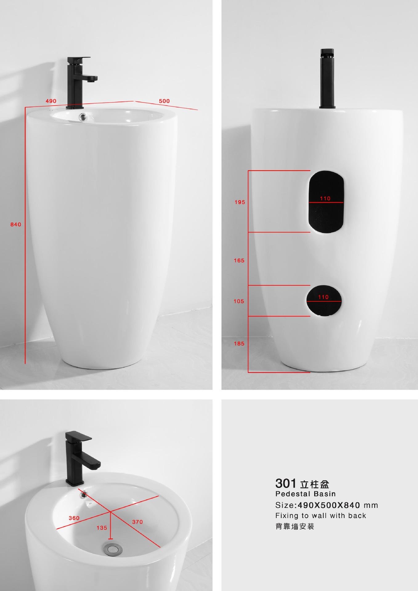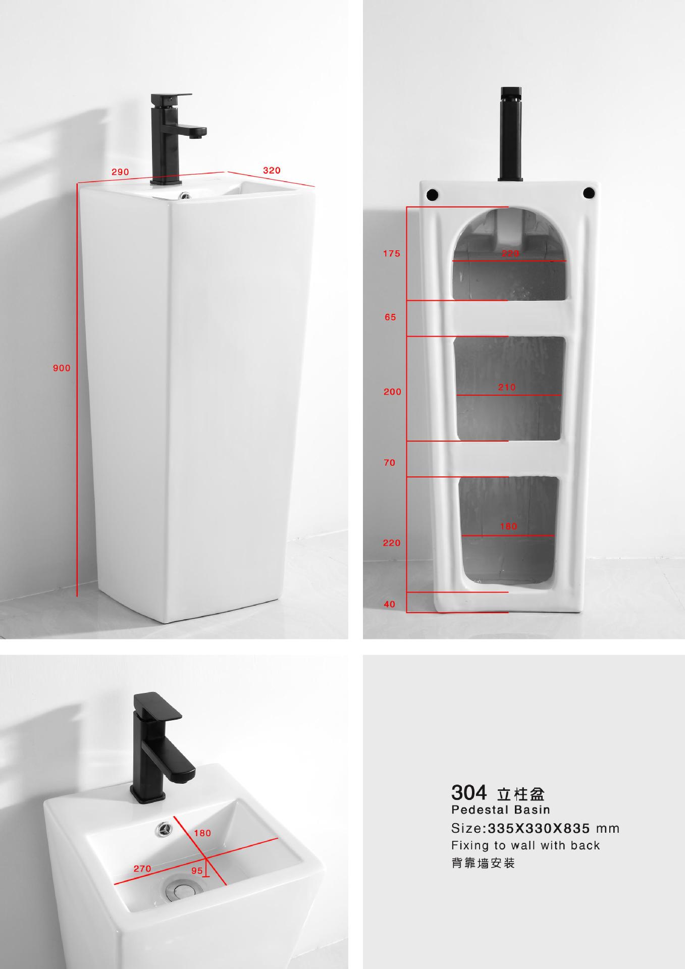 Lavabo de columna de cerámica integrado, lavabo de hotel, inodoro de balcón, proyecto de lavabo para apartamento pequeño