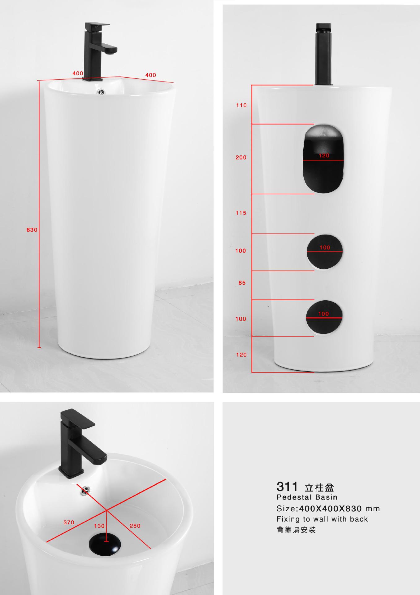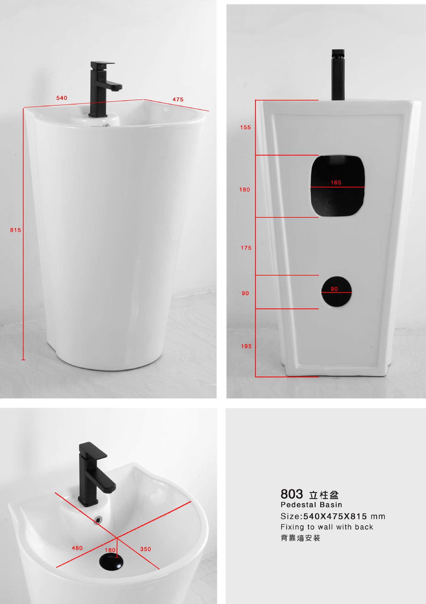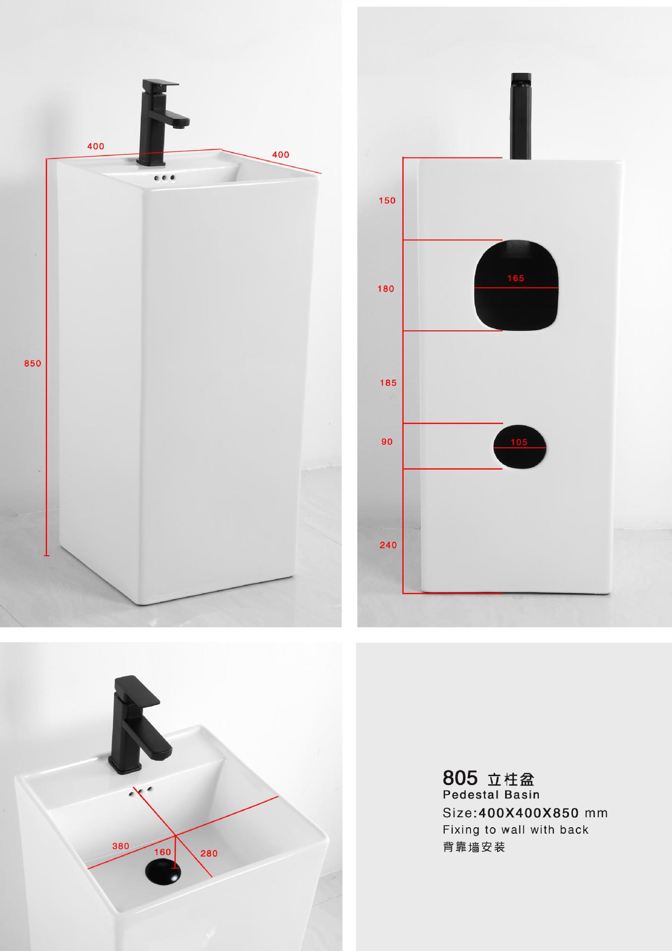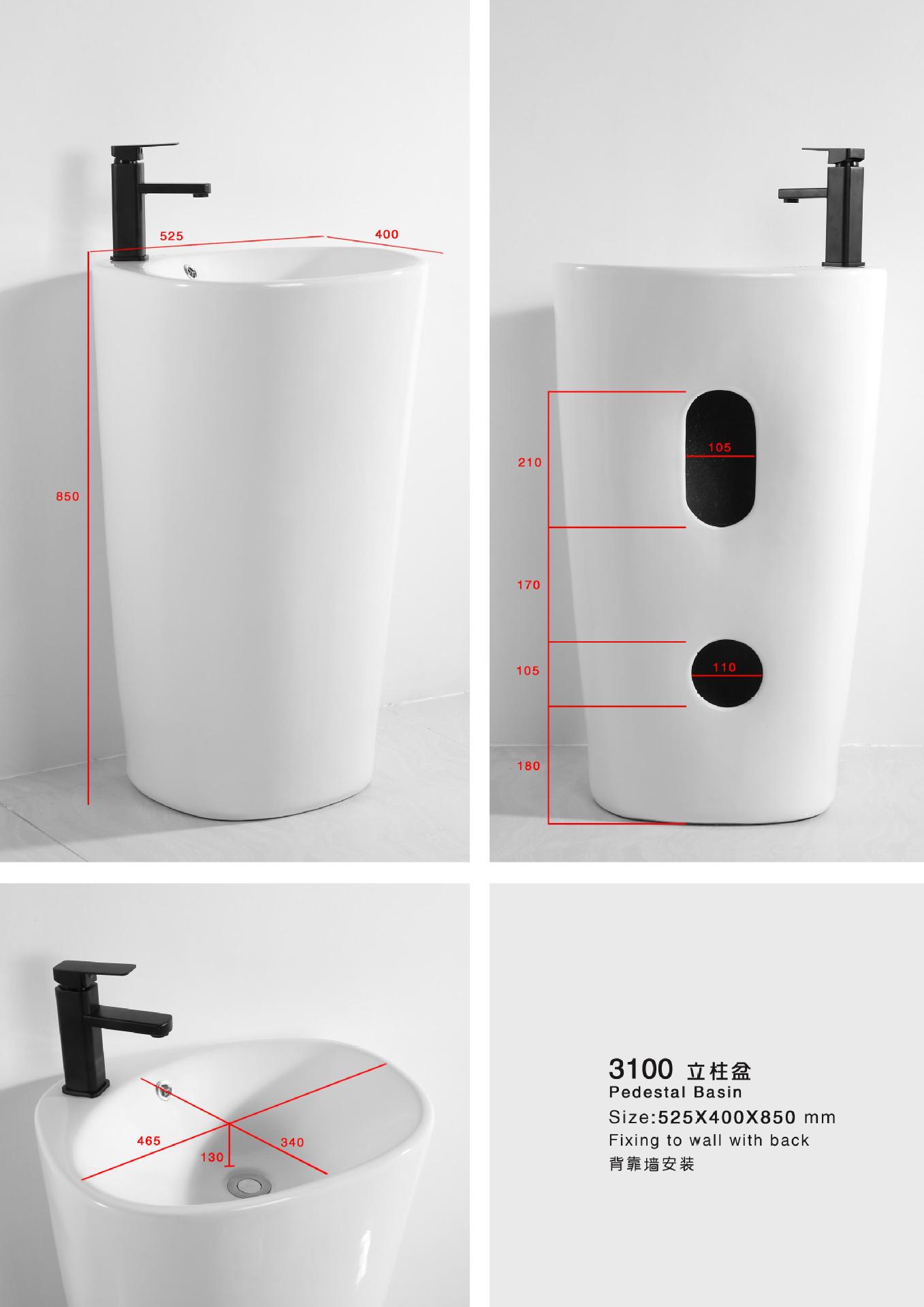 Lavabo de columna de cerámica integrado, lavabo de hotel, inodoro de balcón, proyecto de lavabo para apartamento pequeño