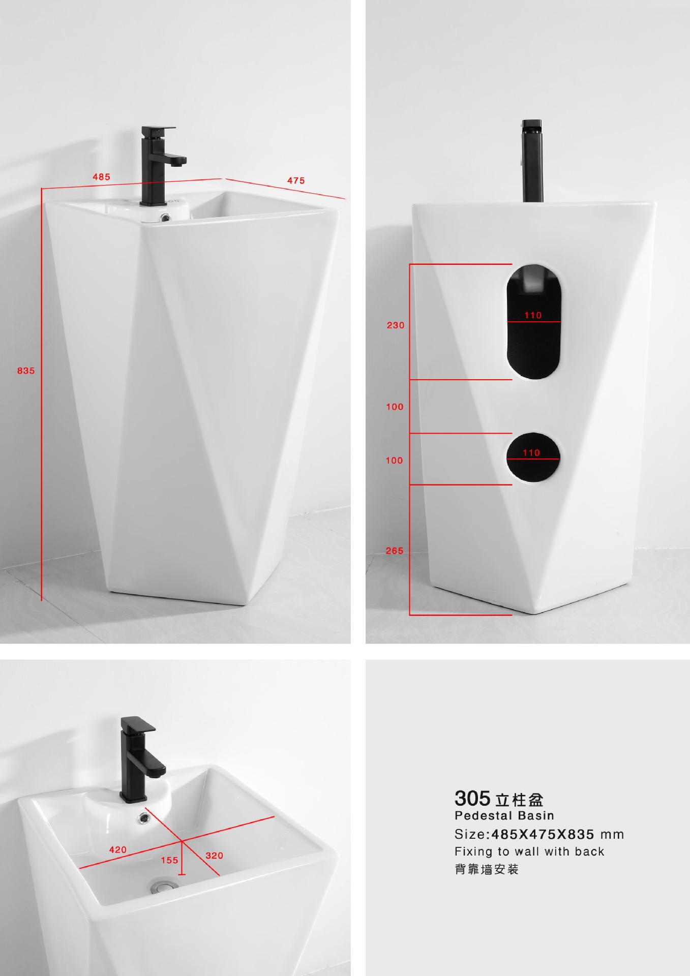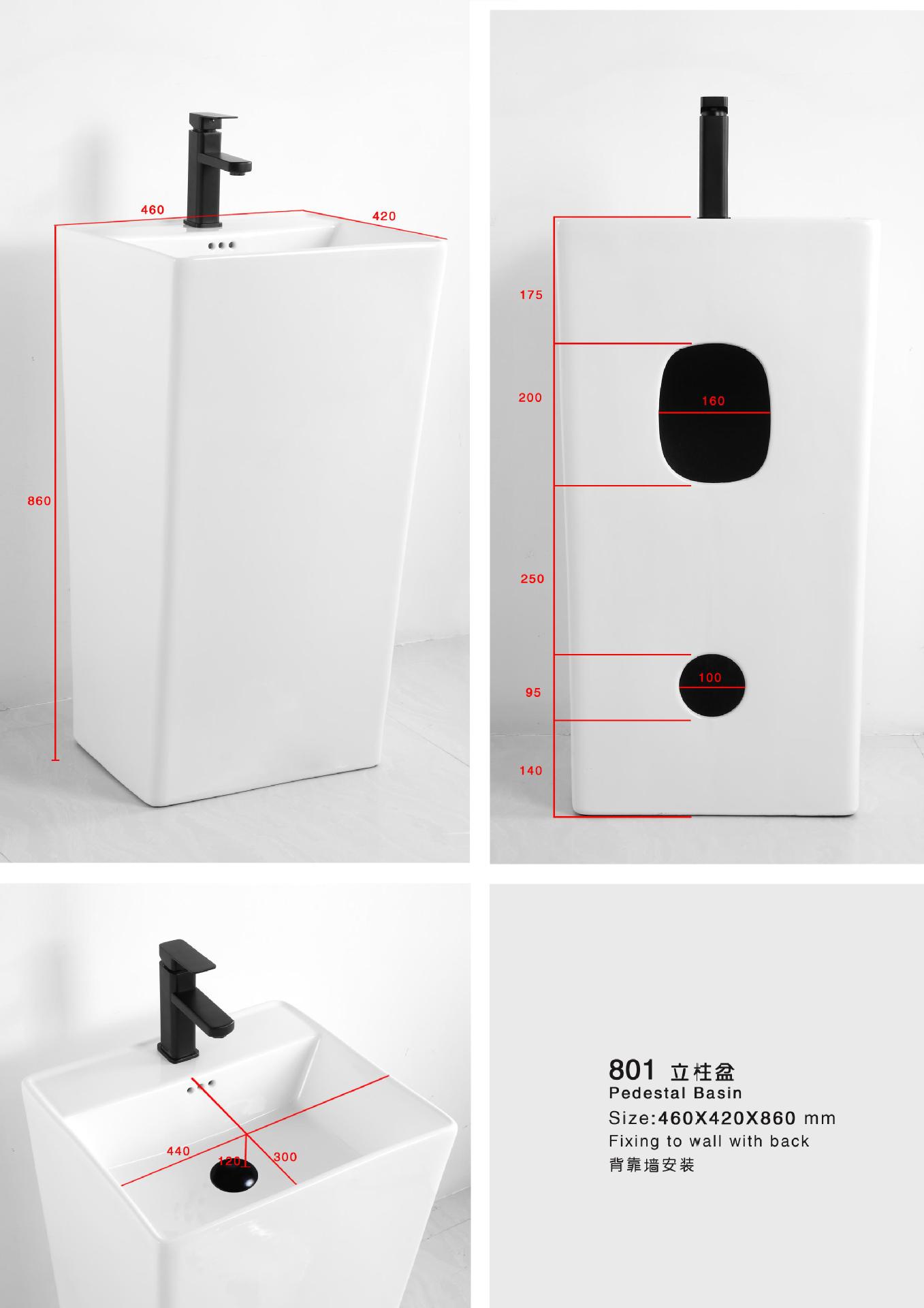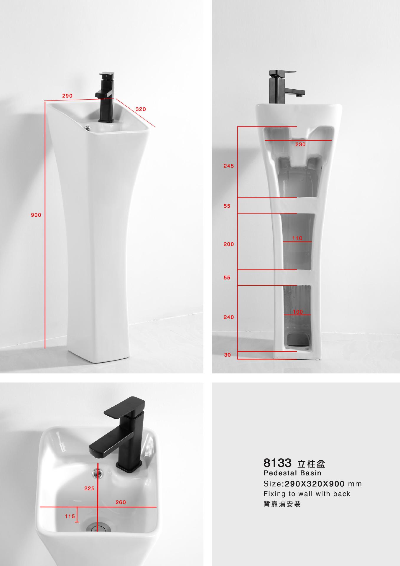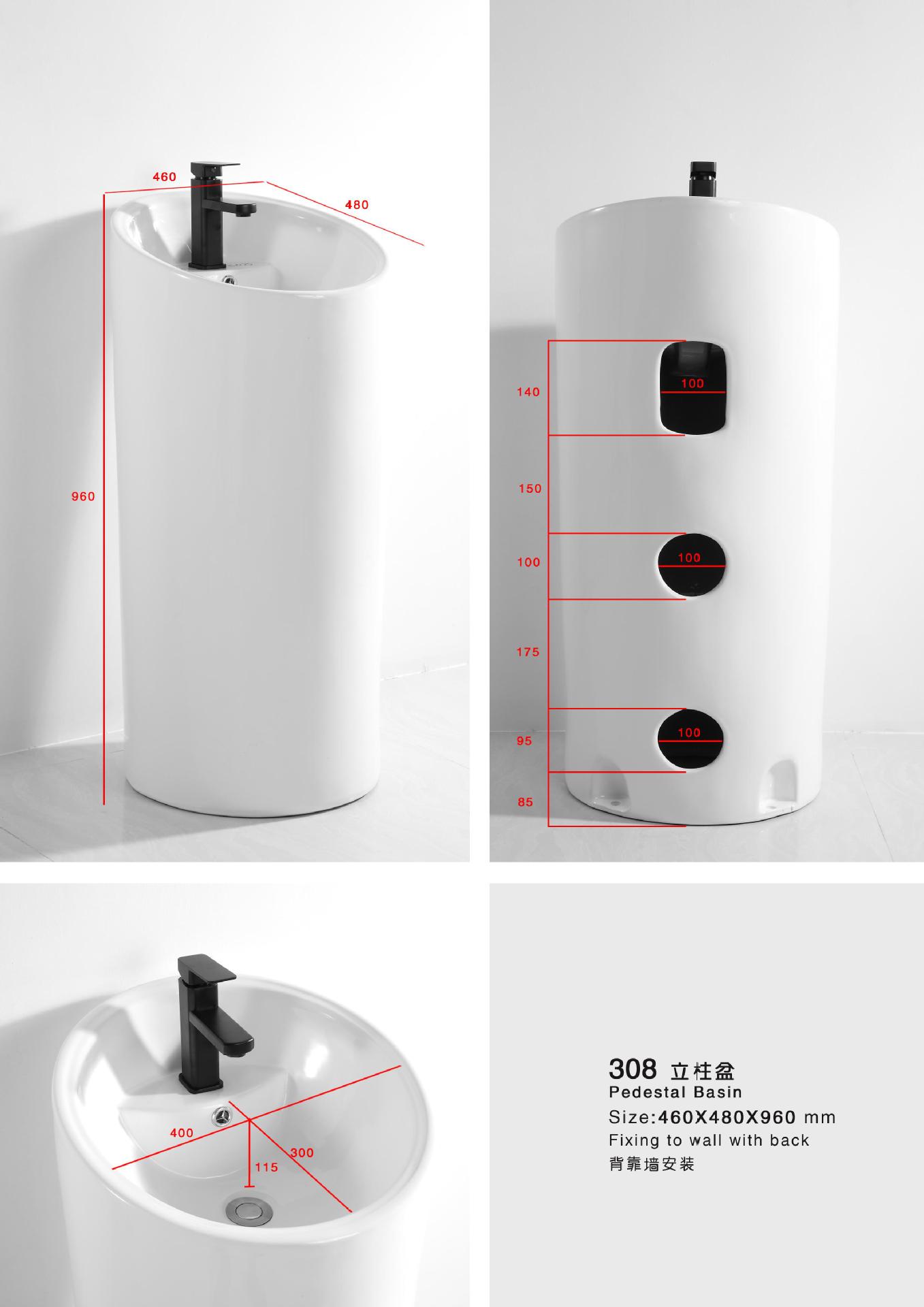 Lavabo de columna de cerámica integrado, lavabo de hotel, inodoro de balcón, proyecto de lavabo para apartamento pequeño