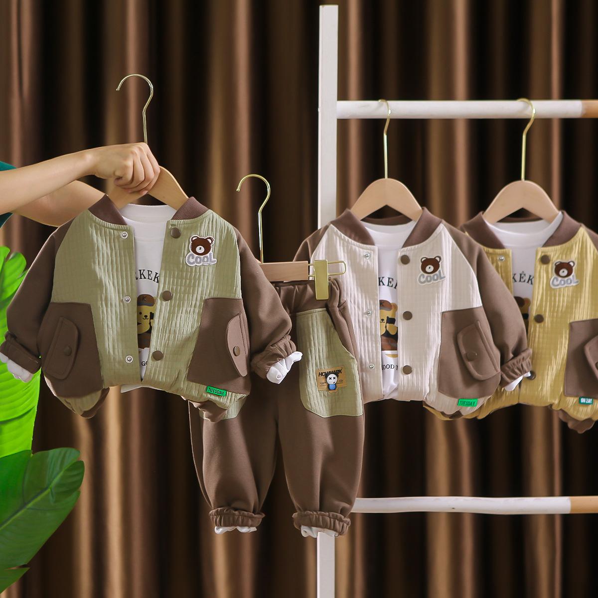 Ropa para Niños Yihao Traje de Primavera para Niños 2025 Nuevo Ropa para Bebé y Niños Estilo Primavera/Otoño Uniforme de Béisbol de Dibujos Animados Conjunto de Tres Piezas