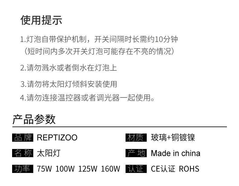 75 watt sun lamp, 100 Watt Sun Light, 125 Watt Sun Light, 160 Watt Sun Light