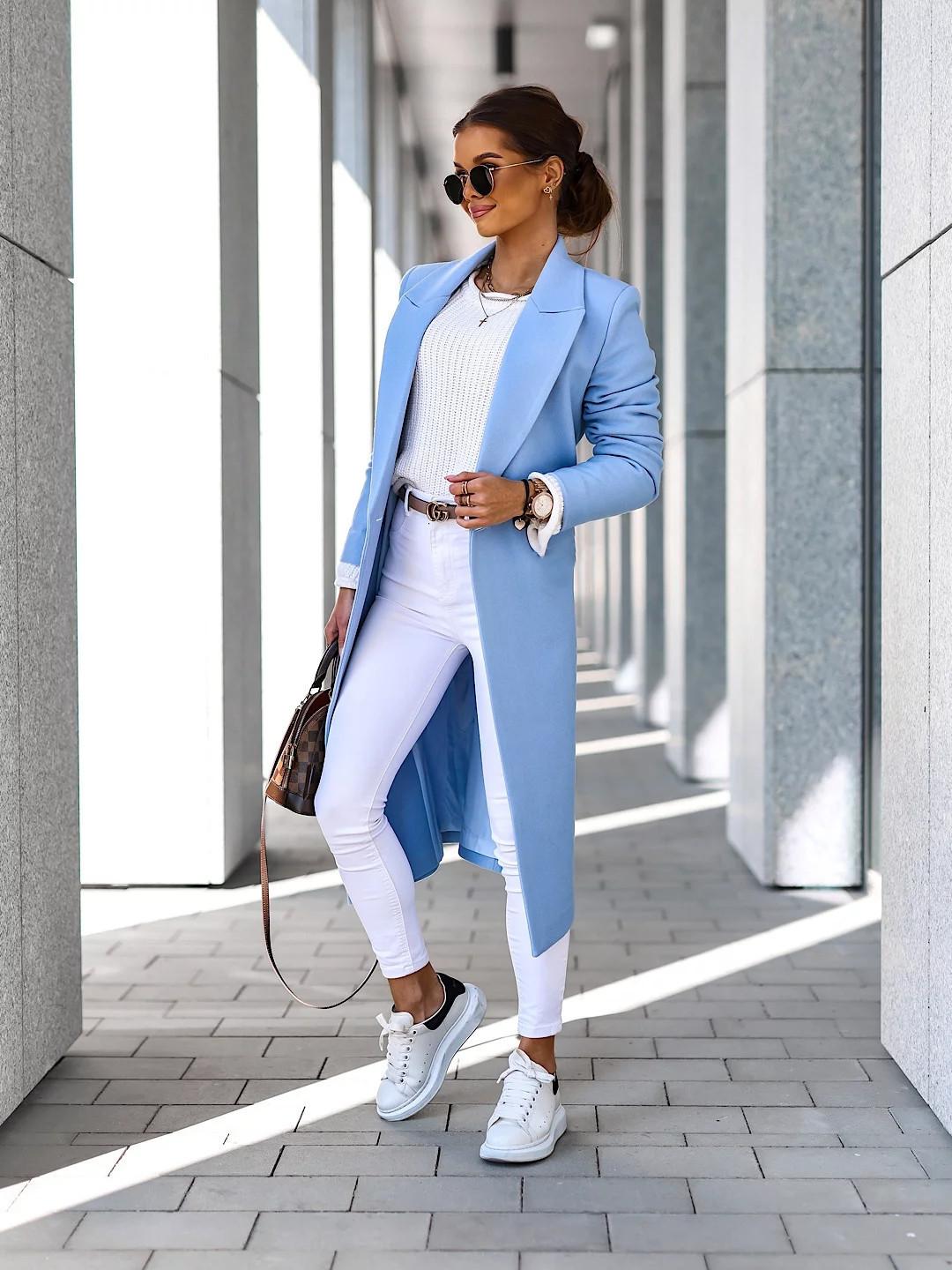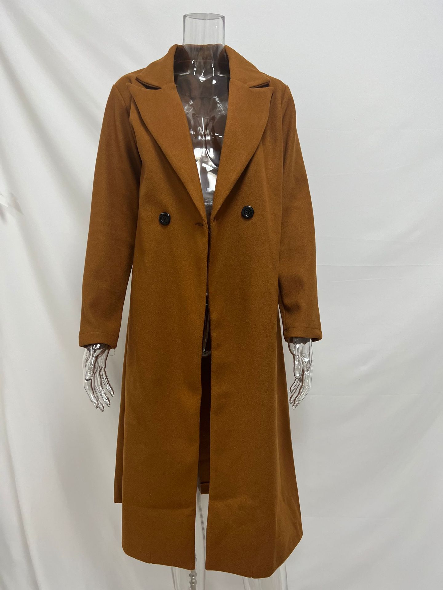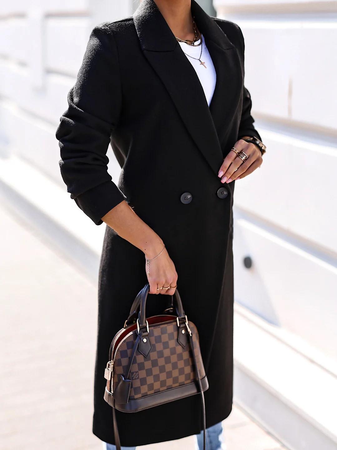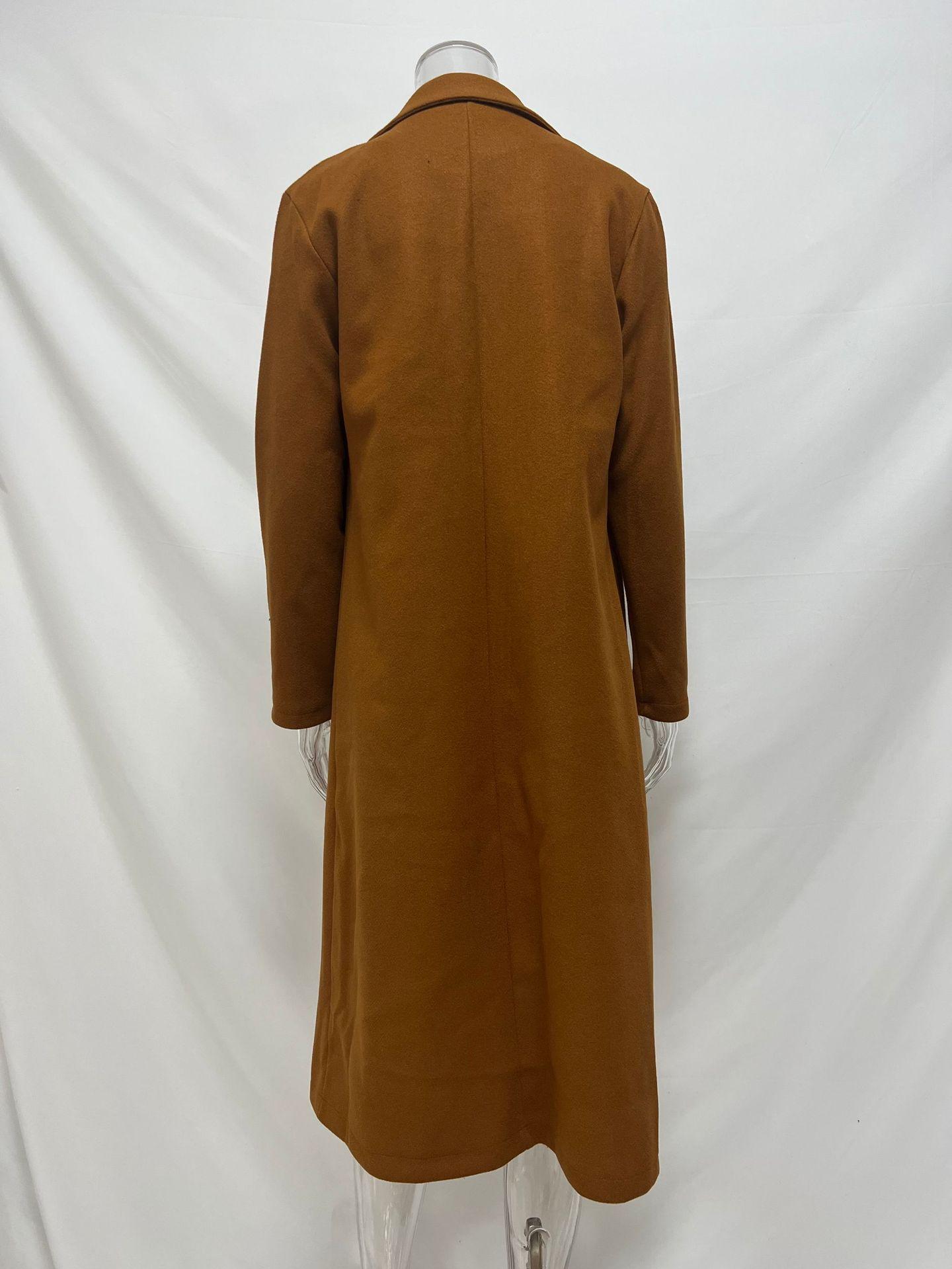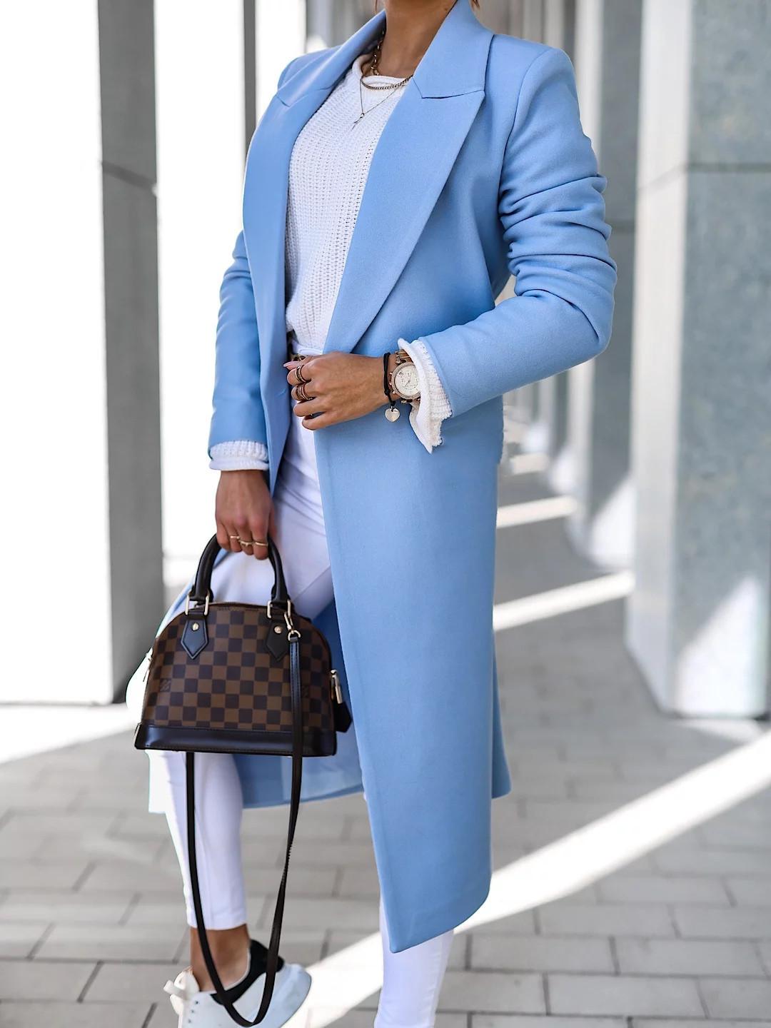 Abrigo de lana con solapa y botones, largo y medio, color liso, para mujer, otoño e invierno, 2024