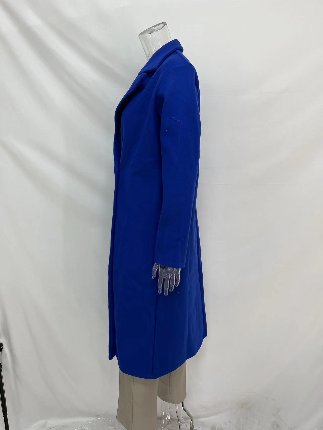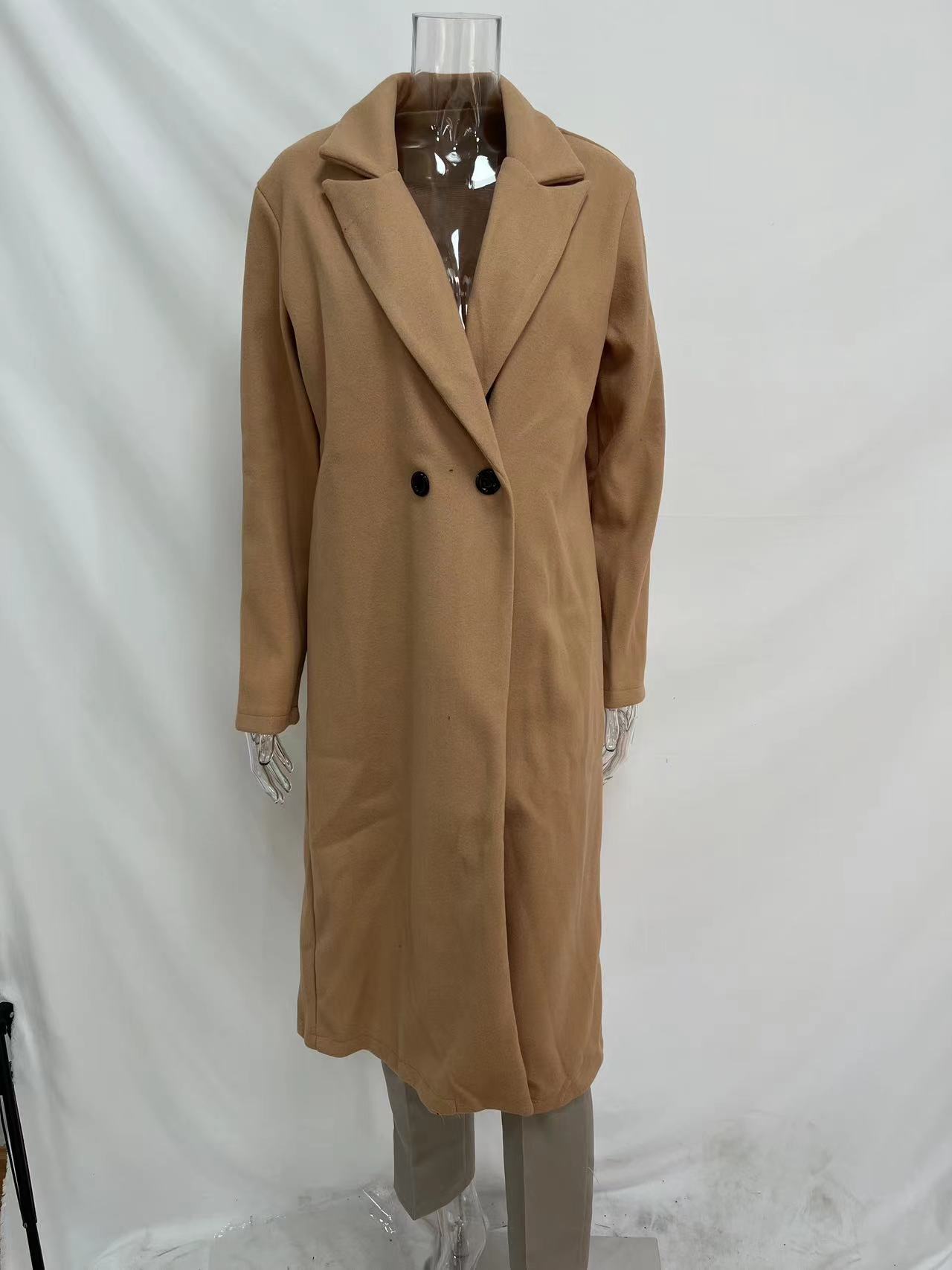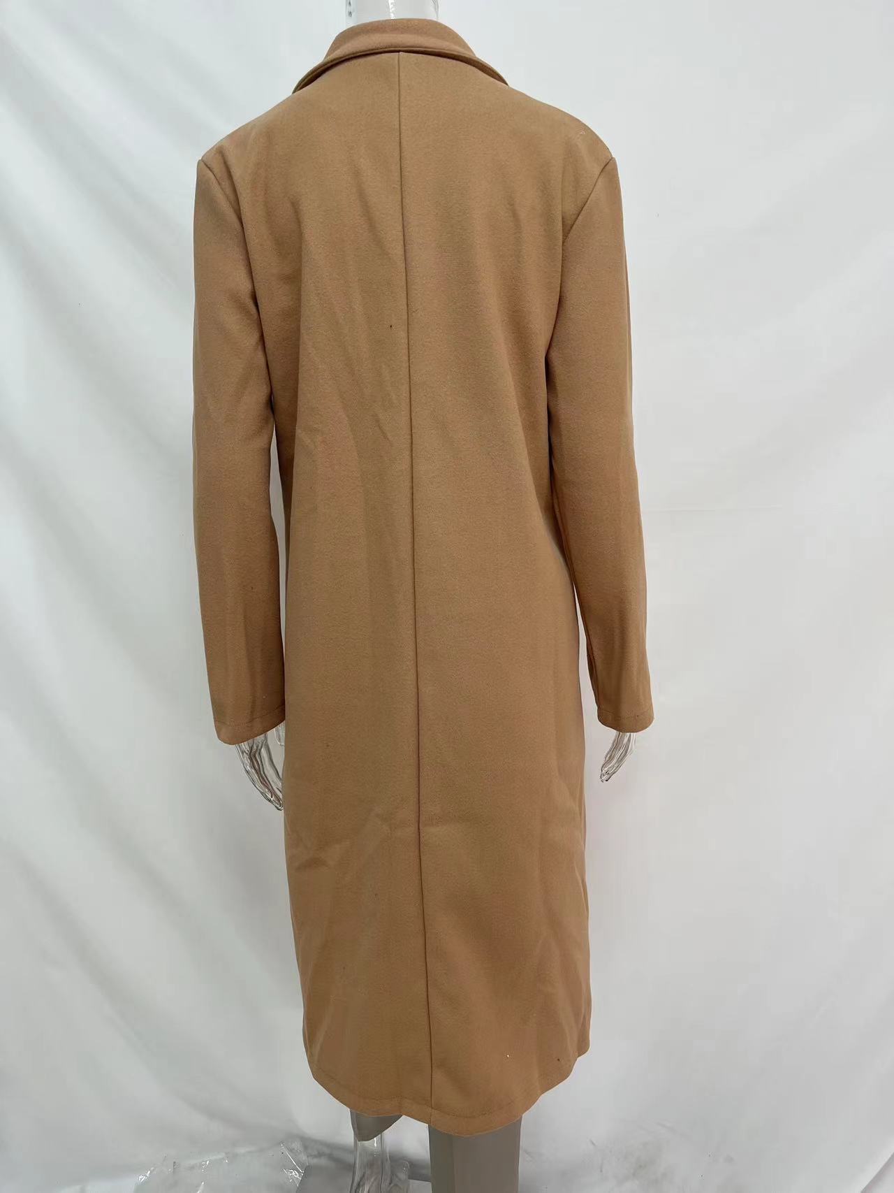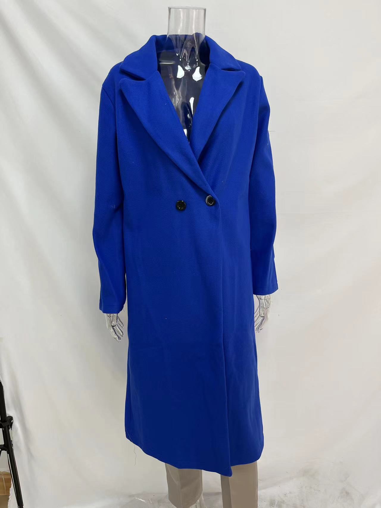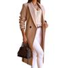 Abrigo de lana personalizado para mujer, estilo europeo y americano, para otoño e invierno, de manga larga, color liso, cruzado, alargado, para comercio exterior transfronterizo.
