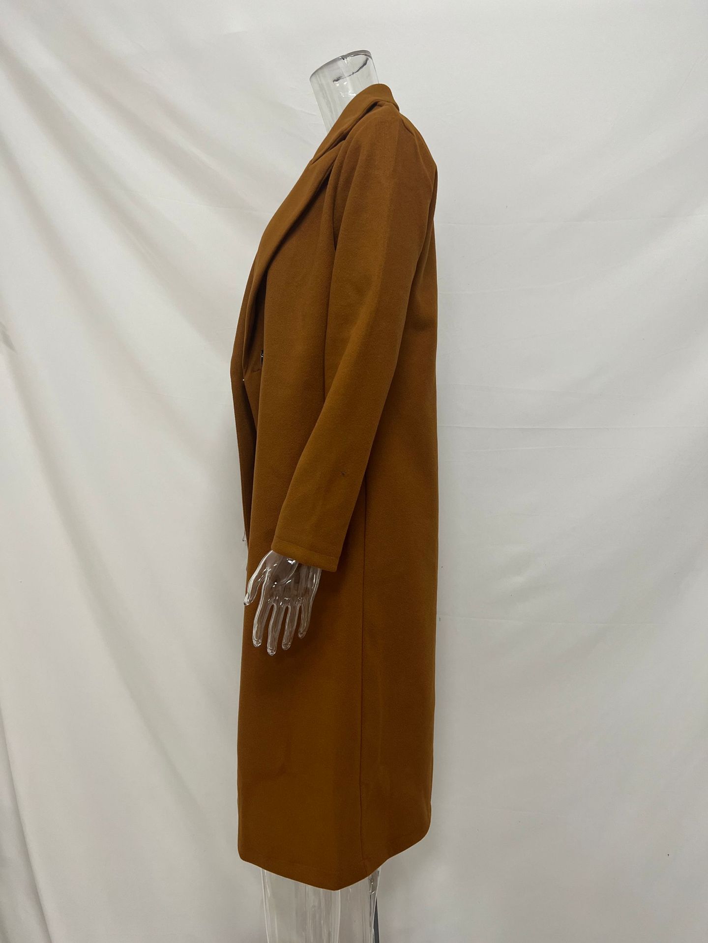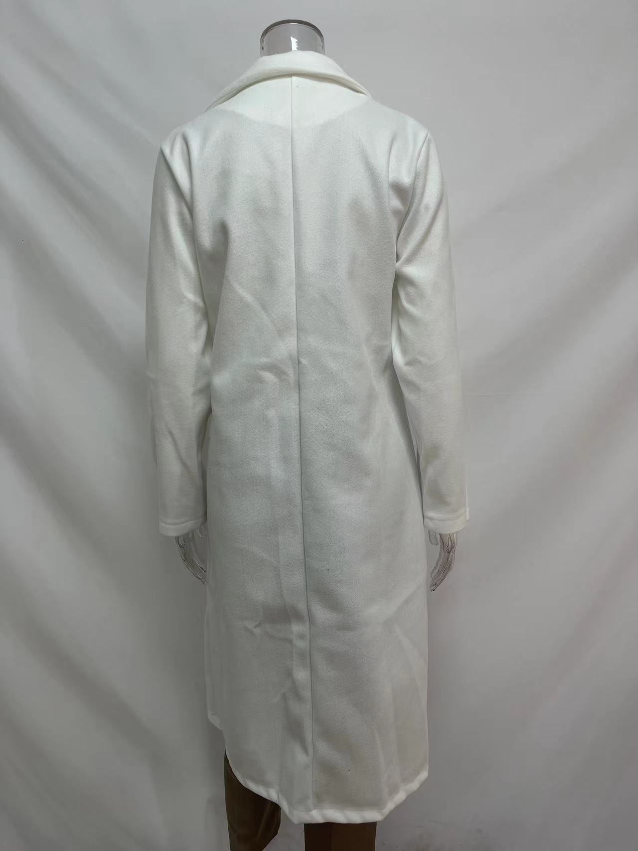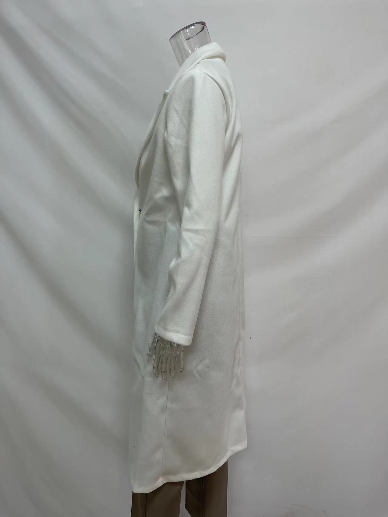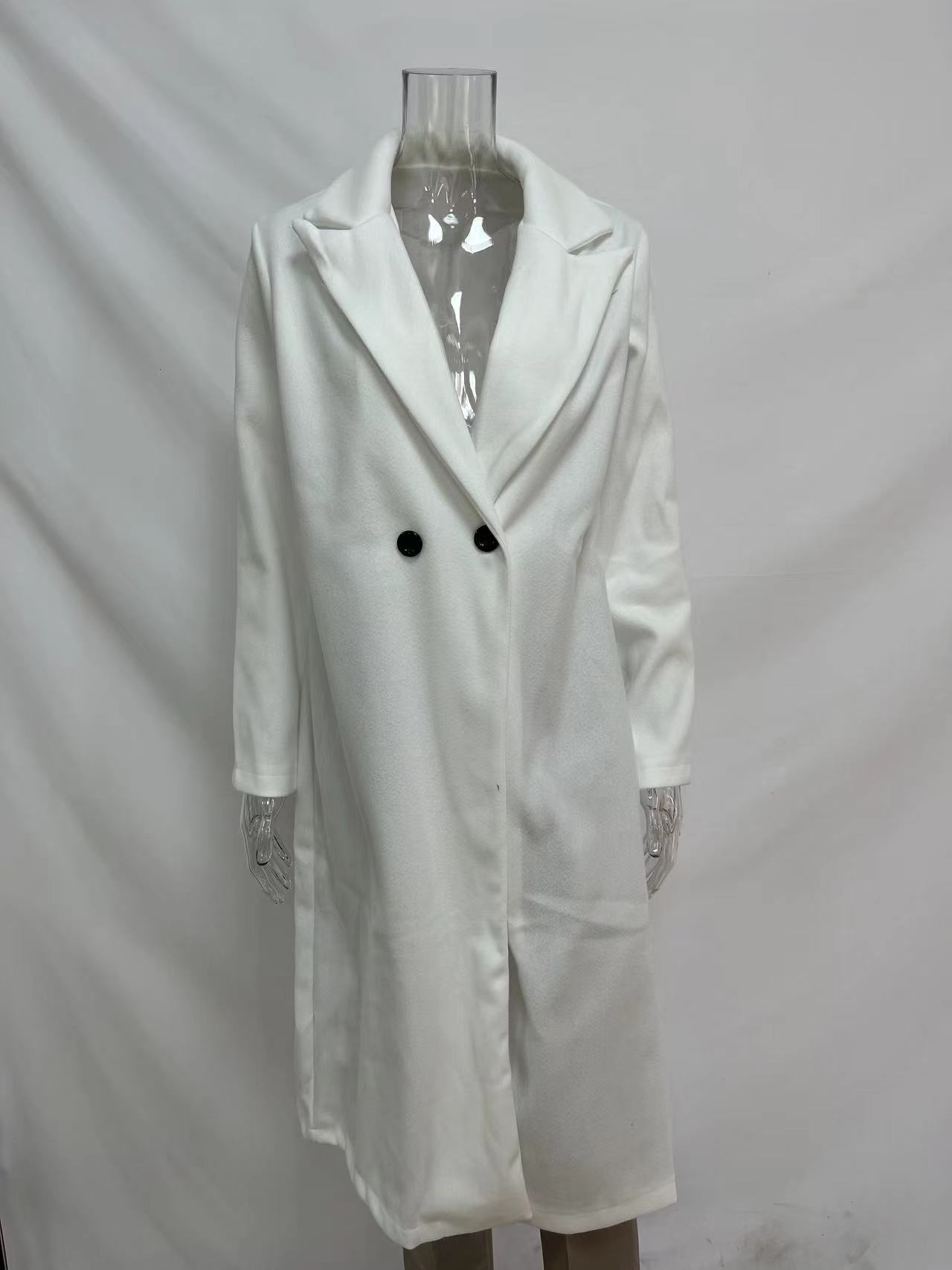 Abrigo de lana personalizado para mujer, estilo europeo y americano, para otoño e invierno, de manga larga, color liso, cruzado, alargado, para comercio exterior transfronterizo.