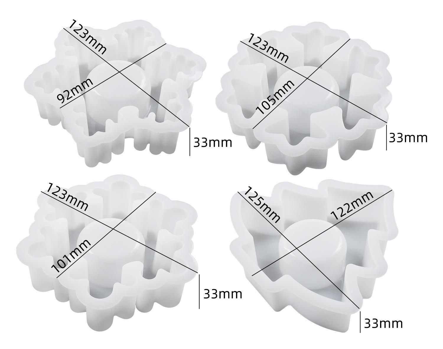 No. 1 Snowflake mold, No. 2 Snowflake mold, No. 3 snowflake mold, Christmas tree mold
