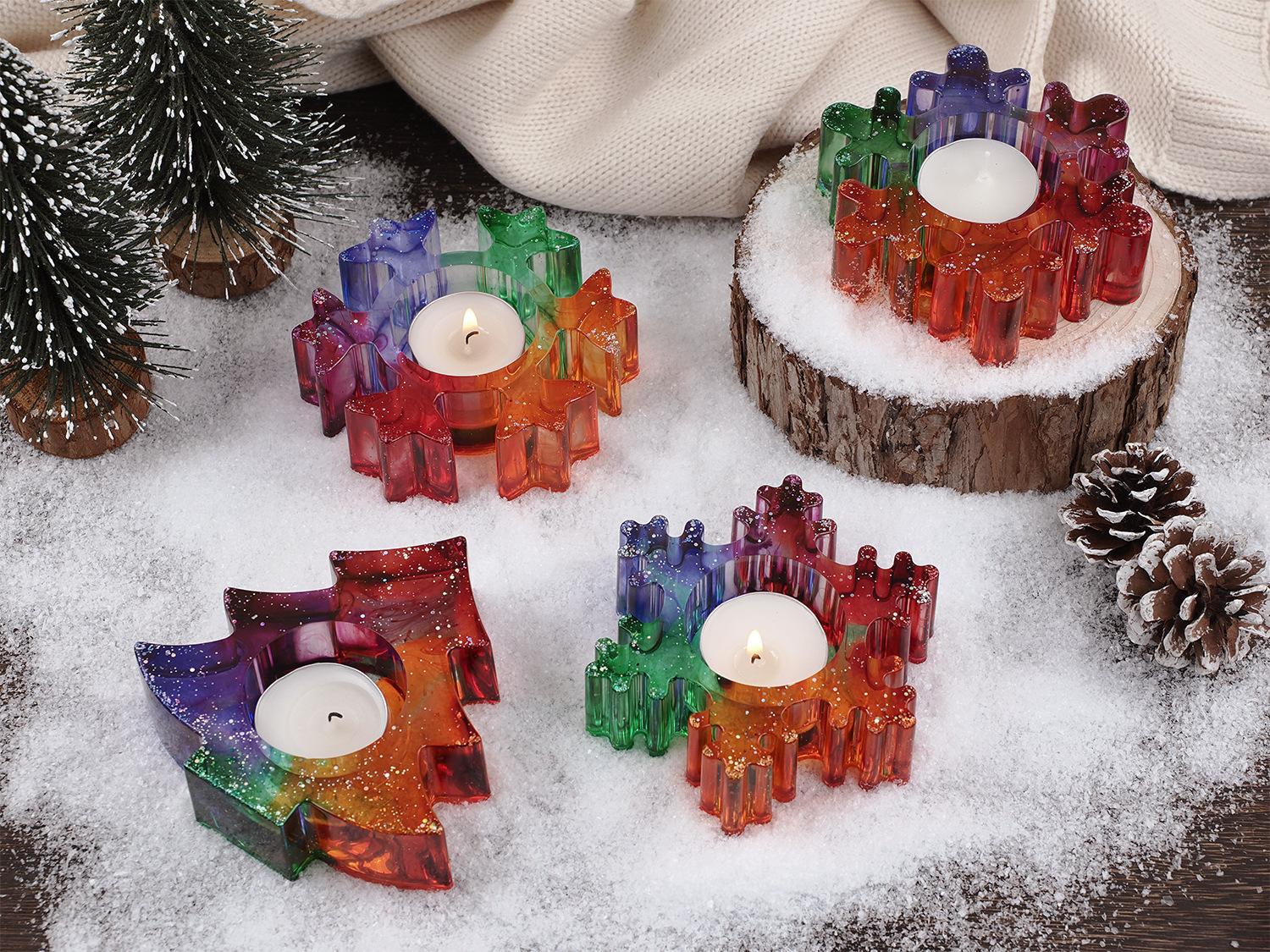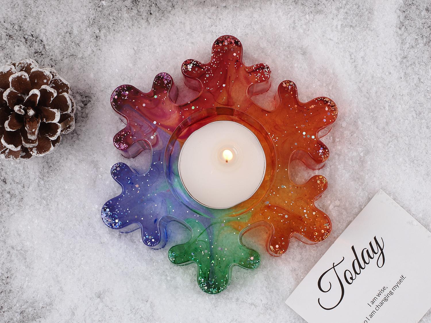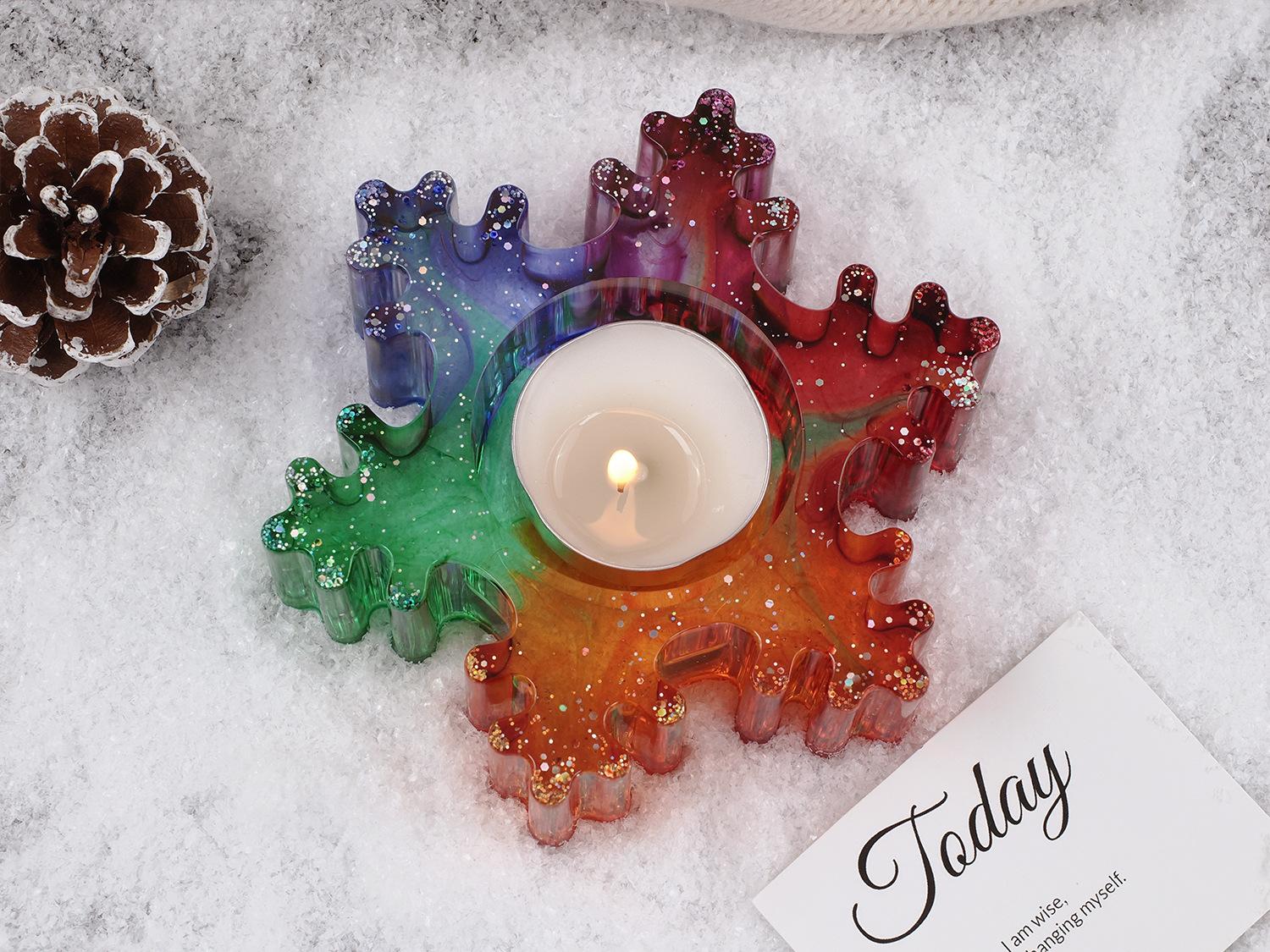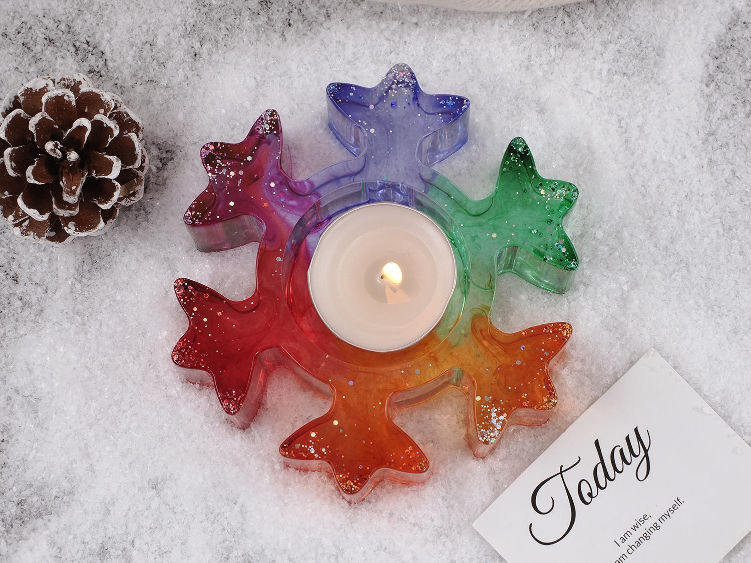 Molde de silicona para espejo de vela con forma de árbol de Navidad con copos de nieve de resina epoxi para hacer tú mismo