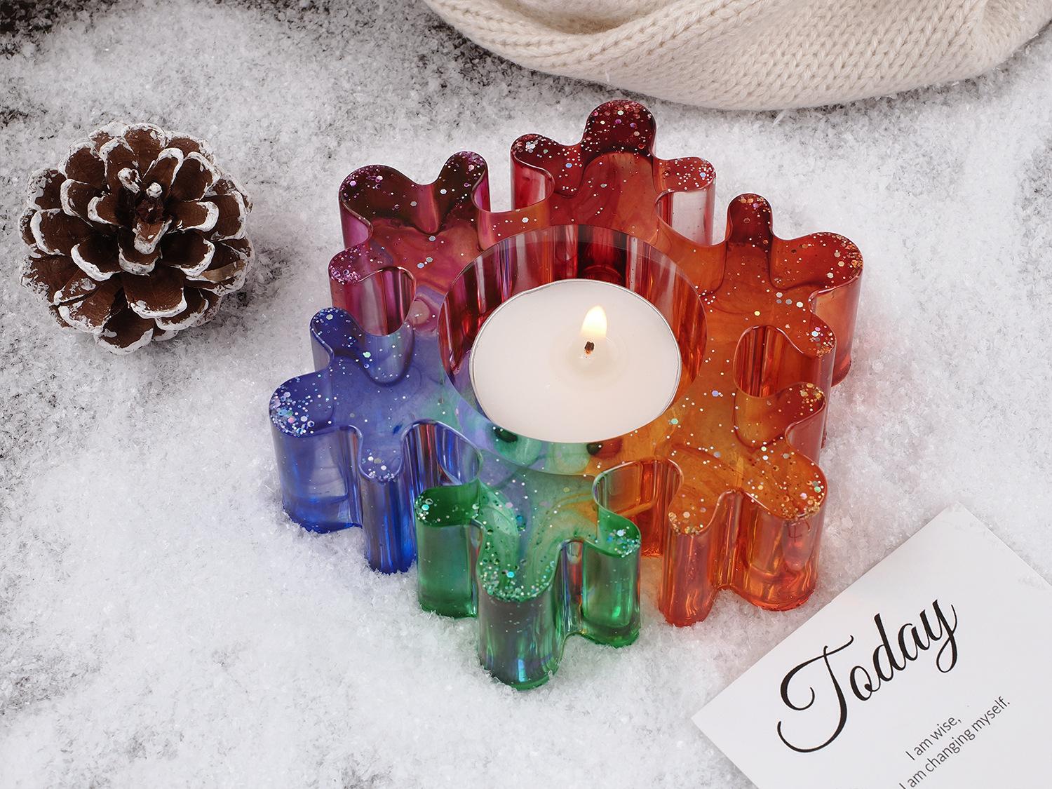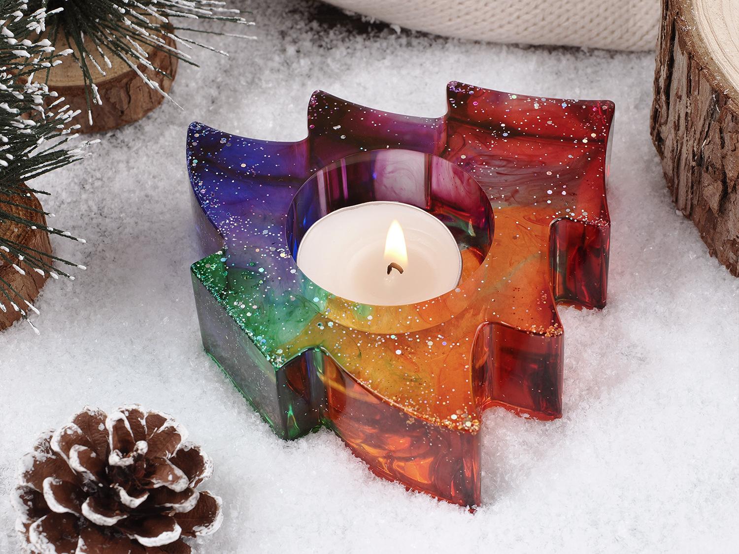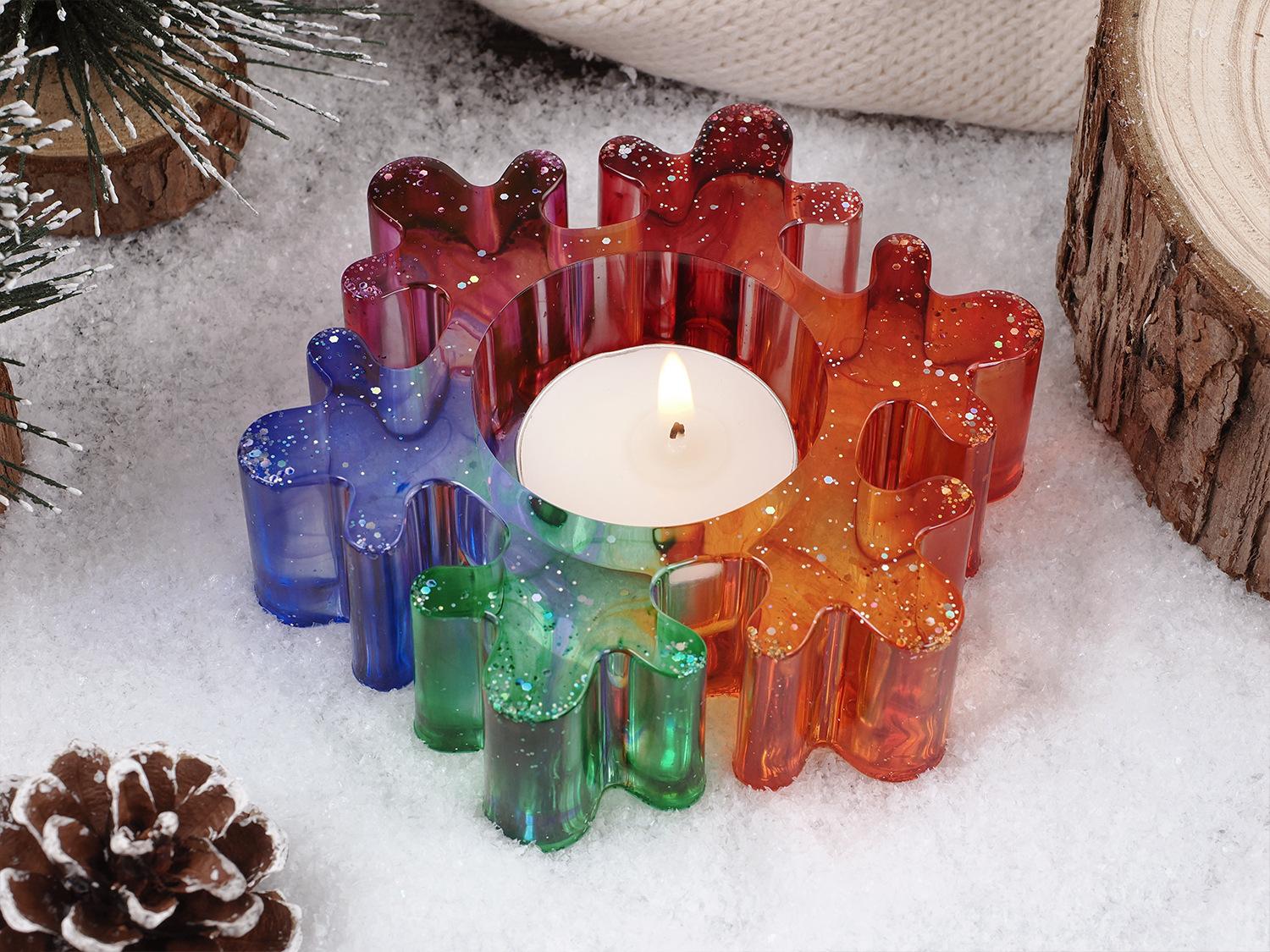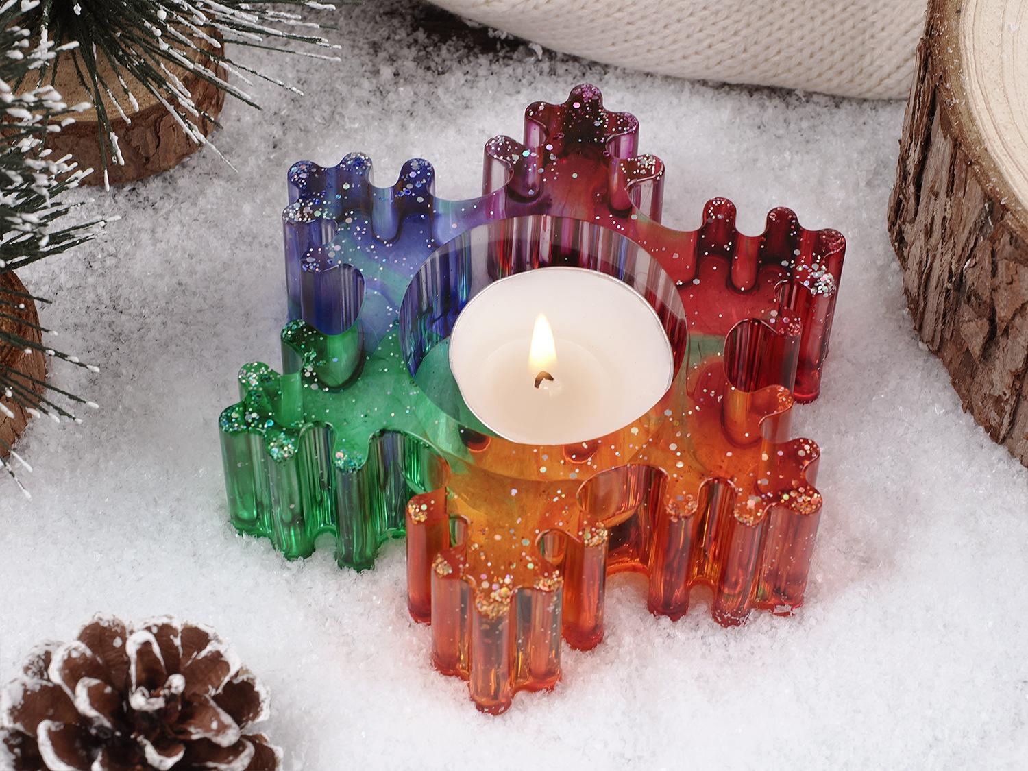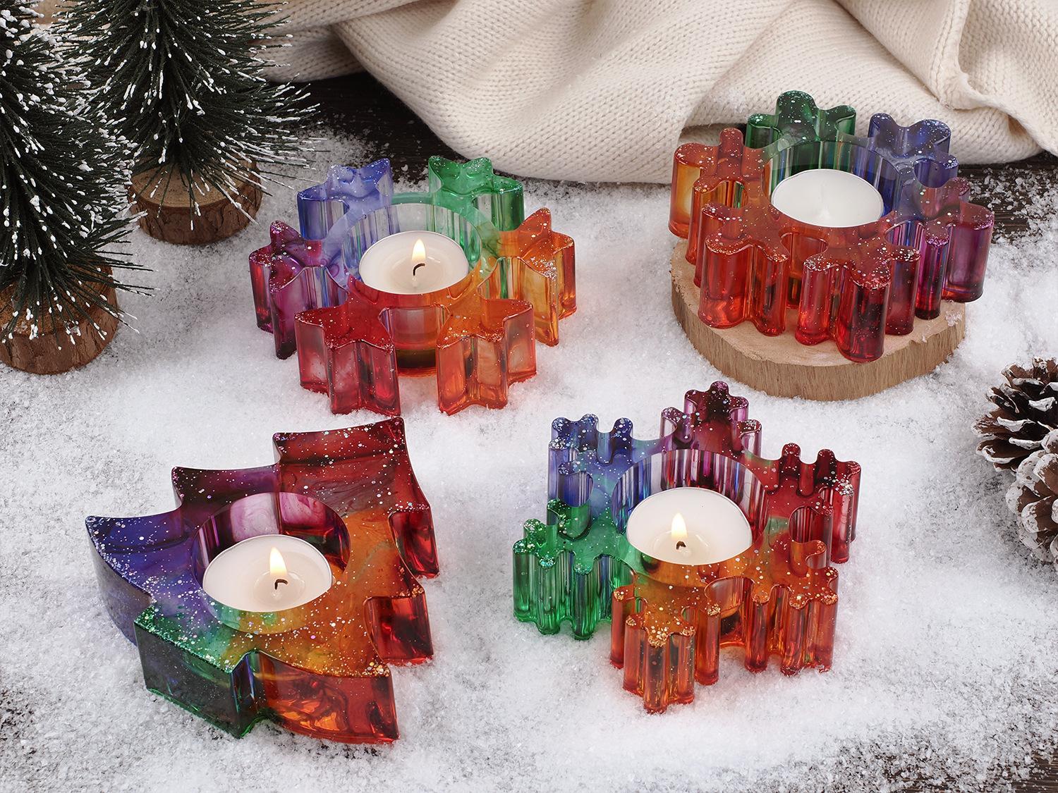 Molde de silicona para espejo de vela con forma de árbol de Navidad con copos de nieve de resina epoxi para hacer tú mismo