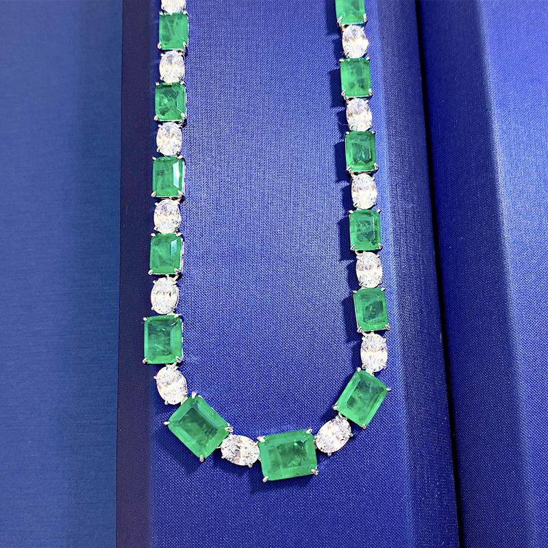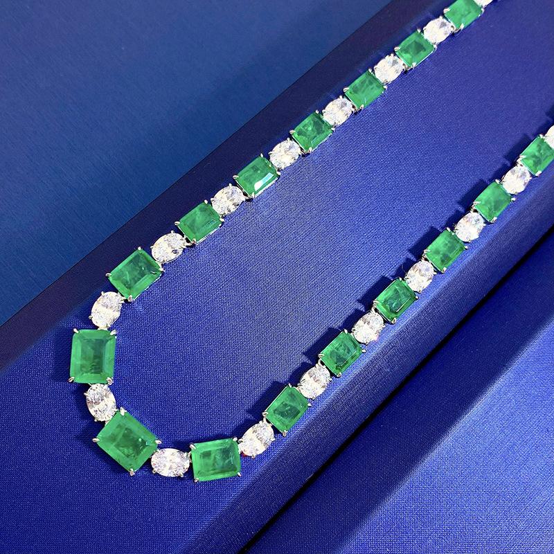 Collar de esmeralda sintética verde clásico de plata S925 para mujer, estilo europeo y americano, 2023