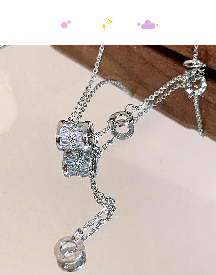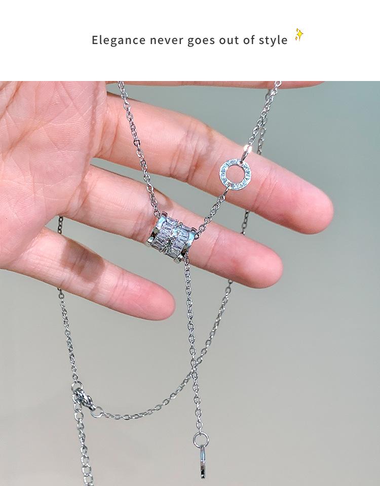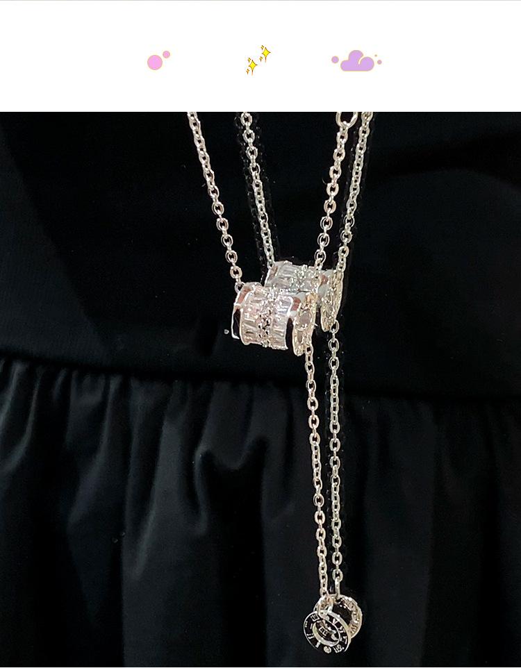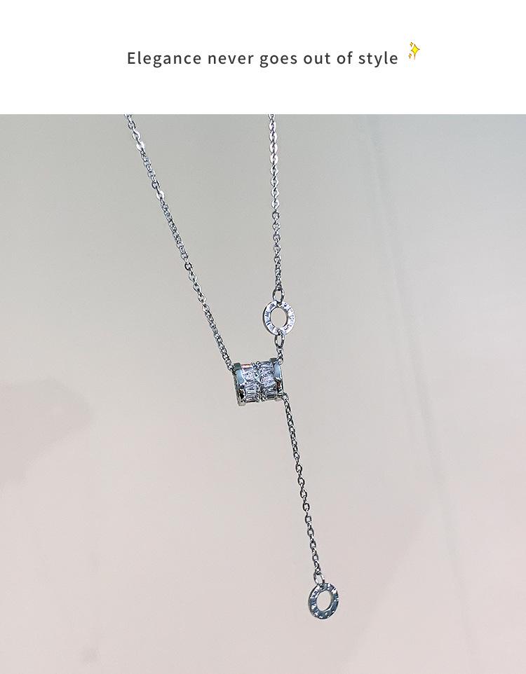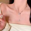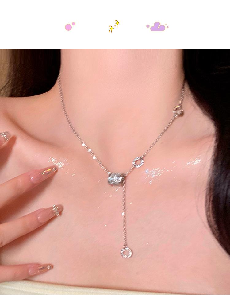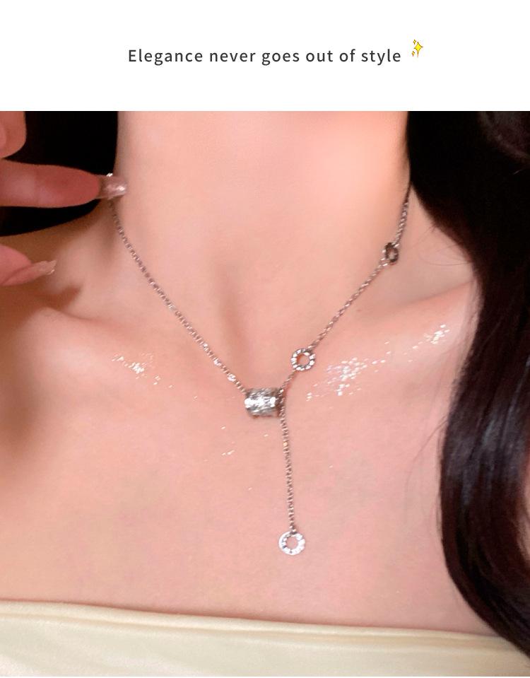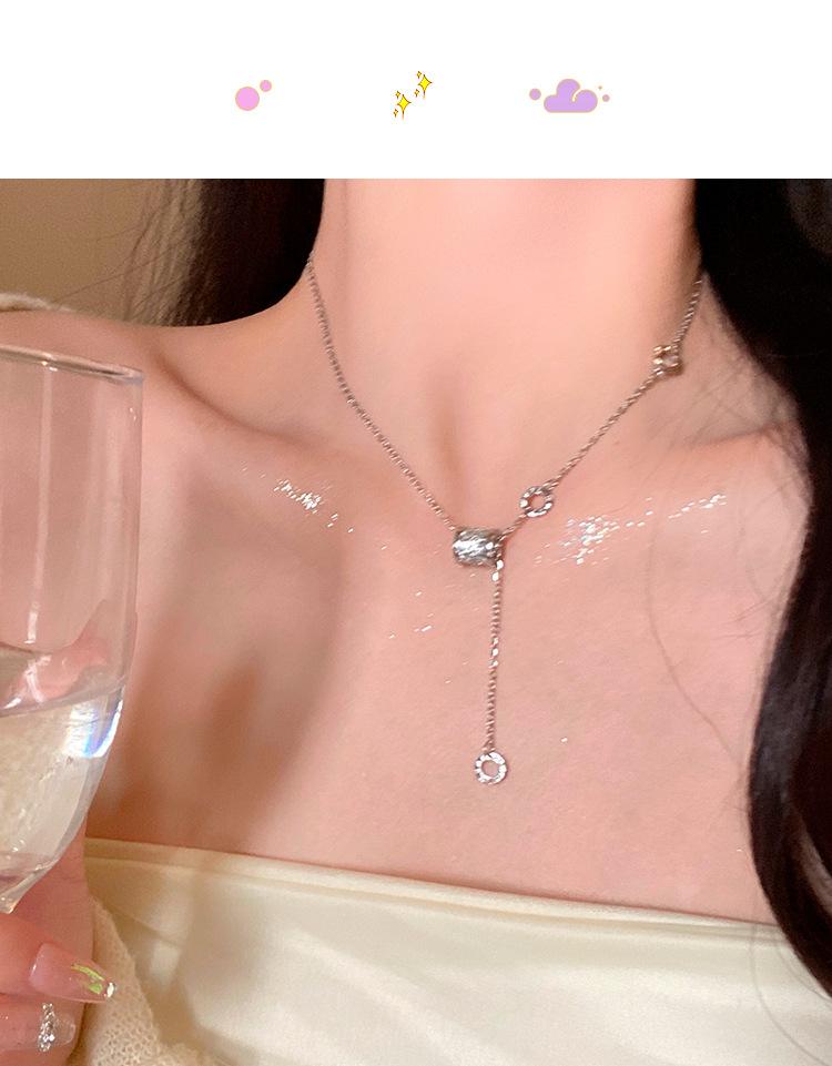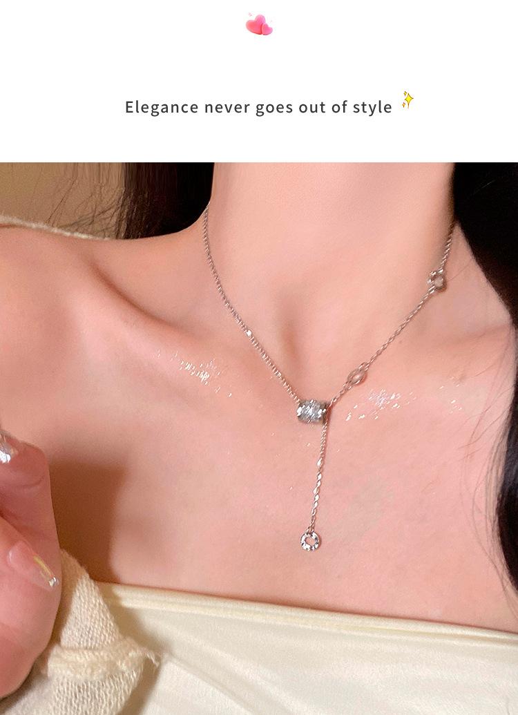 Collar de joyería de acero de titanio plateado Collar de circonita de cintura pequeña para mujer Collar de cadena de suéter de nicho versátil para mujer Collar con colgante de borla
