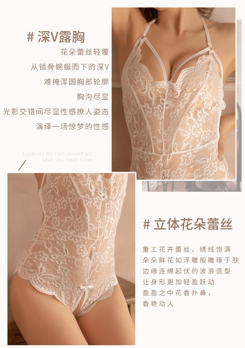 Lencería sexy al por mayor, mono abierto sexy para adultos con encaje, pechos libres, cuello colgante, pecho pequeño, talla grande, traje de mujer