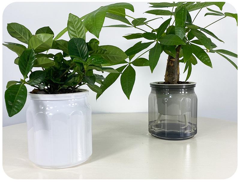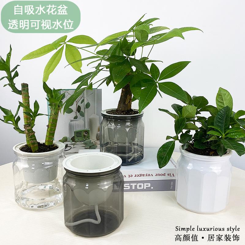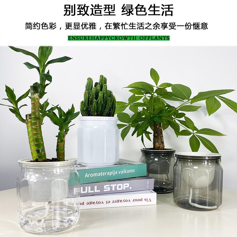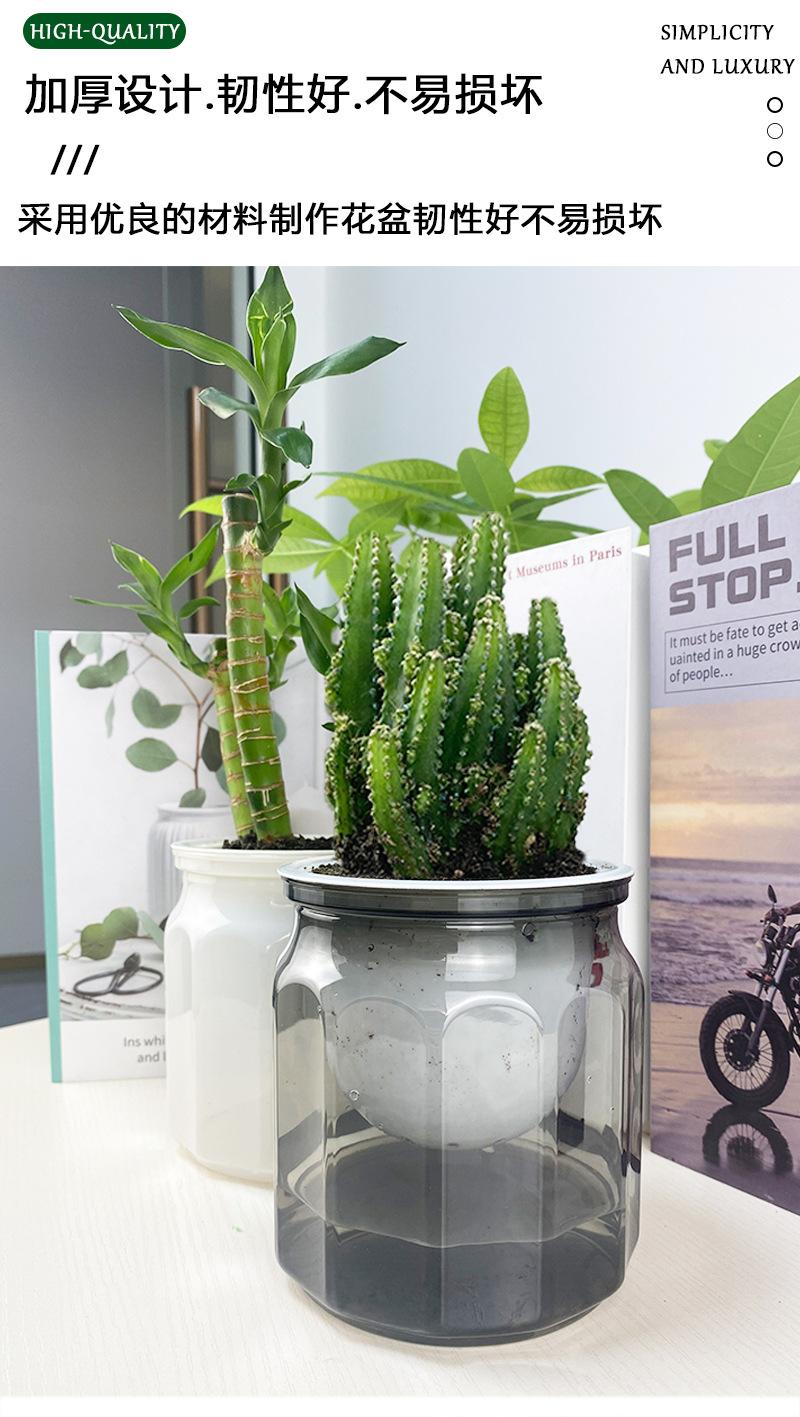 Maceta perezosa transparente de resina plástica autoabsorbente, gruesa, de gran diámetro, para plantas pequeñas, verde, para decoración de interiores.