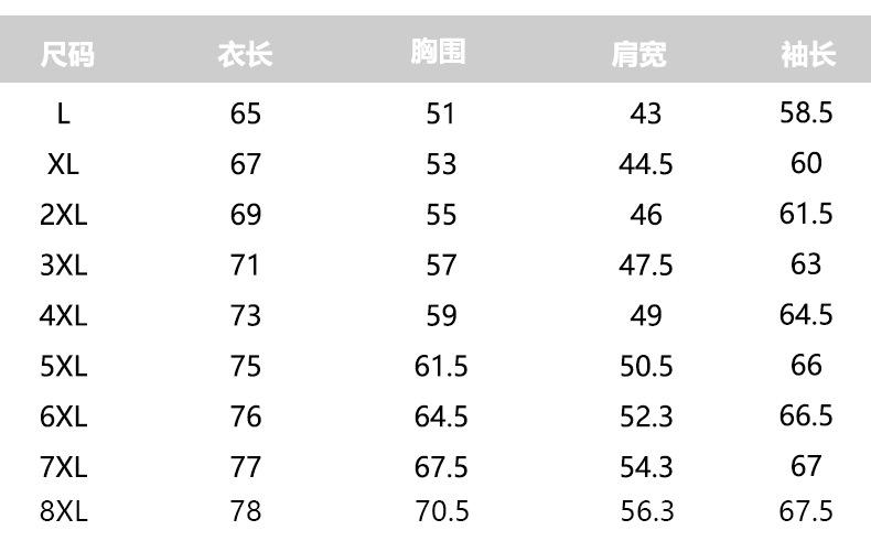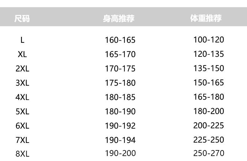L, XL, 2XL, 3XL, 4XL, 5XL, 6XL, 7XL, 8XL