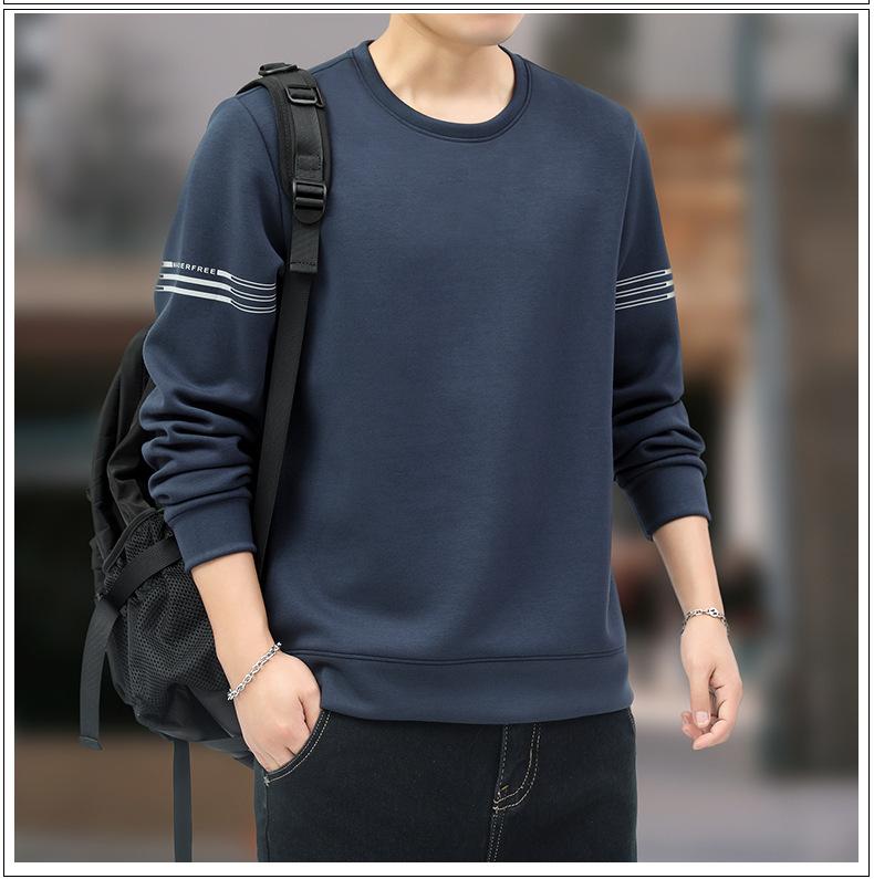 Suéter de otoño para hombre, nueva moda deportiva, ocio, cuello redondo, jersey básico, camisa de talla grande, moda, top que combina con todo.