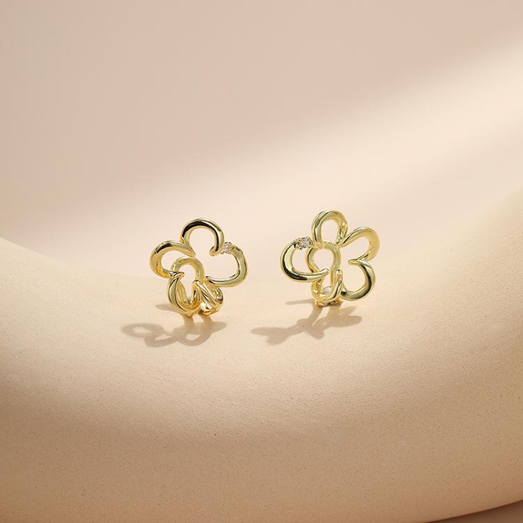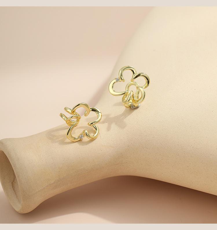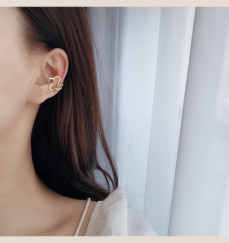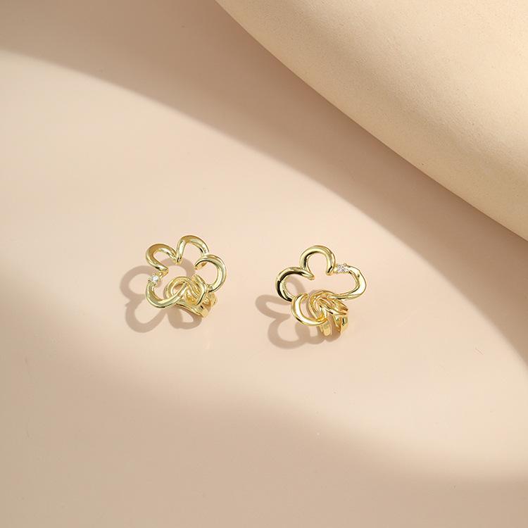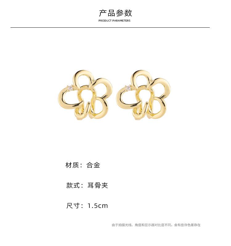 Pendientes de diseño de nicho con temperamento de flor hueca, ligeros, de lujo, de alta gama, versátiles, de moda, con clip para el hueso de la oreja sin orificio para la oreja