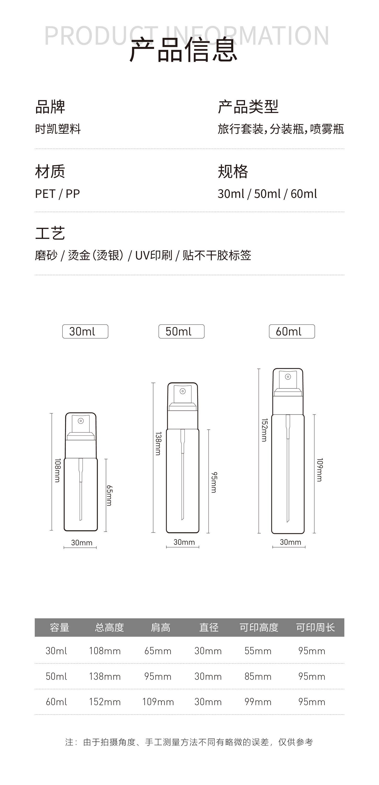 30ml; spray bottle; plastic, 50ml; spray bottle; plastic, 60ml; spray bottle; plastic