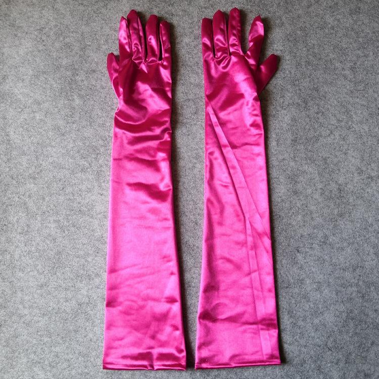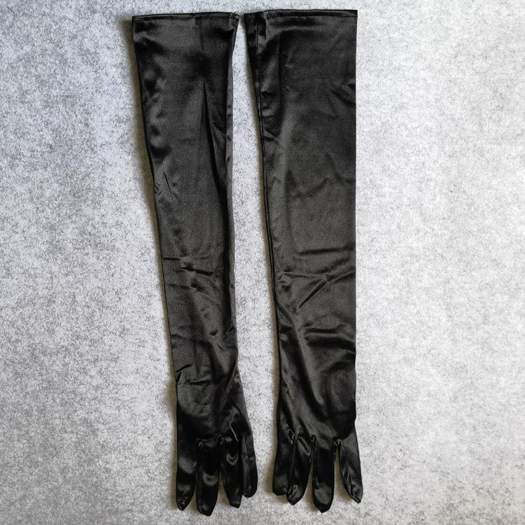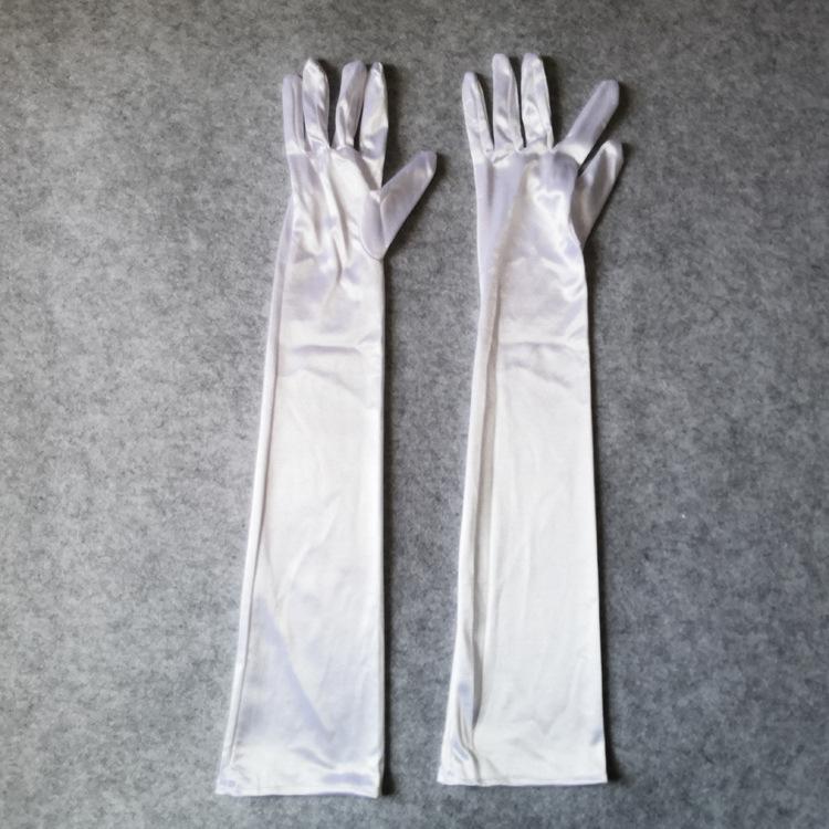 Guantes de boda de 55 cm de largo, etiqueta de boda, color satén, color liso, largos, diarios, cinco dedos, negro, blanco y rojo.