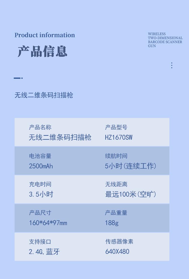 Wireless two-dimensional scanning code gun (HZ1670SW)