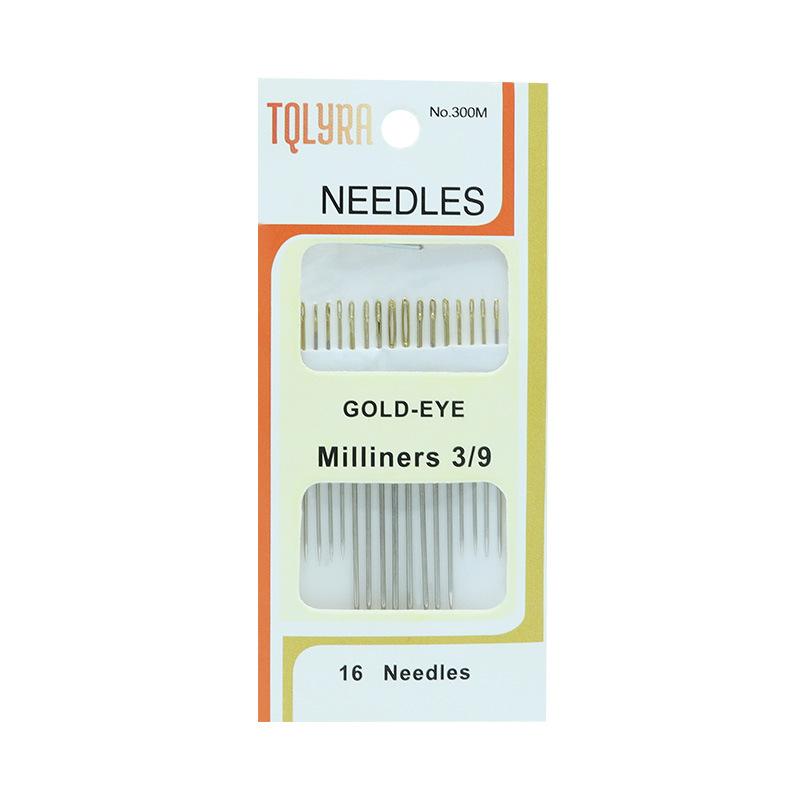 Aguja de coser 16 cola dorada 3/9 aguja de coser a mano multiusos aguja de coser a mano de acero al carbono fino
