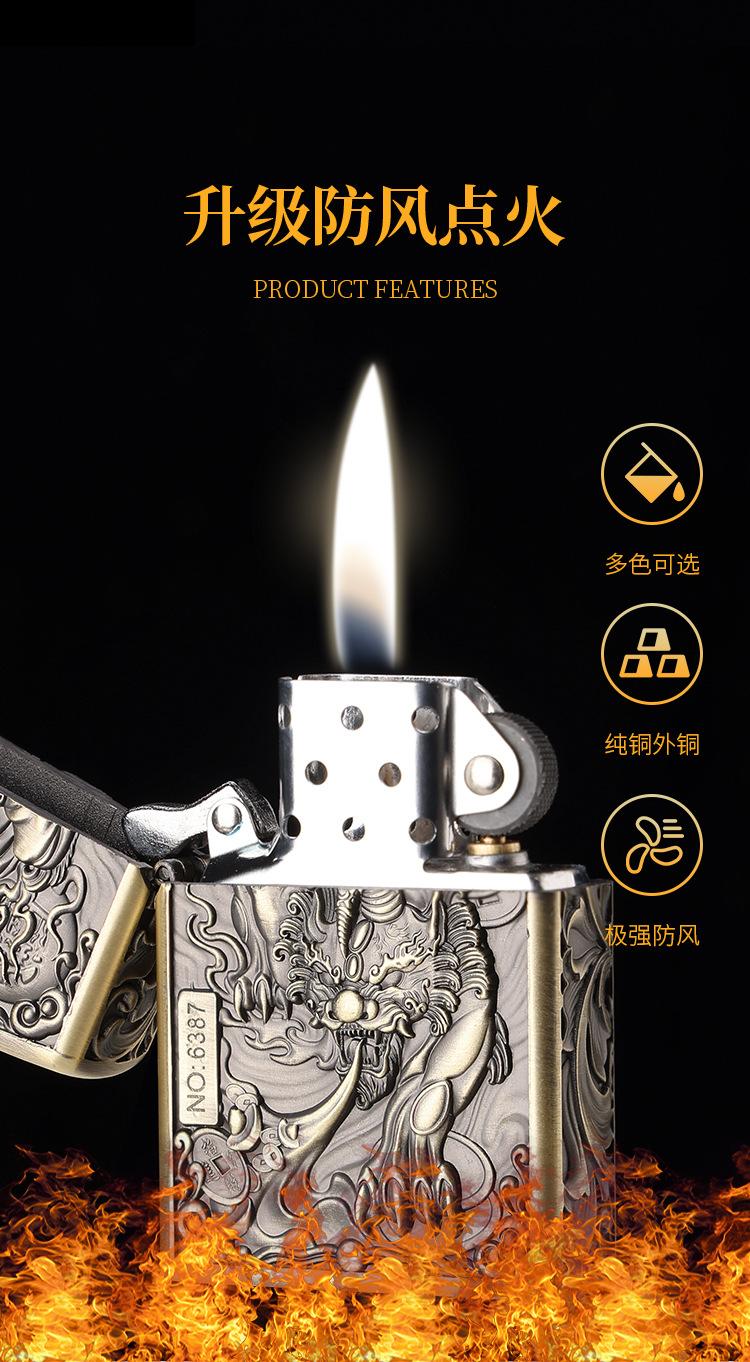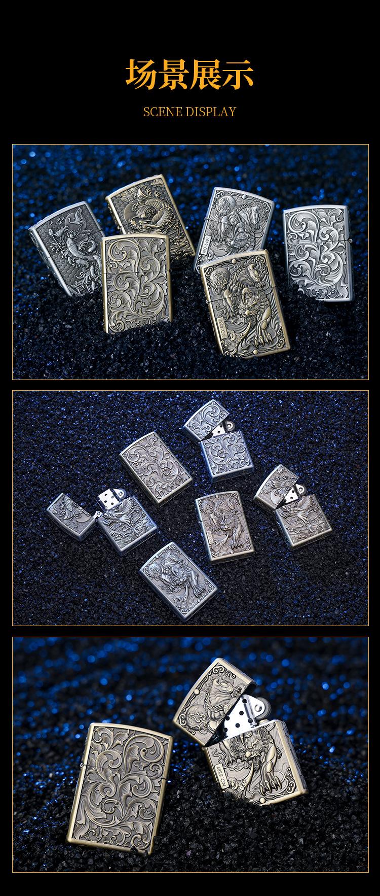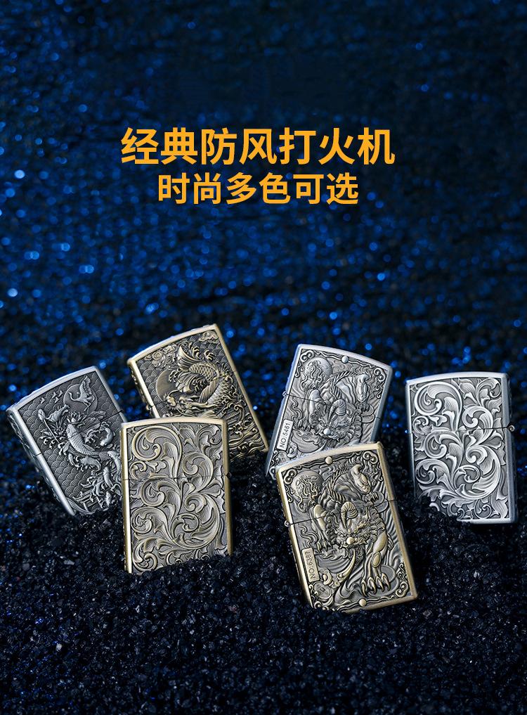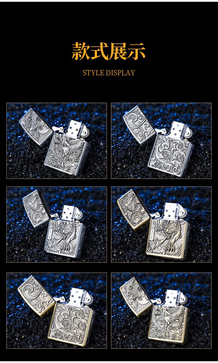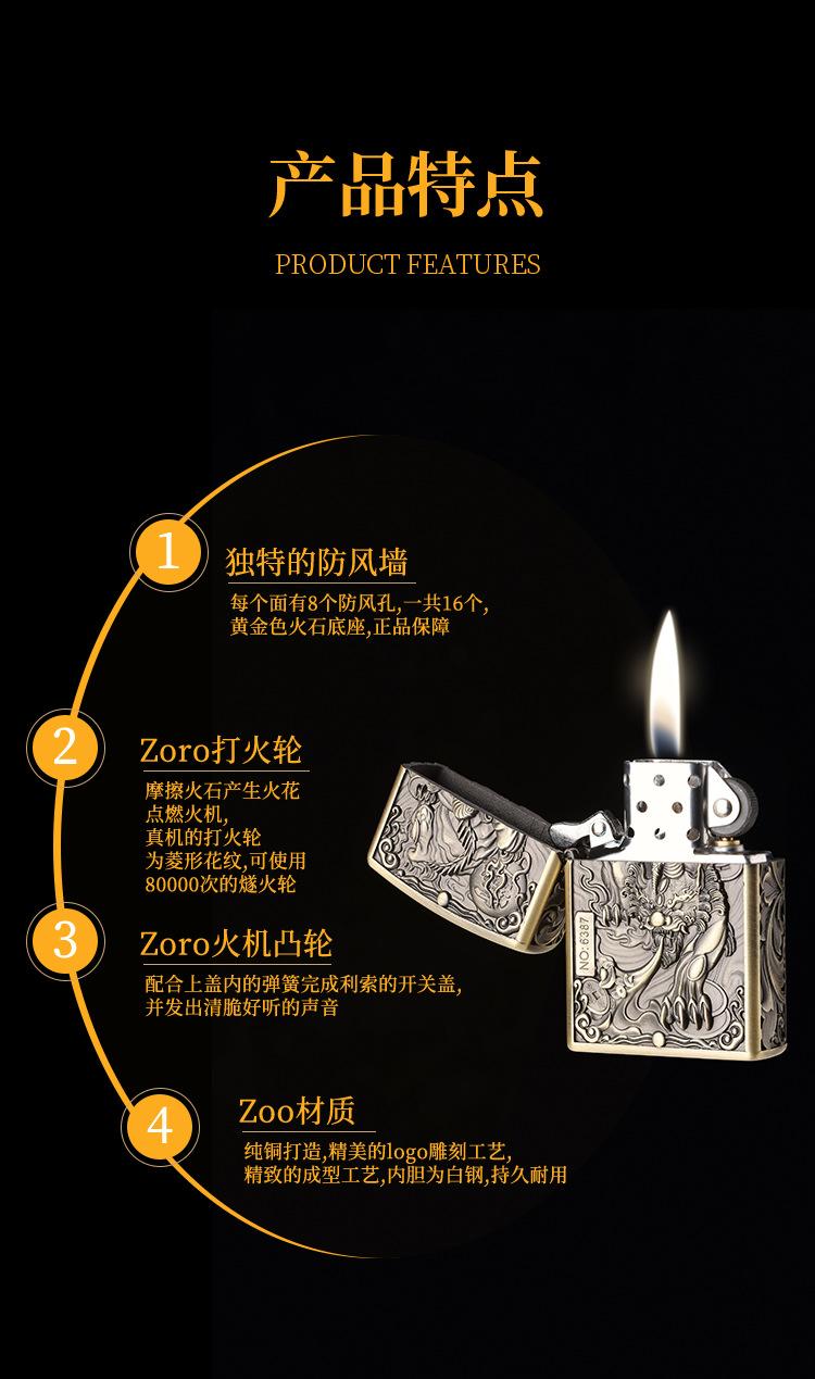Compra Encendedor de queroseno ZORRO ZORRO con relieve vintage antiguo con rueda de molienda, resistente al viento, encendedor integrado, regalo serie ZK al por mayor en Joom.pro
