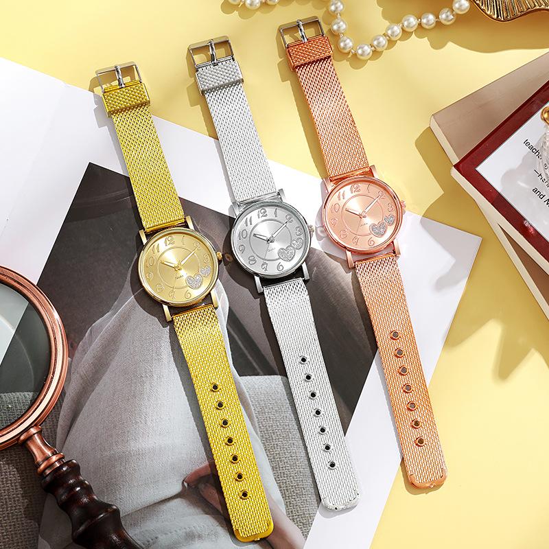 Douyin Celebridad de Internet Popular Moda Casual Malla Falsa con Reloj en Forma de Corazón Reloj de Mujer Digital Estudiante Casual Cuarzo