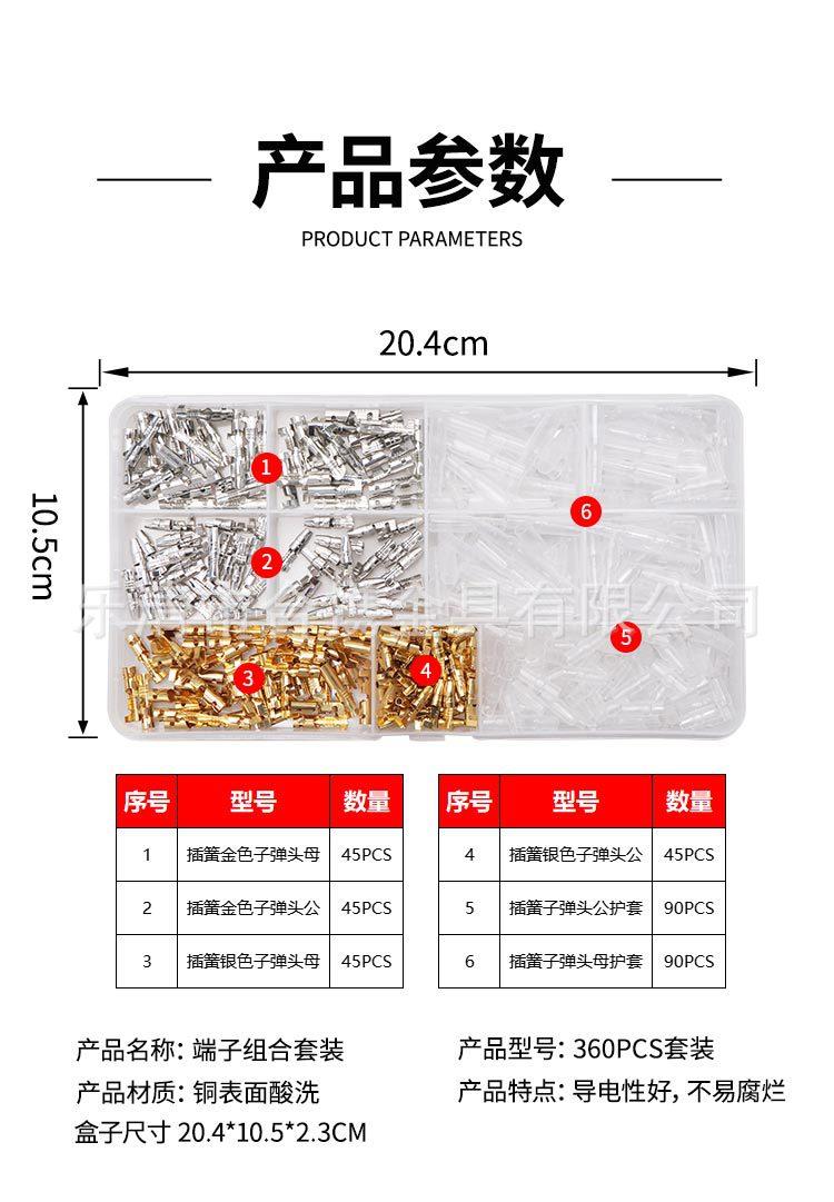 PD: Las especificaciones de este producto son: caja de 360 piezas 3.9 bala oro y plata macho y hembra + funda 45 pares 11 rejilla embalaje de película termorretráctil
