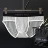 Ropa interior deportiva sexy transpirable de cintura baja convexa en U de una sola capa de seda de hielo fina transparente para hombre de malla completa