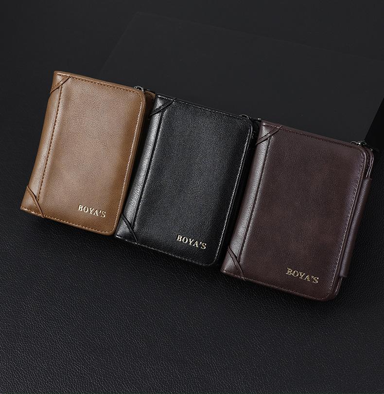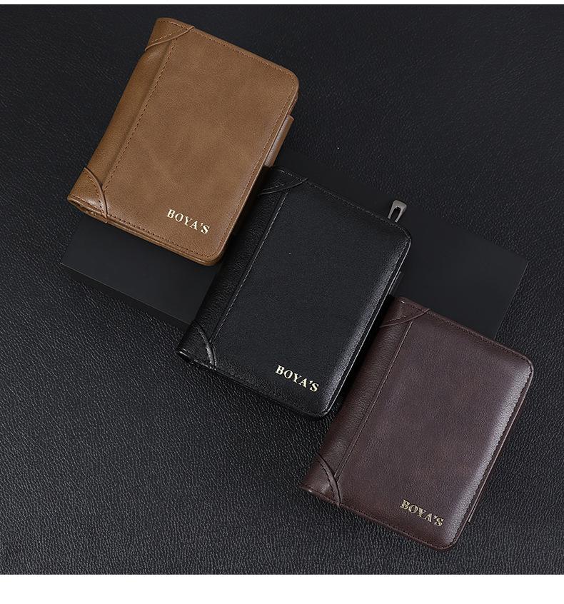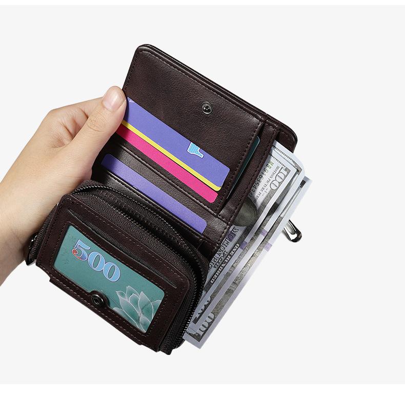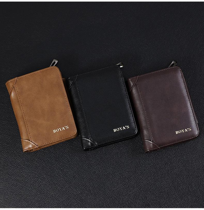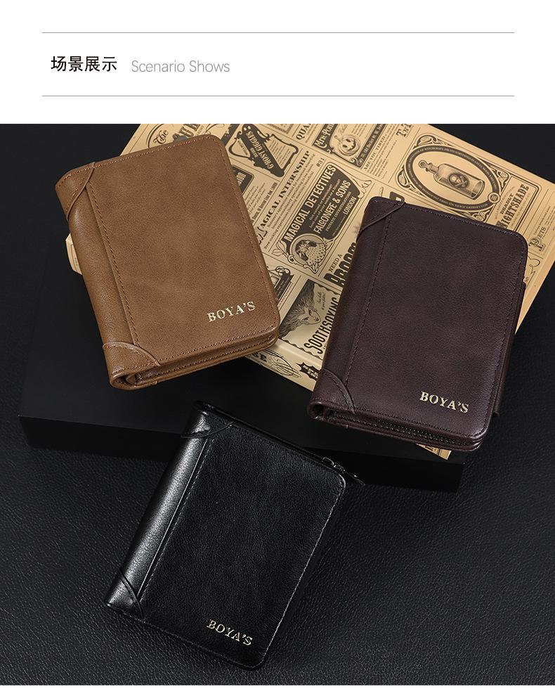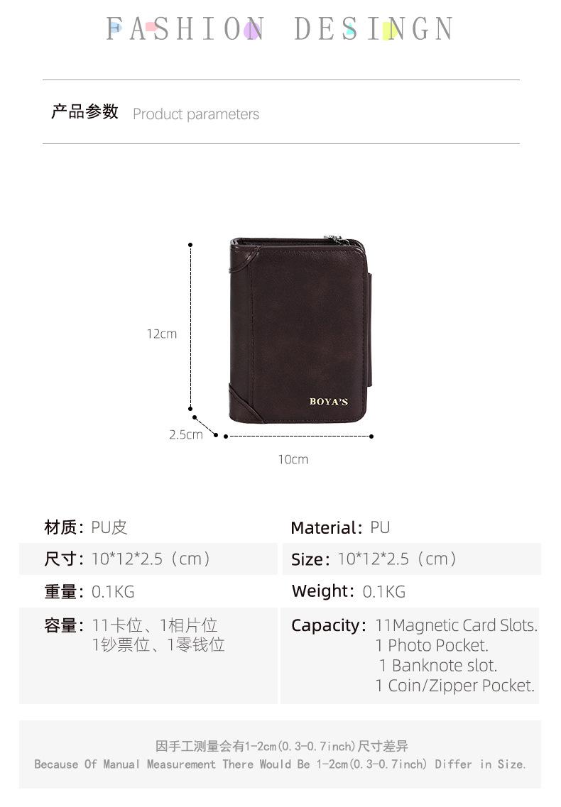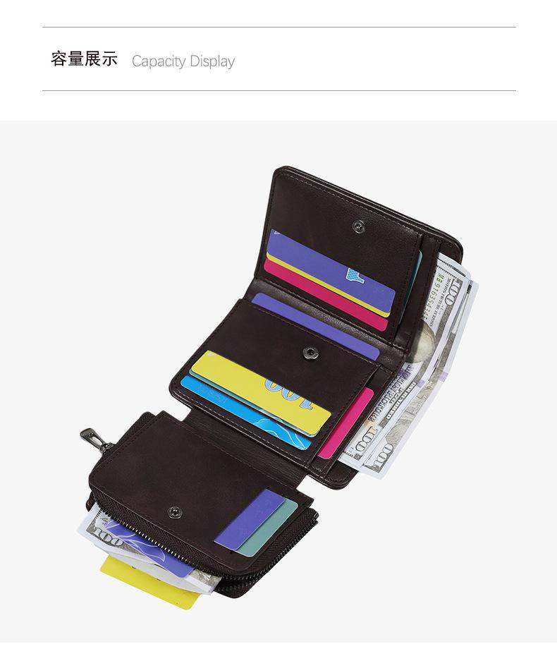 Cartera retro transfronteriza para hombre, cartera corta de negocios de PU, tarjetero para hombre, monedero multifuncional con cremallera