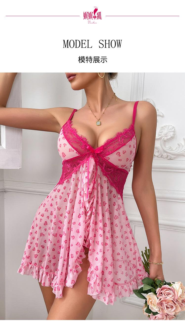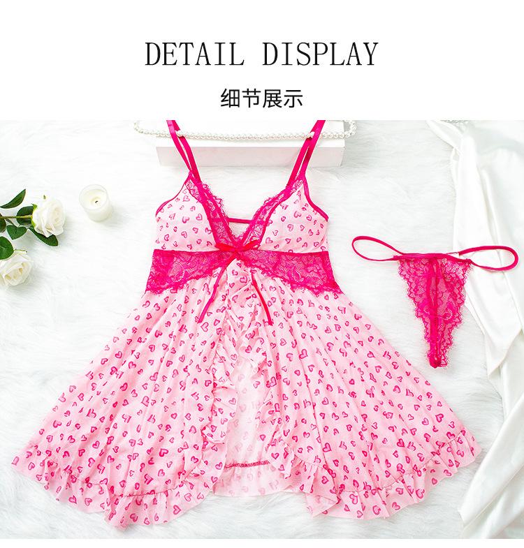 2024 Nueva ropa interior sexy, vestido de tirantes, traje de copa triangular, encaje dividido, pijama con perspectiva sexy