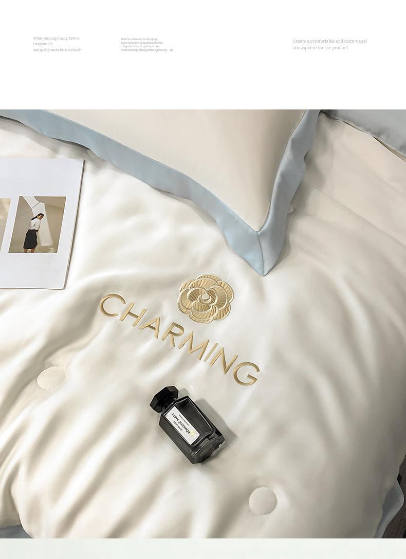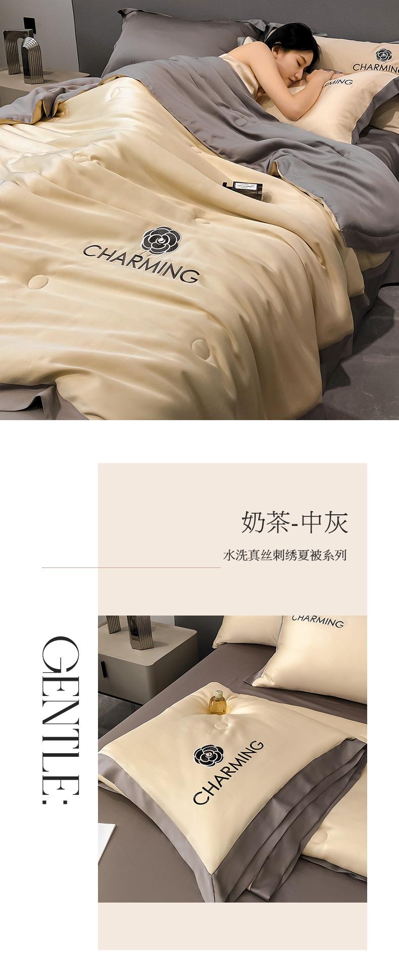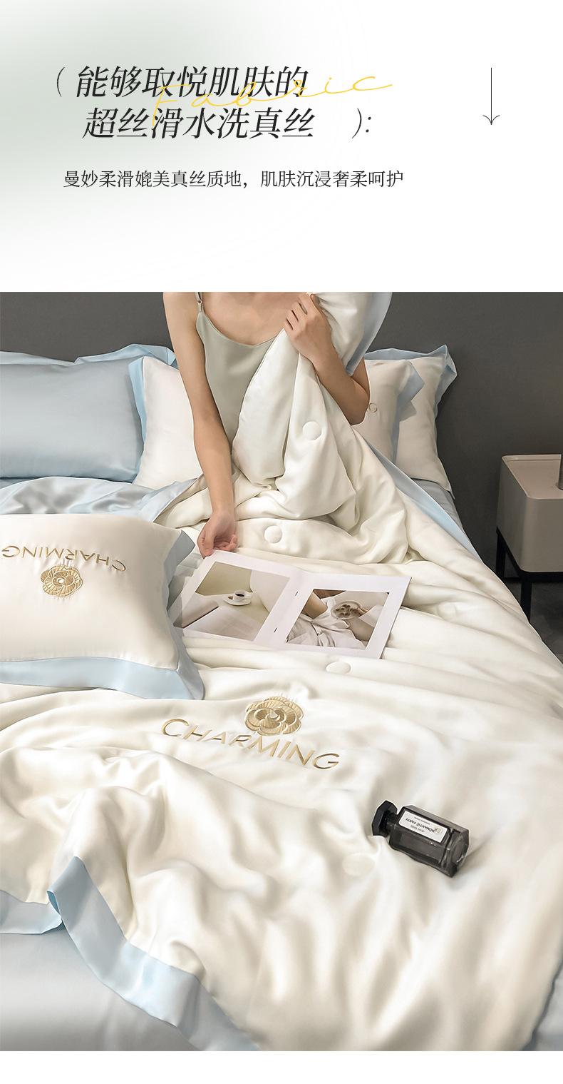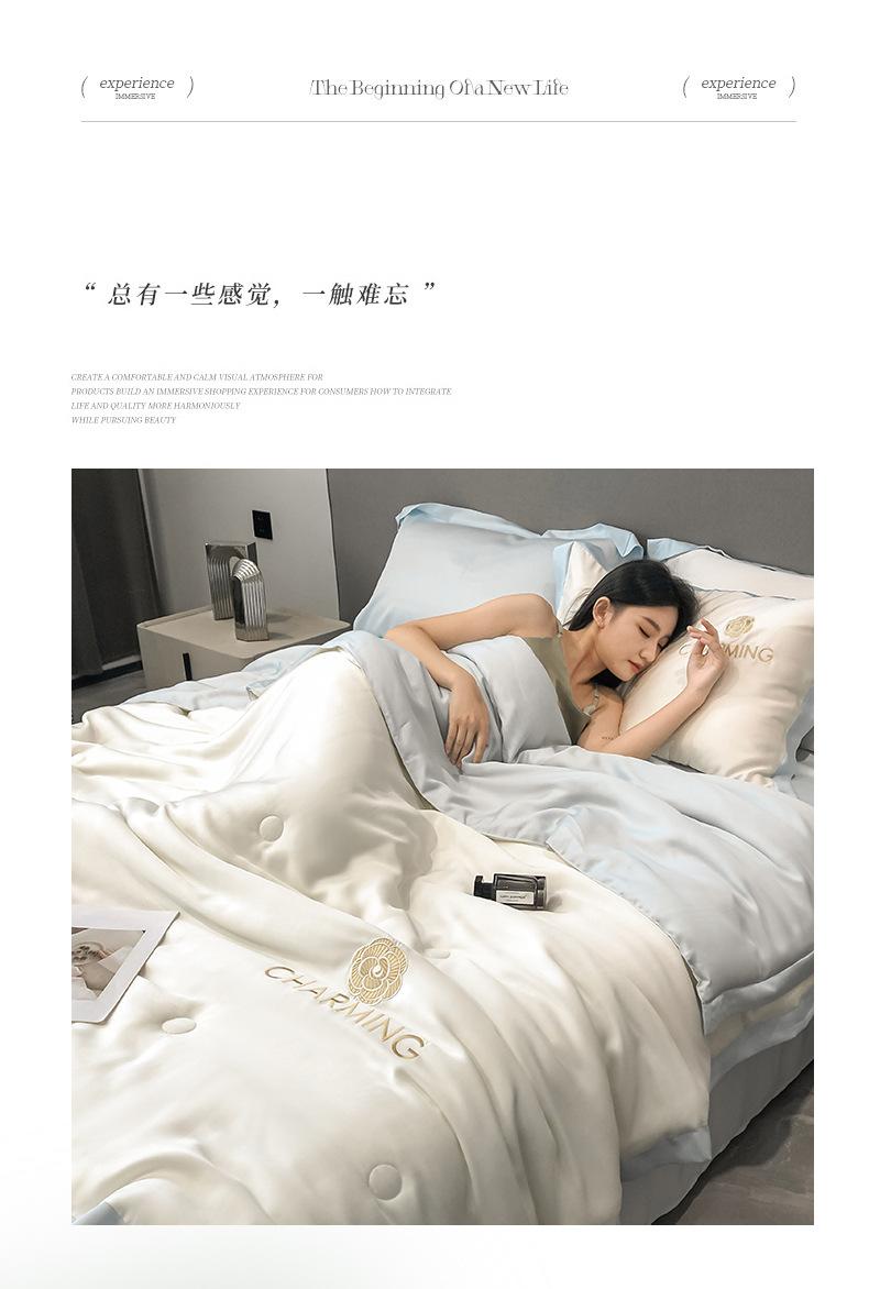 Nuevo Estilo Lavado Seda de Hielo Verano Edredón Fresco Juego de Cuatro Piezas Verano Dormir Desnudo Seda de Hielo Edredón de Verano Individual Doble Aire Acondicionado Seda de Hielo Edredón Delgado