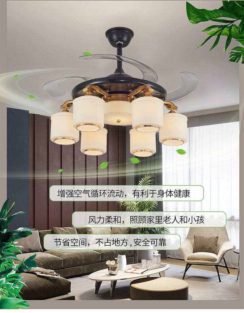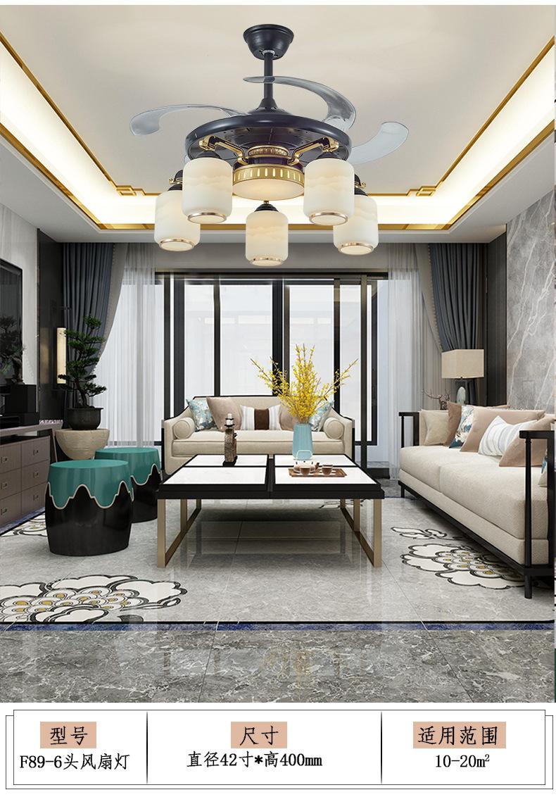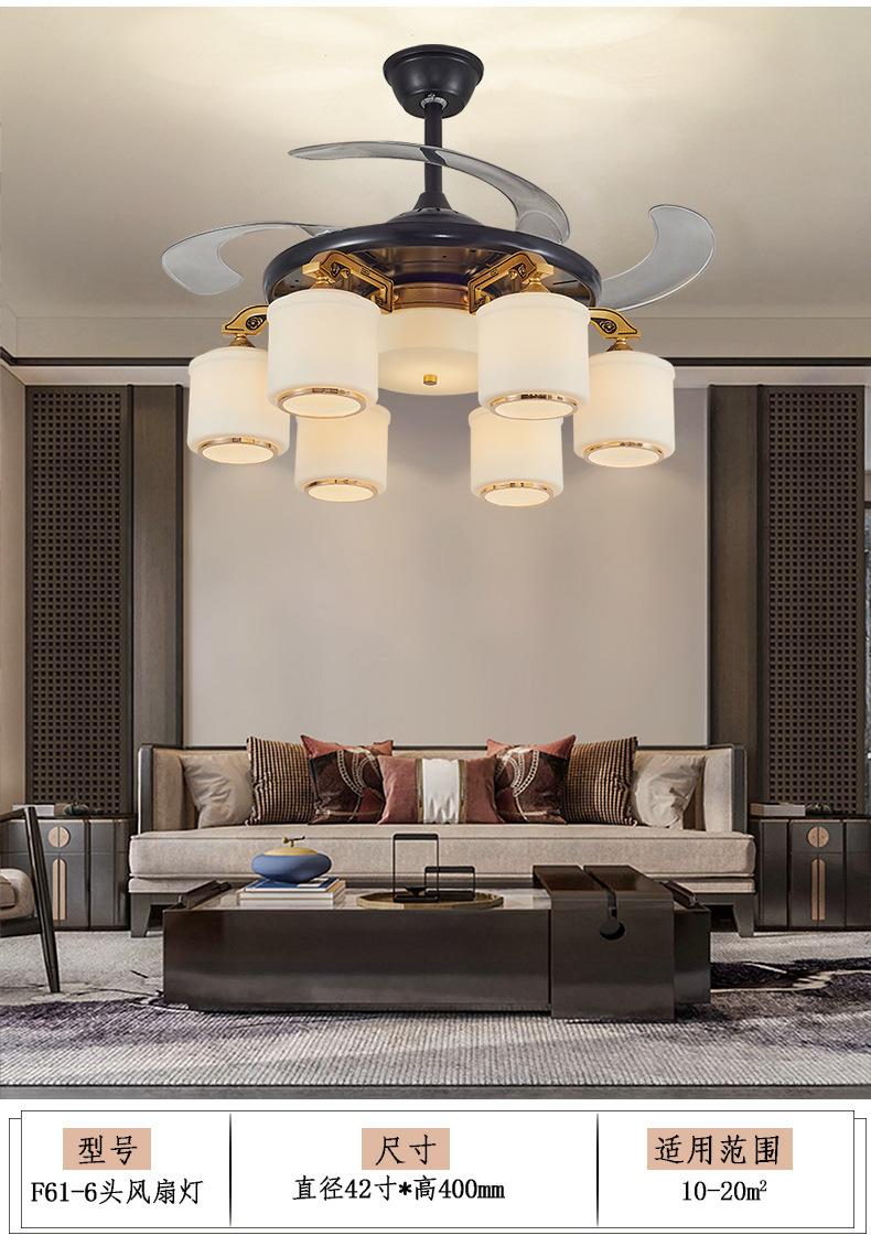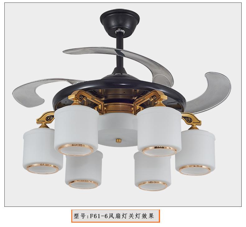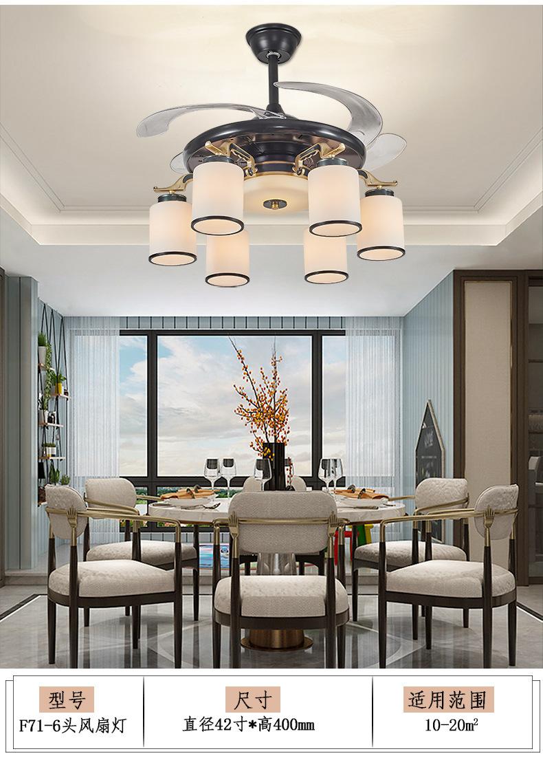 Lámpara de ventilador invisible de 42 pulgadas para comedor, sala de estar, dormitorio, lámpara de ventilador de techo de cobre puro, ventilador de control remoto para el hogar con lámpara de araña