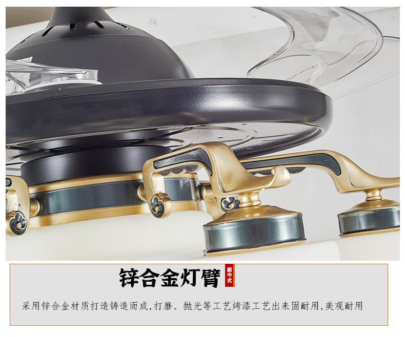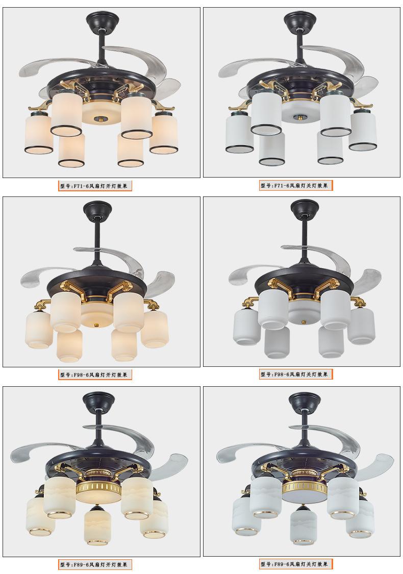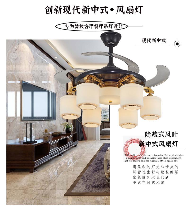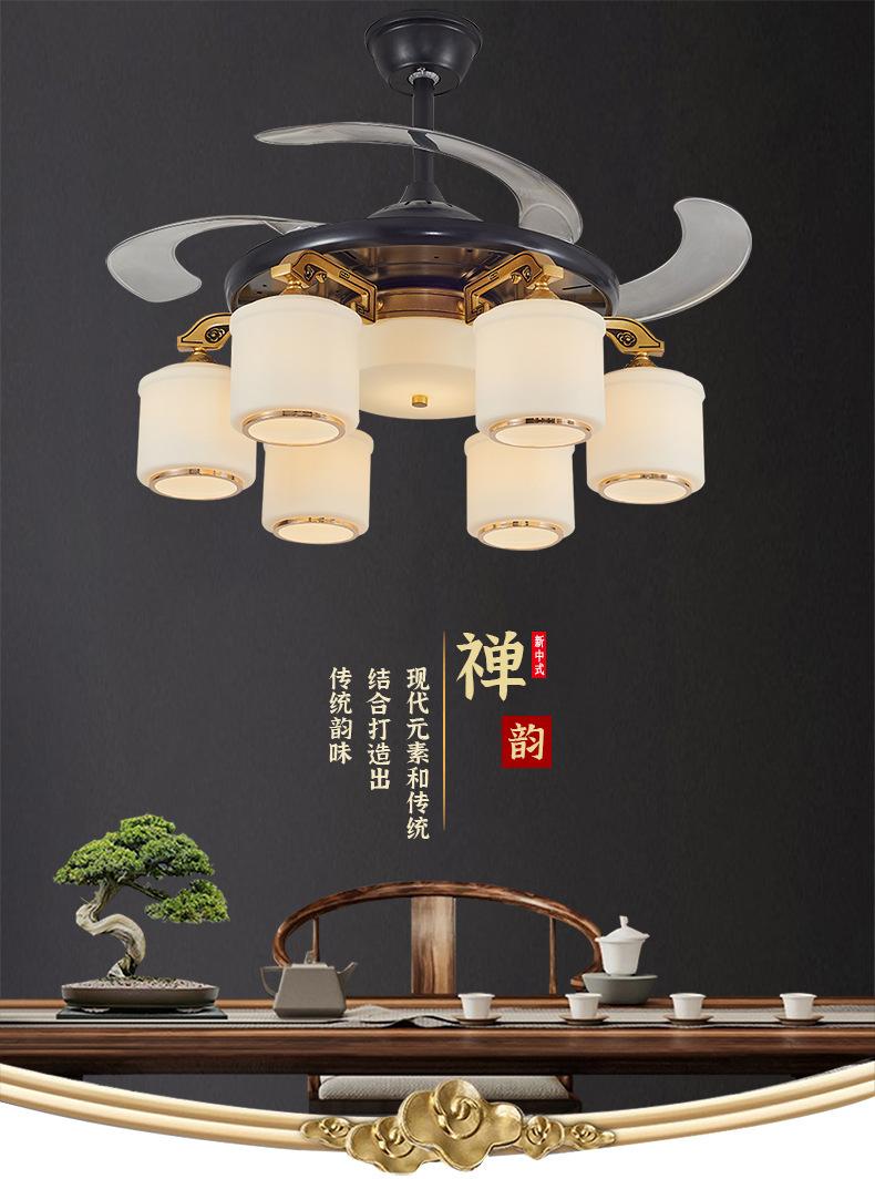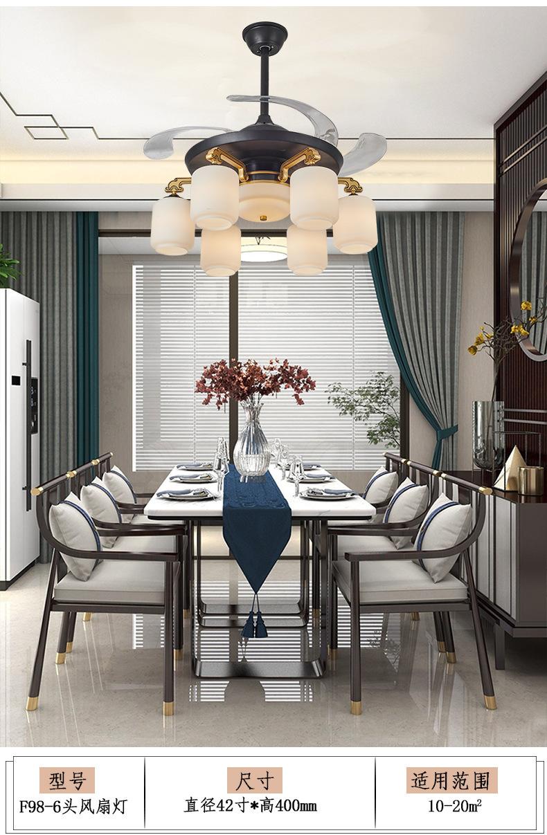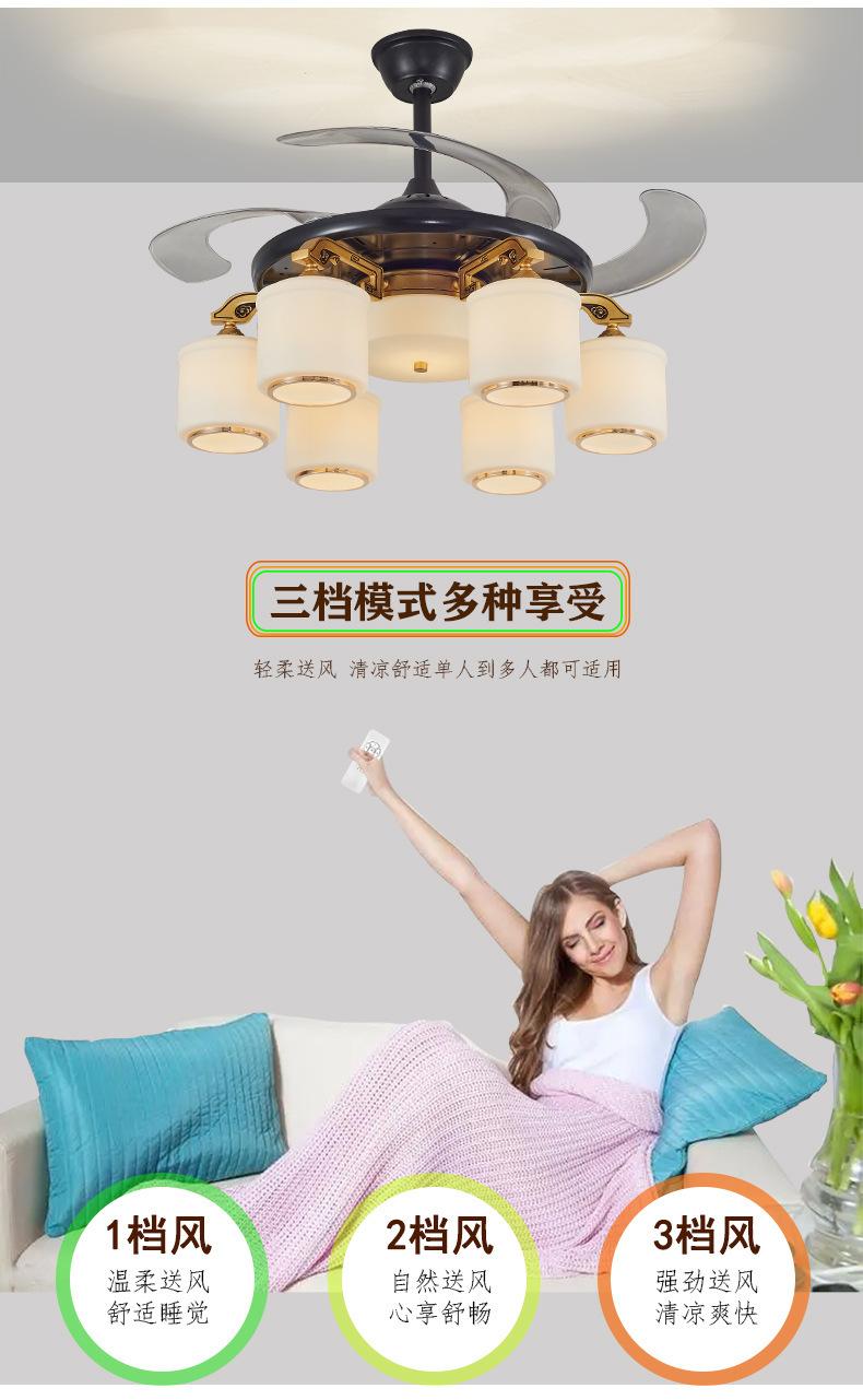 Lámpara de ventilador invisible de 42 pulgadas para comedor, sala de estar, dormitorio, lámpara de ventilador de techo de cobre puro, ventilador de control remoto para el hogar con lámpara de araña