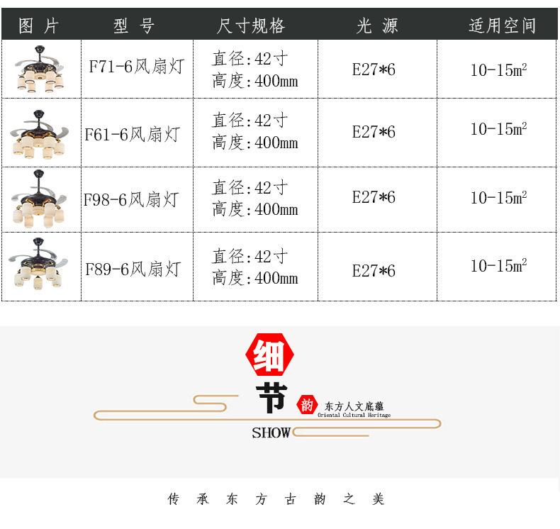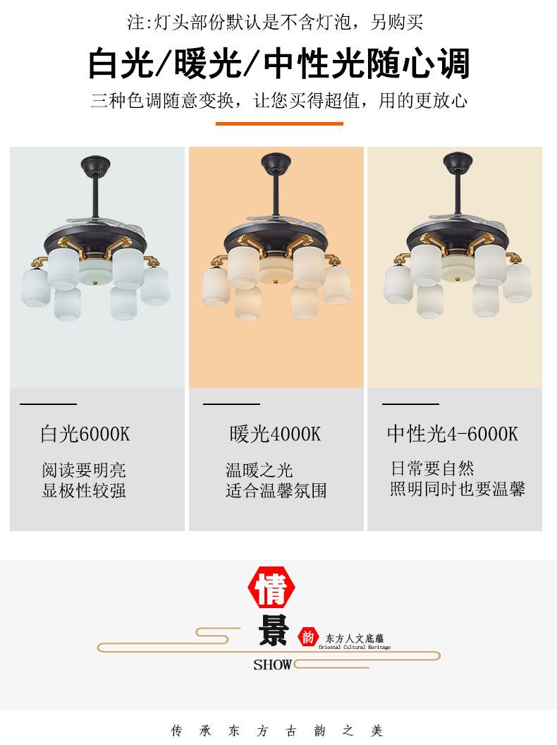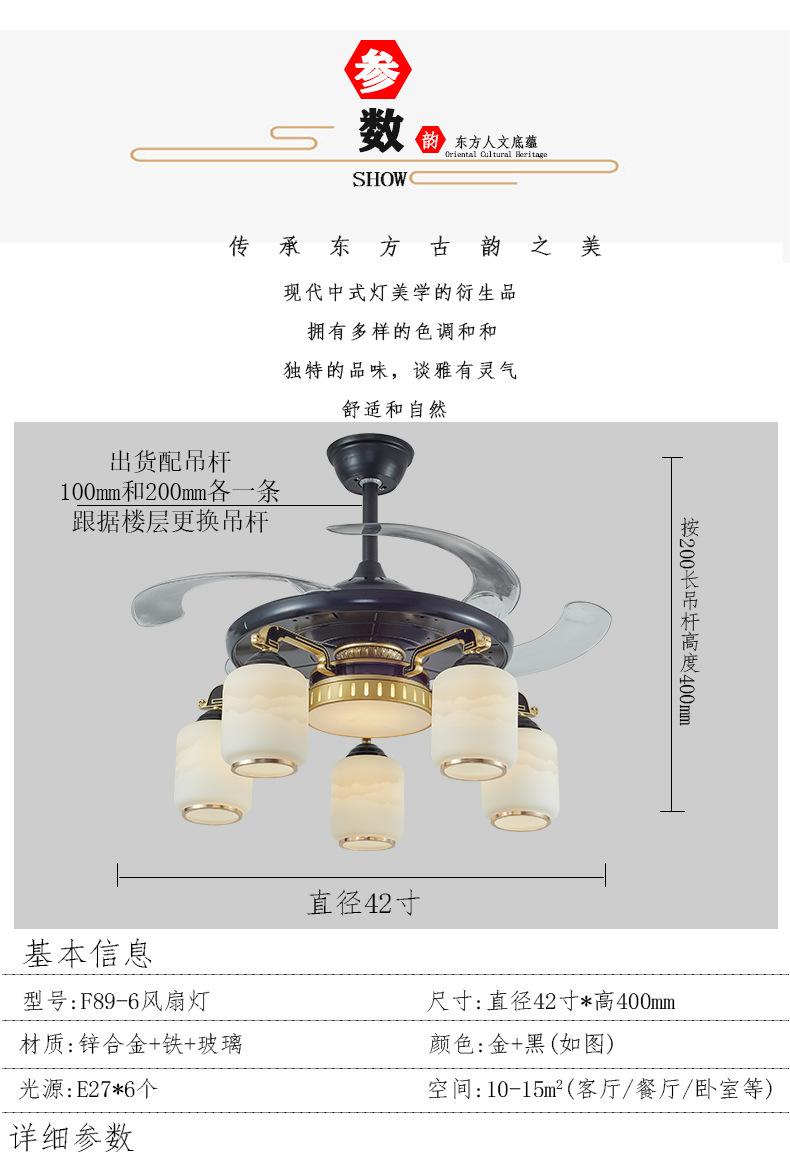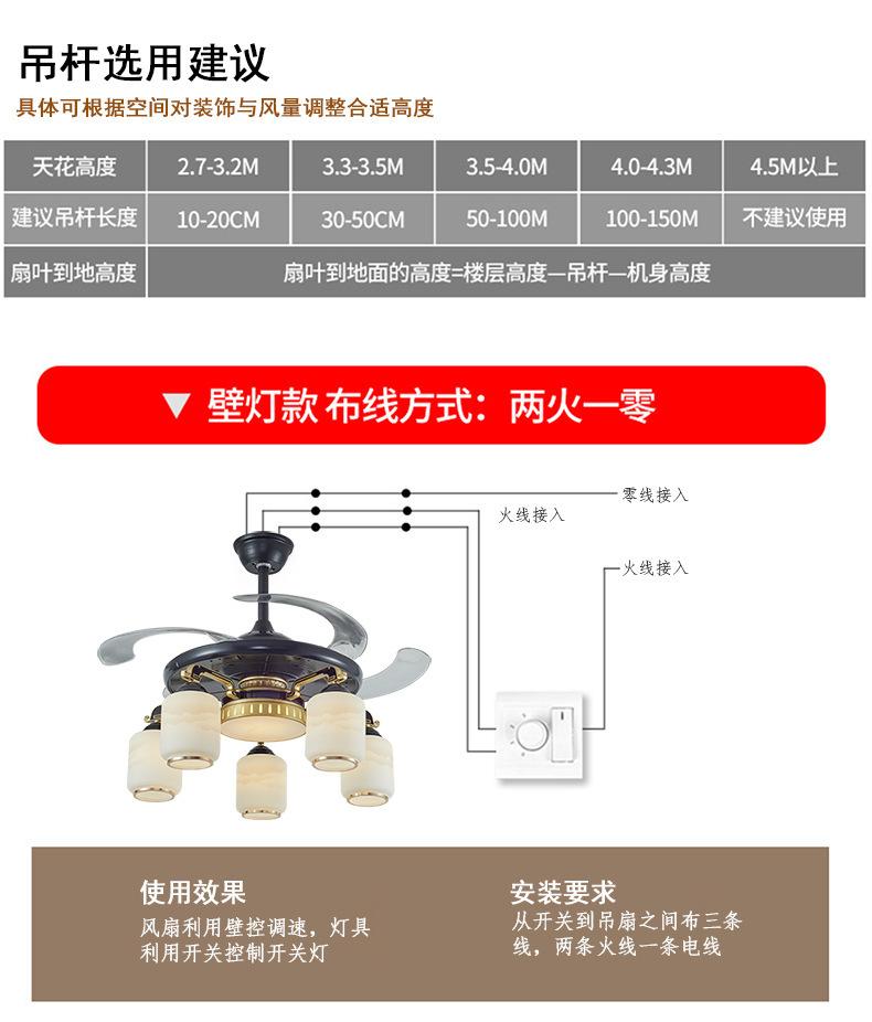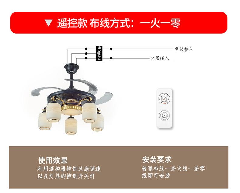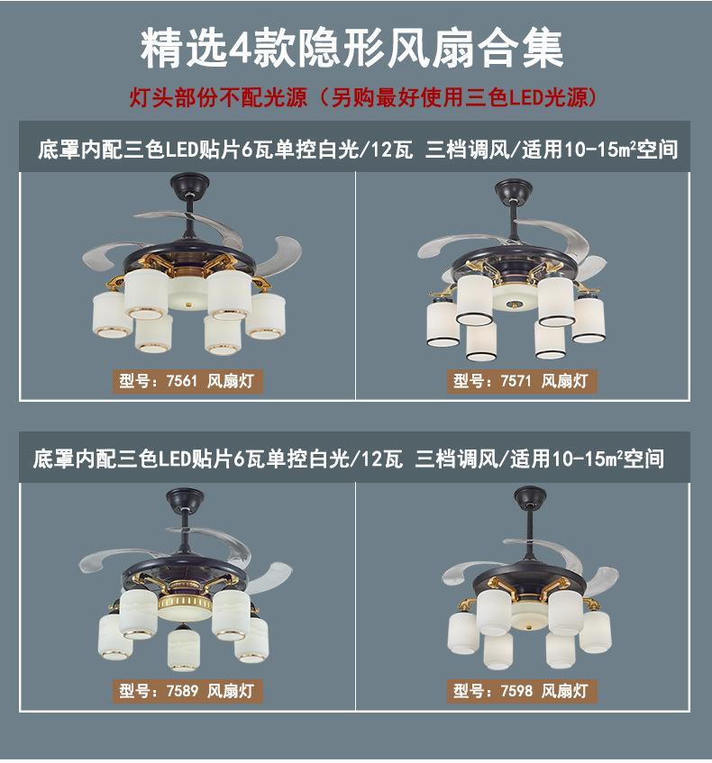 Lámpara de ventilador invisible de 42 pulgadas para comedor, sala de estar, dormitorio, lámpara de ventilador de techo de cobre puro, ventilador de control remoto para el hogar con lámpara de araña