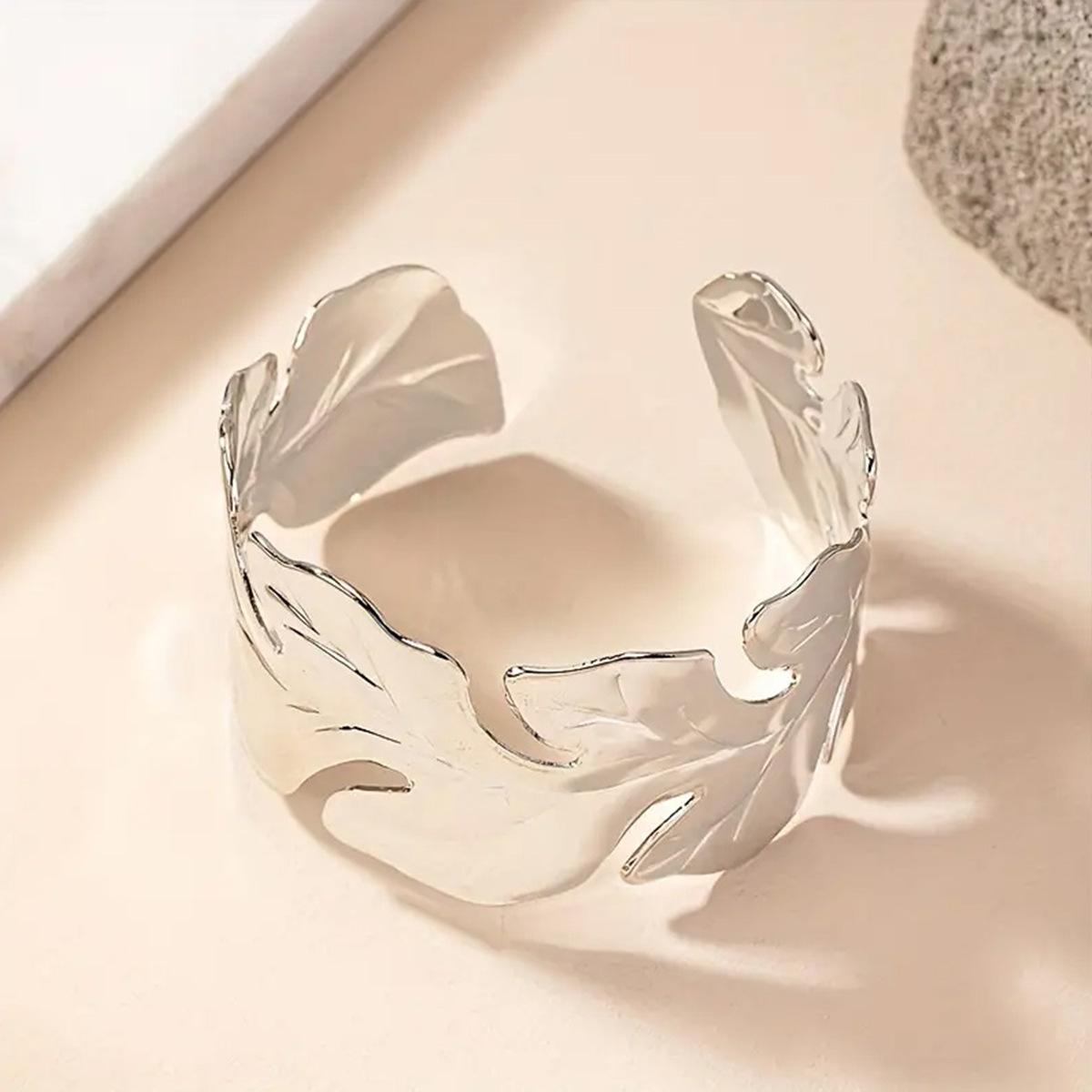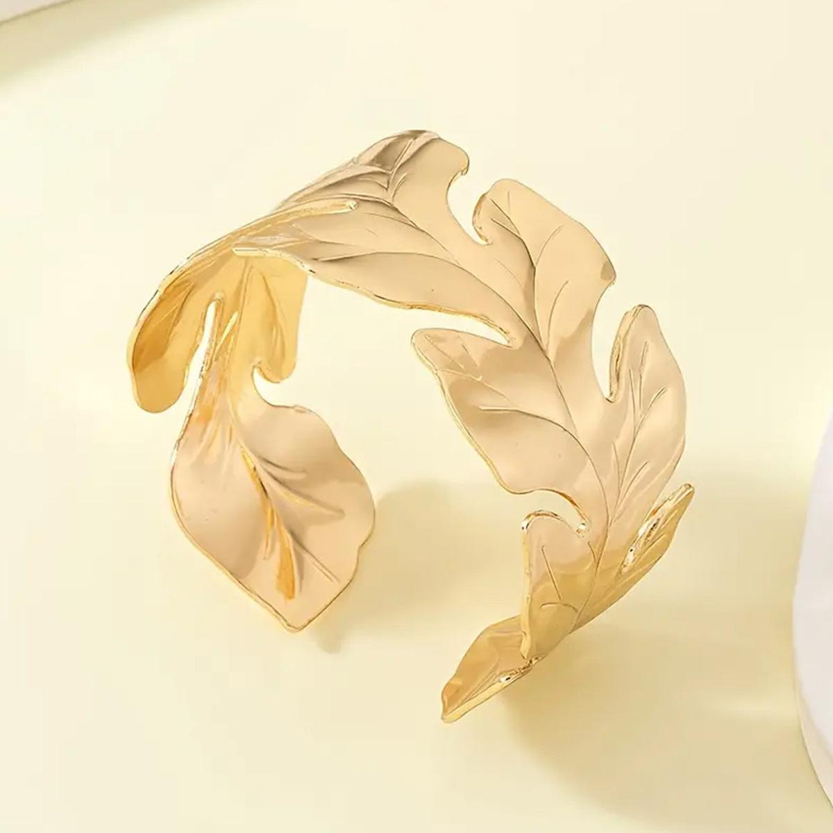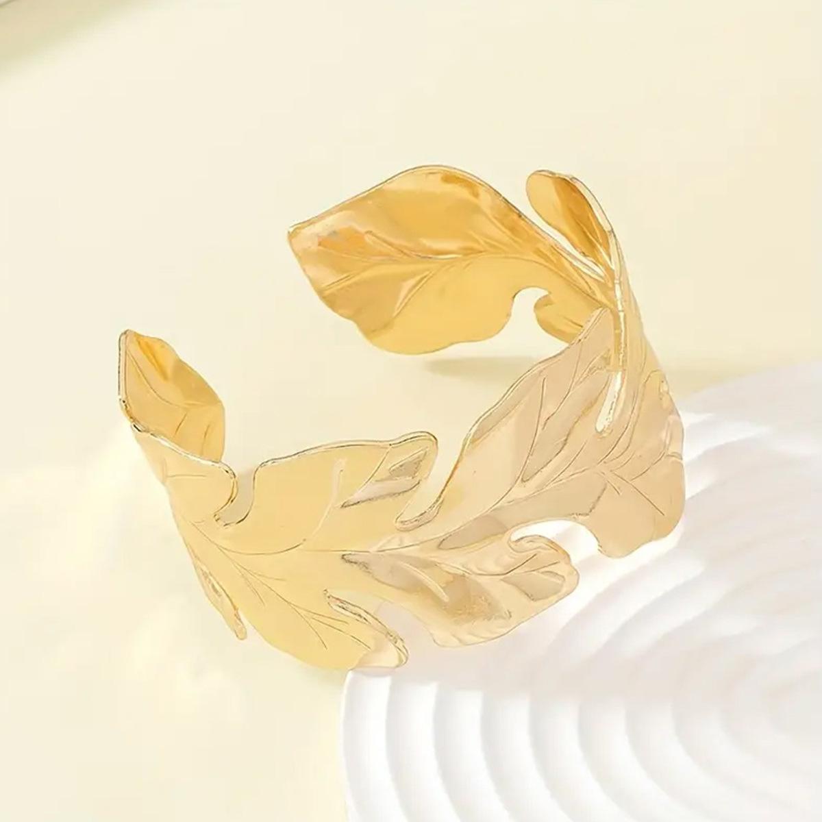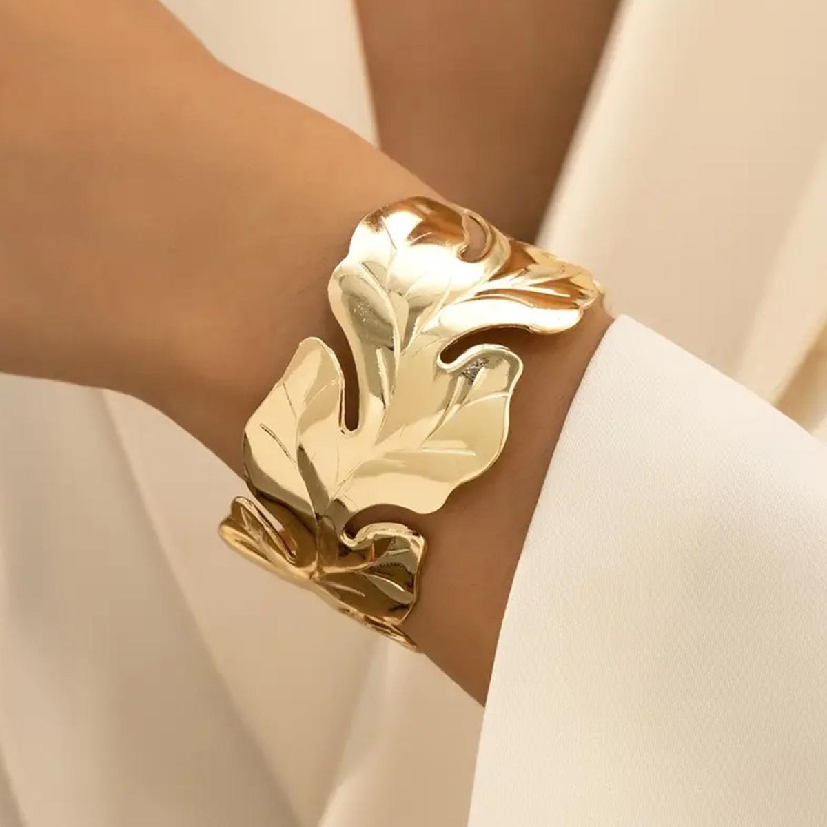 Pulsera Europea y Americana de Lujo Ligero de Alta Gama Hojas Exageradas Abiertas Amplias Pulsera Marca Grande Show Chapado en Oro Joyería Vintage Pulsera