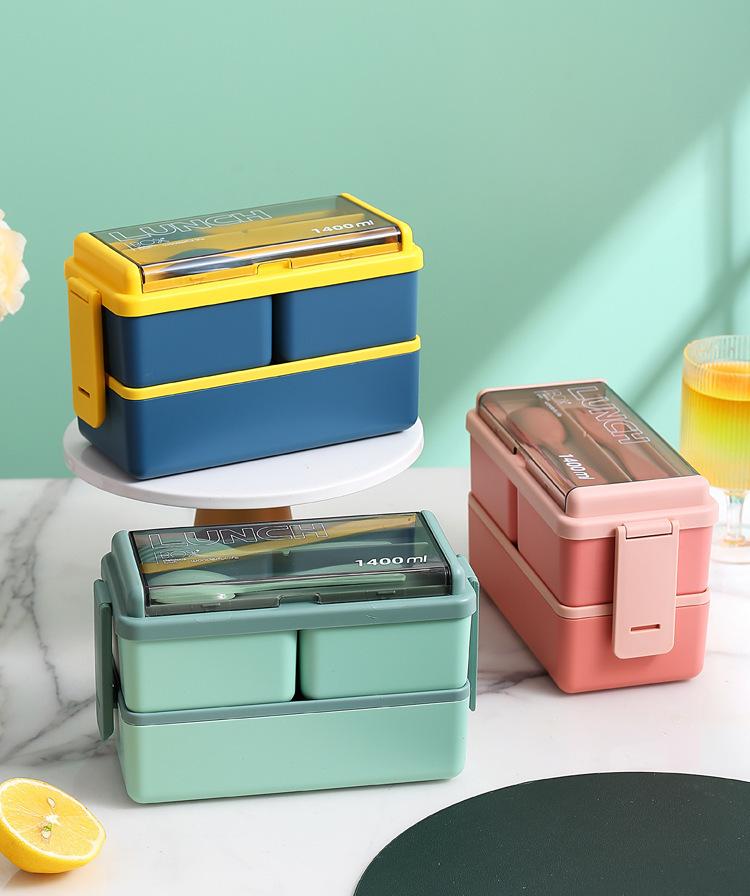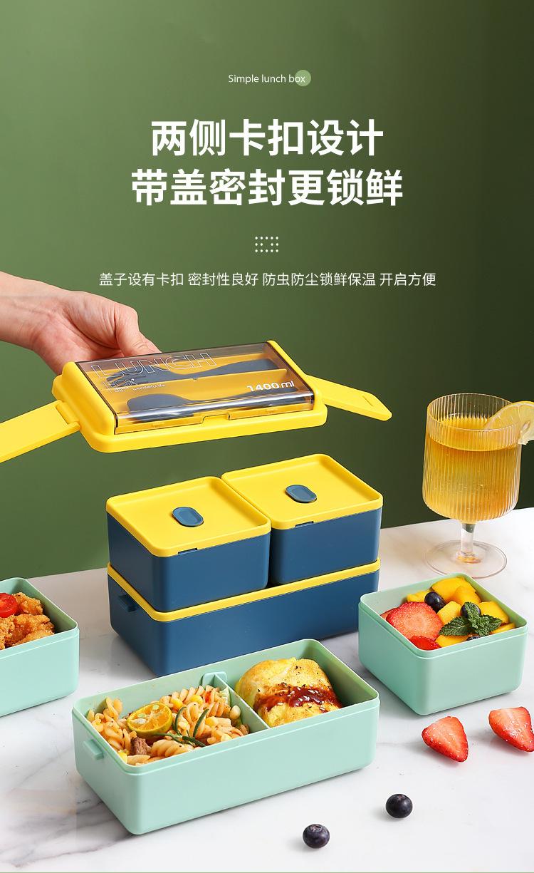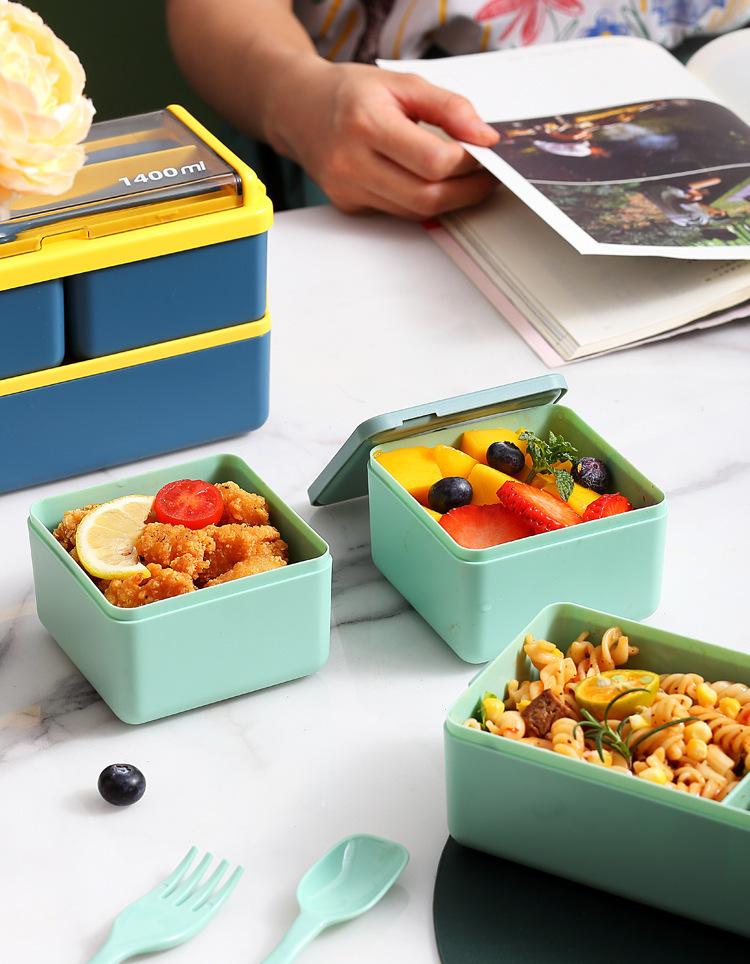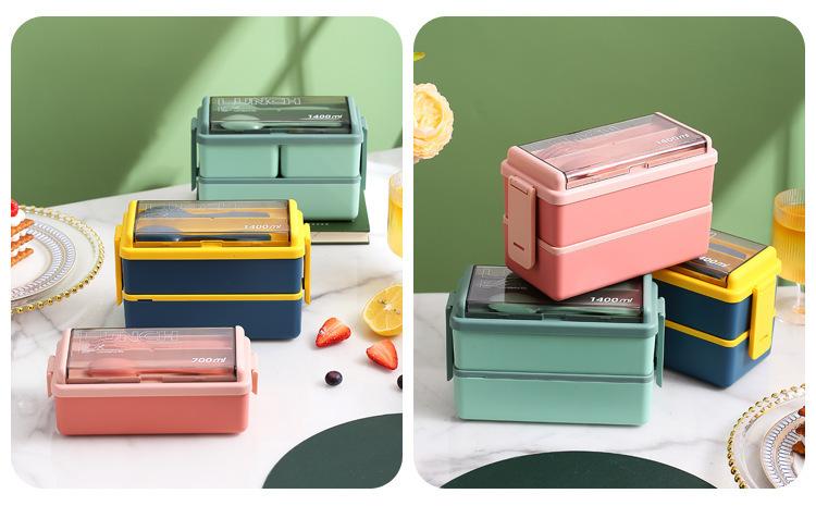 Fiambrera bento de plástico de estilo japonés de una y doble capa, fiambrera con compartimento sellado para microondas, juego de múltiples especificaciones, caja de picnic