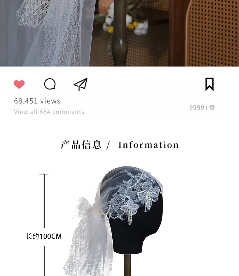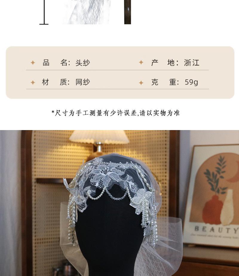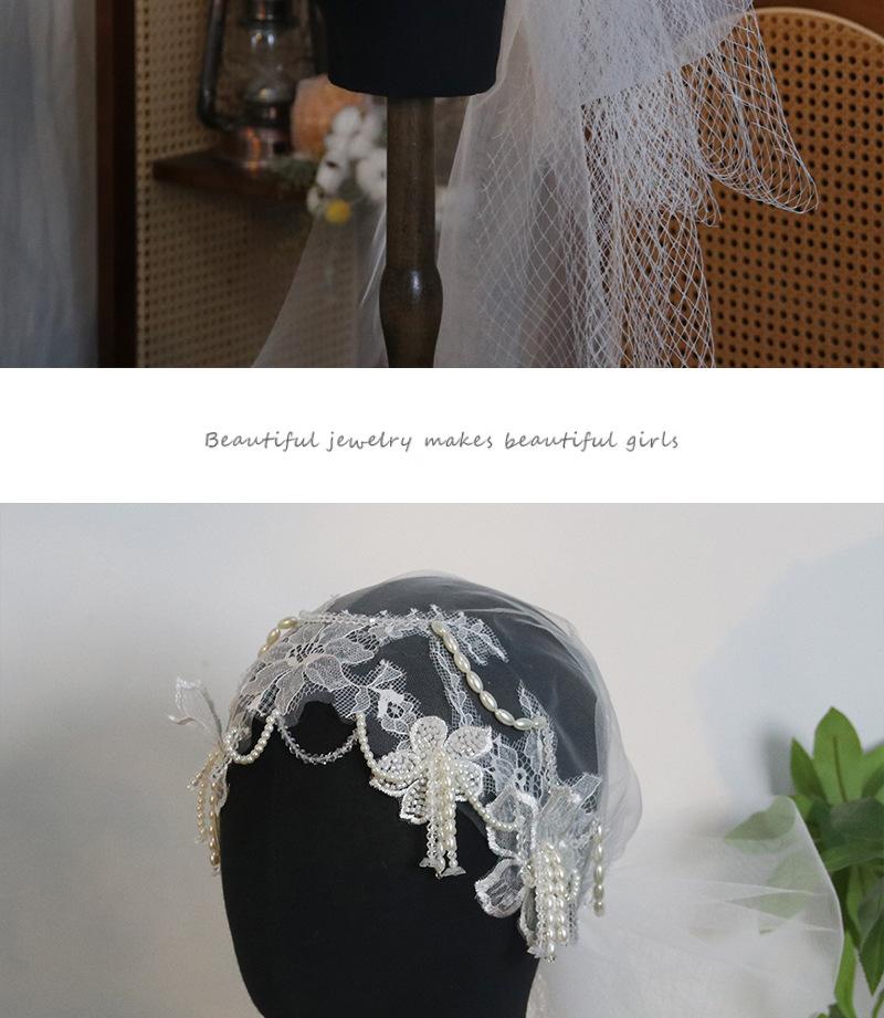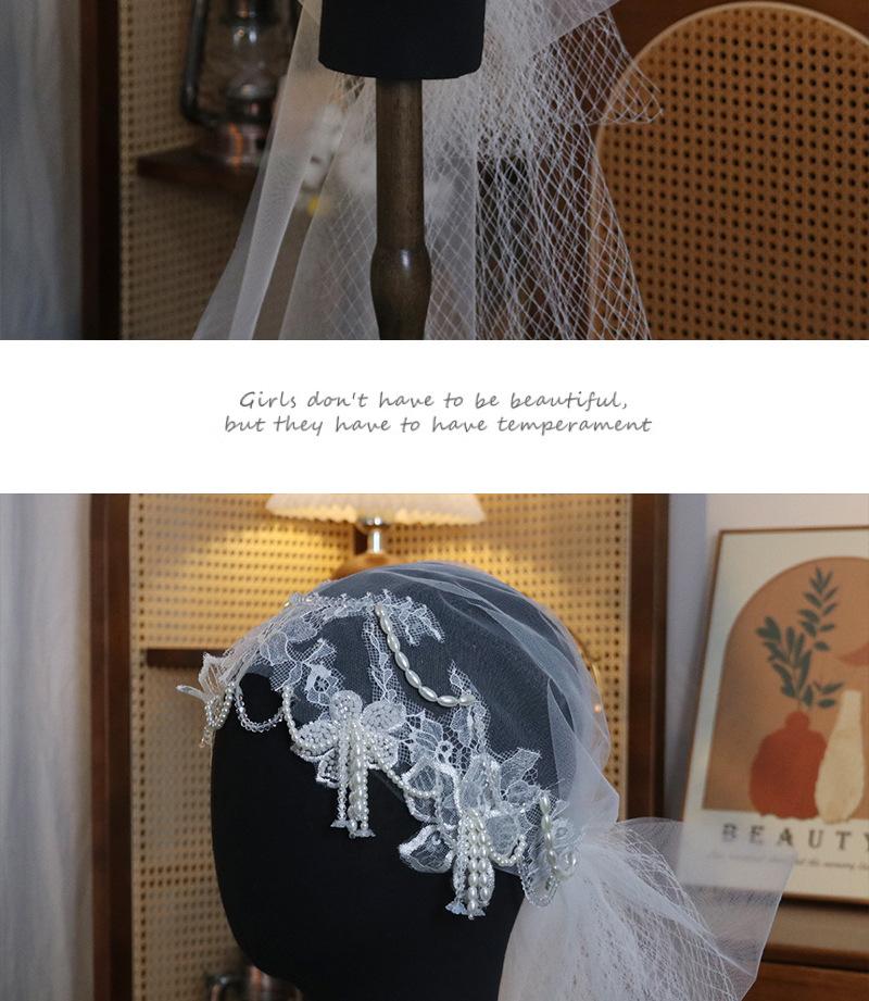 2024 Nuevo Velo de Novia Encaje Retro Perla de Imitación Velo de Cabeza Sombrero Malla Lazo Vestido Adornos para la Cabeza Accesorios
