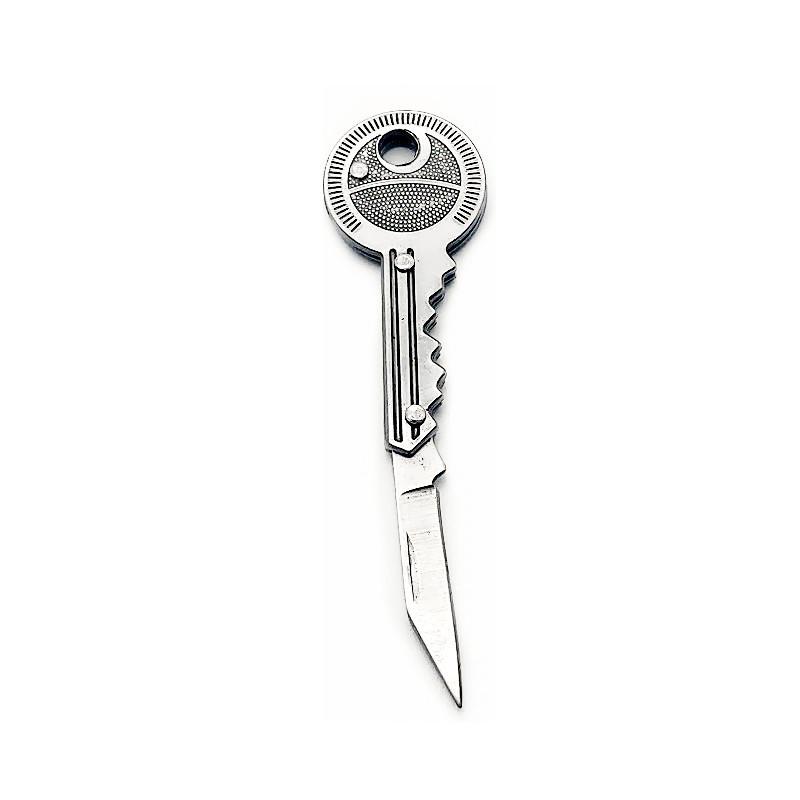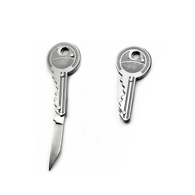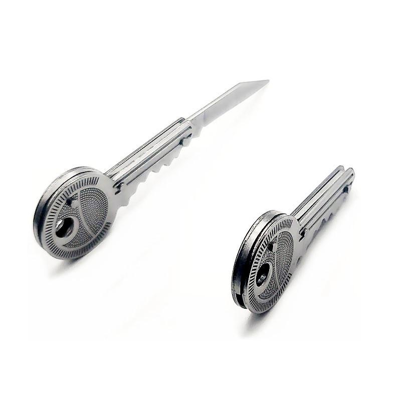Pequeño y portátil, se puede llevar en un llavero para usarlo en cualquier momento. Parece una llave, oculto pero práctico. Se puede usar para supervivencia al aire libre, pelado diario de fruta, apertura de paquetes, etc.