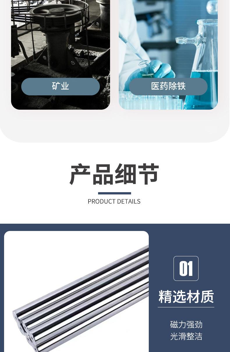 Los fabricantes suministran barras magnéticas, barras magnéticas de NdFeB, barras magnéticas fuertes para la eliminación de hierro, producción de barras magnéticas fuertes de 13000 Gauss
