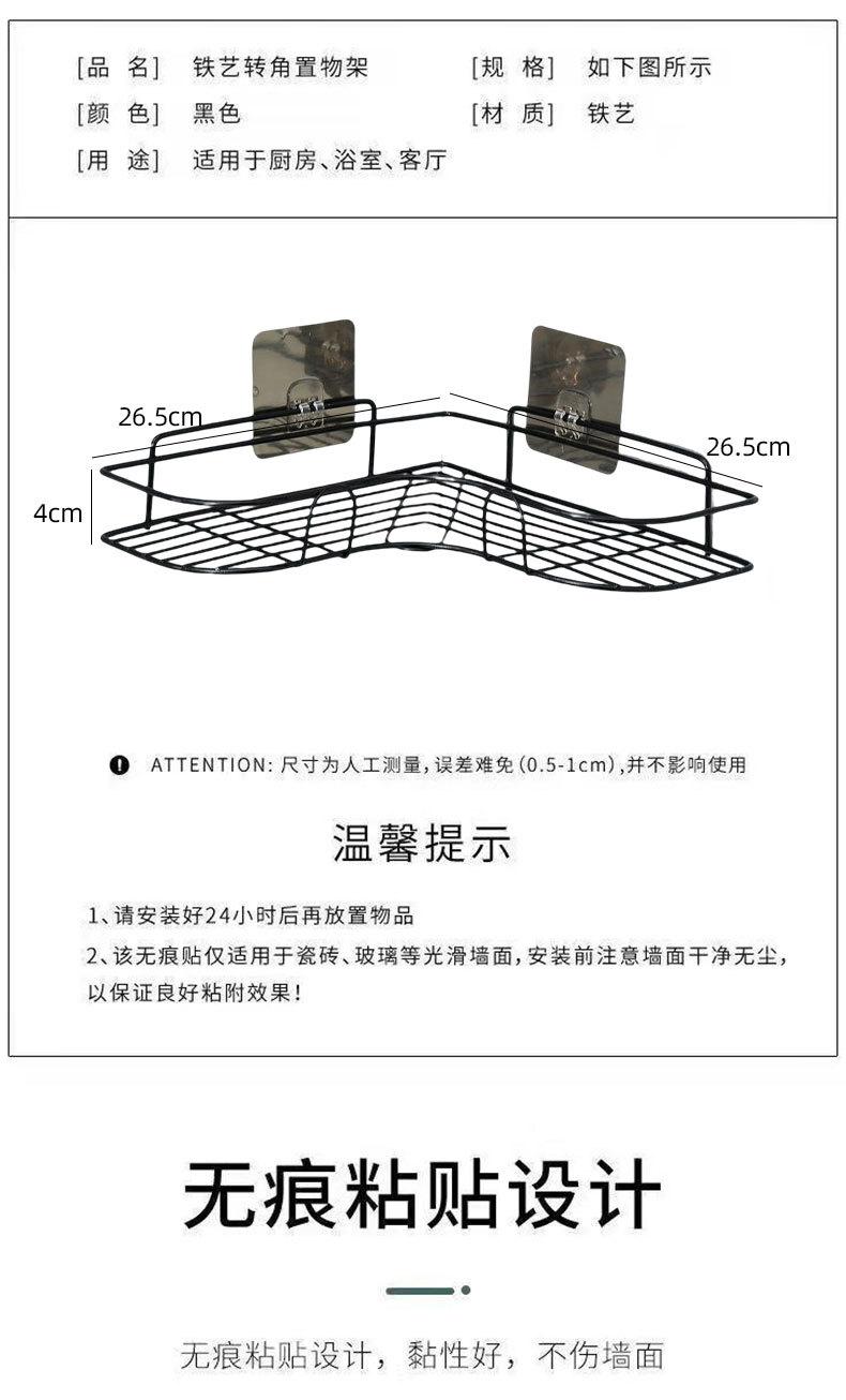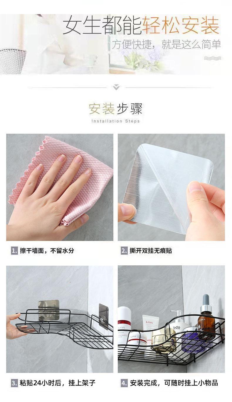 Black triangular storage rack [2 pieces of double hook adhesive sheets]