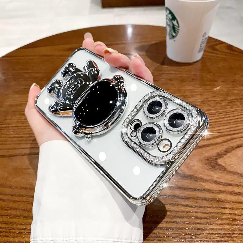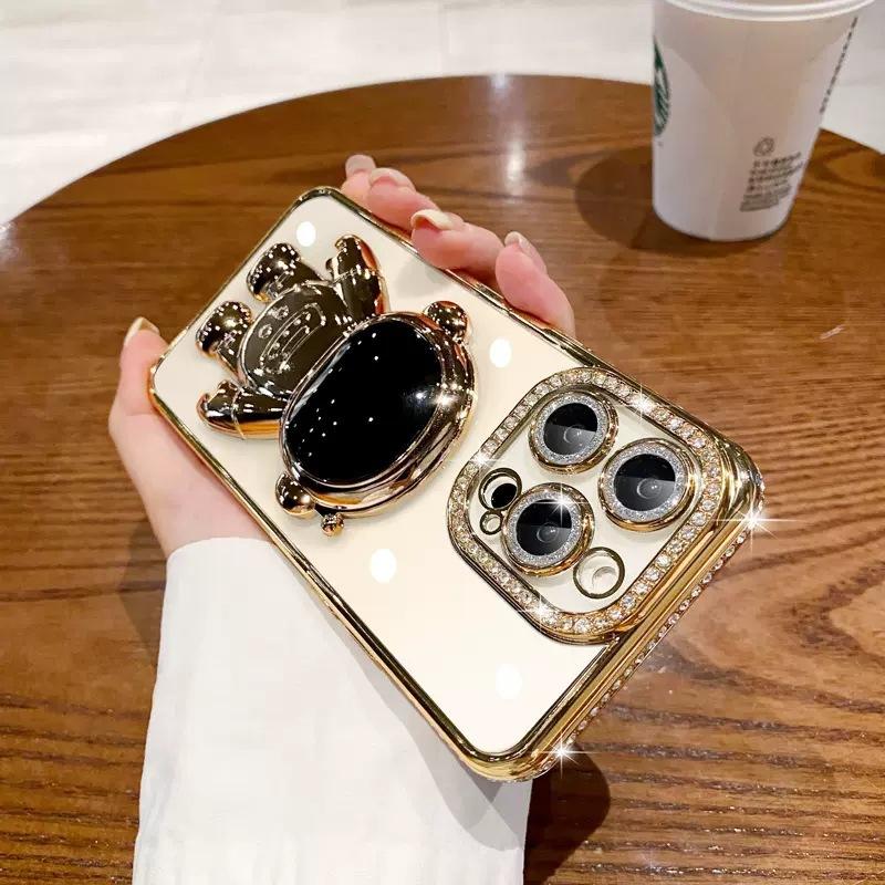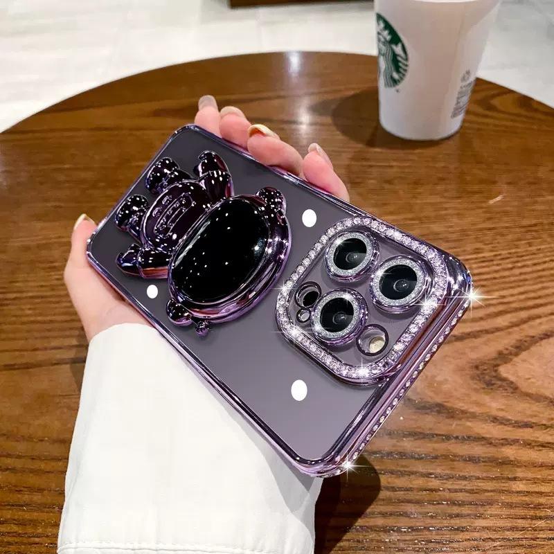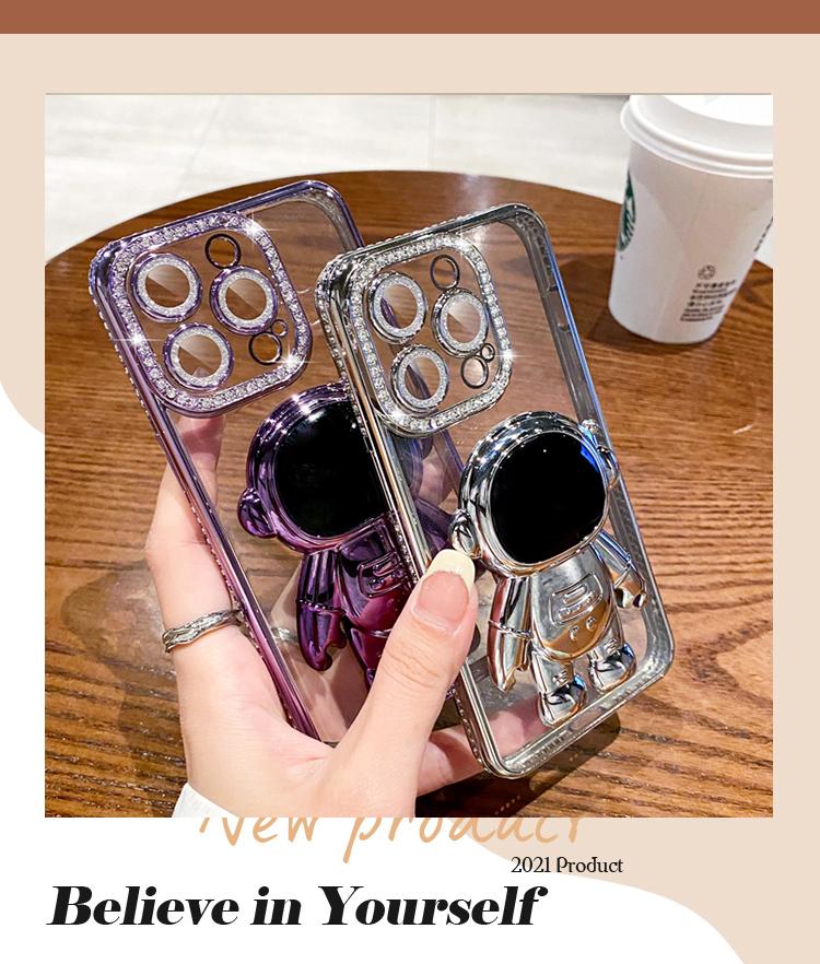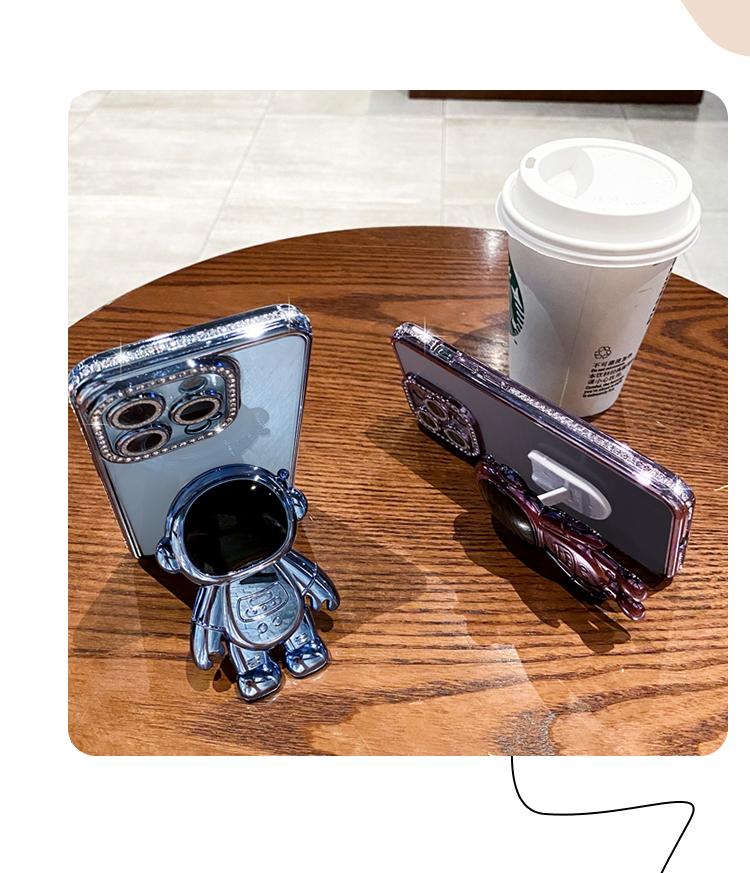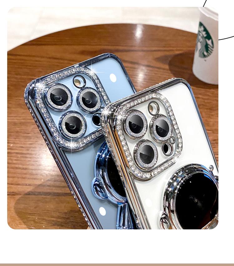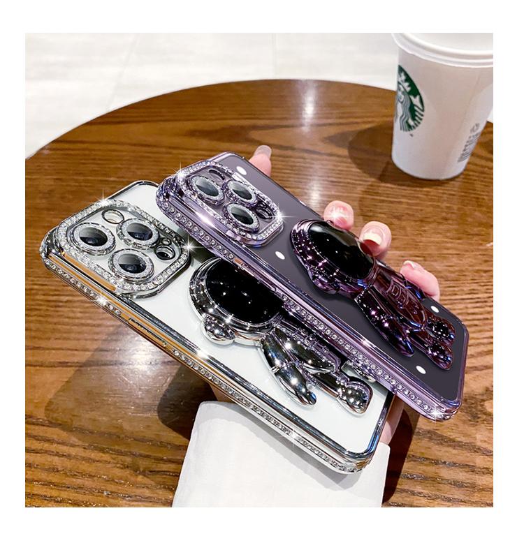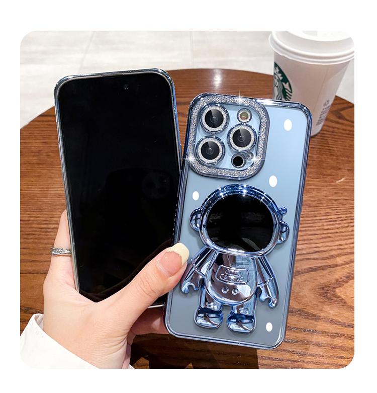 Adecuado para iPhone15 galvanoplastia flash borde taladro astronauta soporte funda para teléfono móvil Apple 14 lente brillante todo incluido 13 juegos