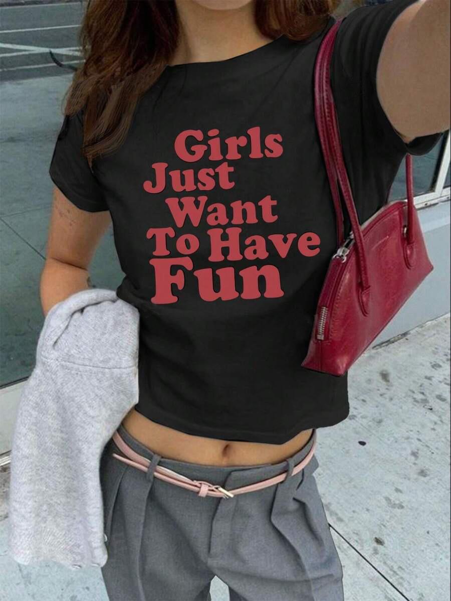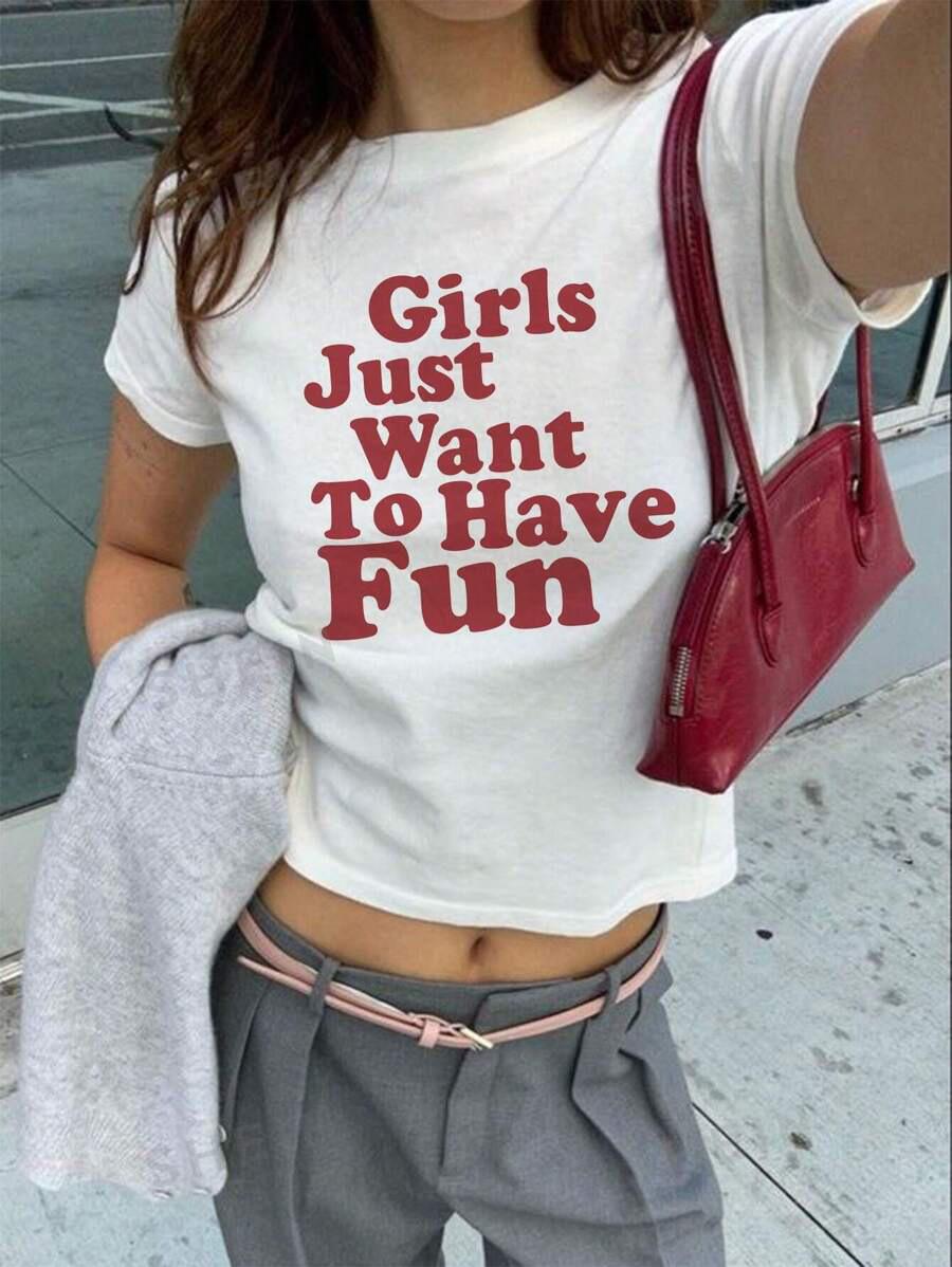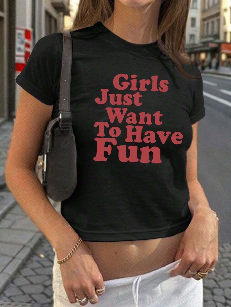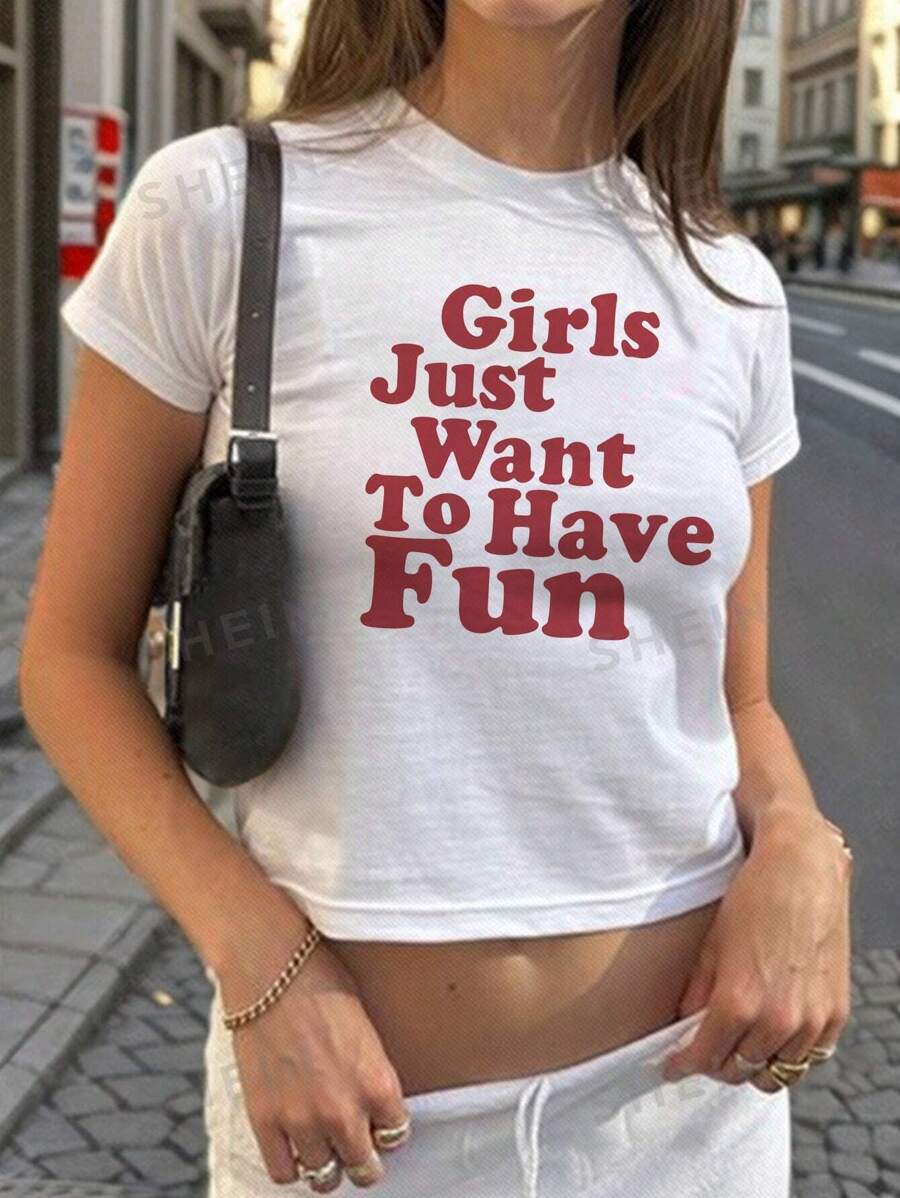 Compra Camiseta de manga corta con letras y corte entallado para mujer, estilo verano 2024 al por mayor en Joom.pro