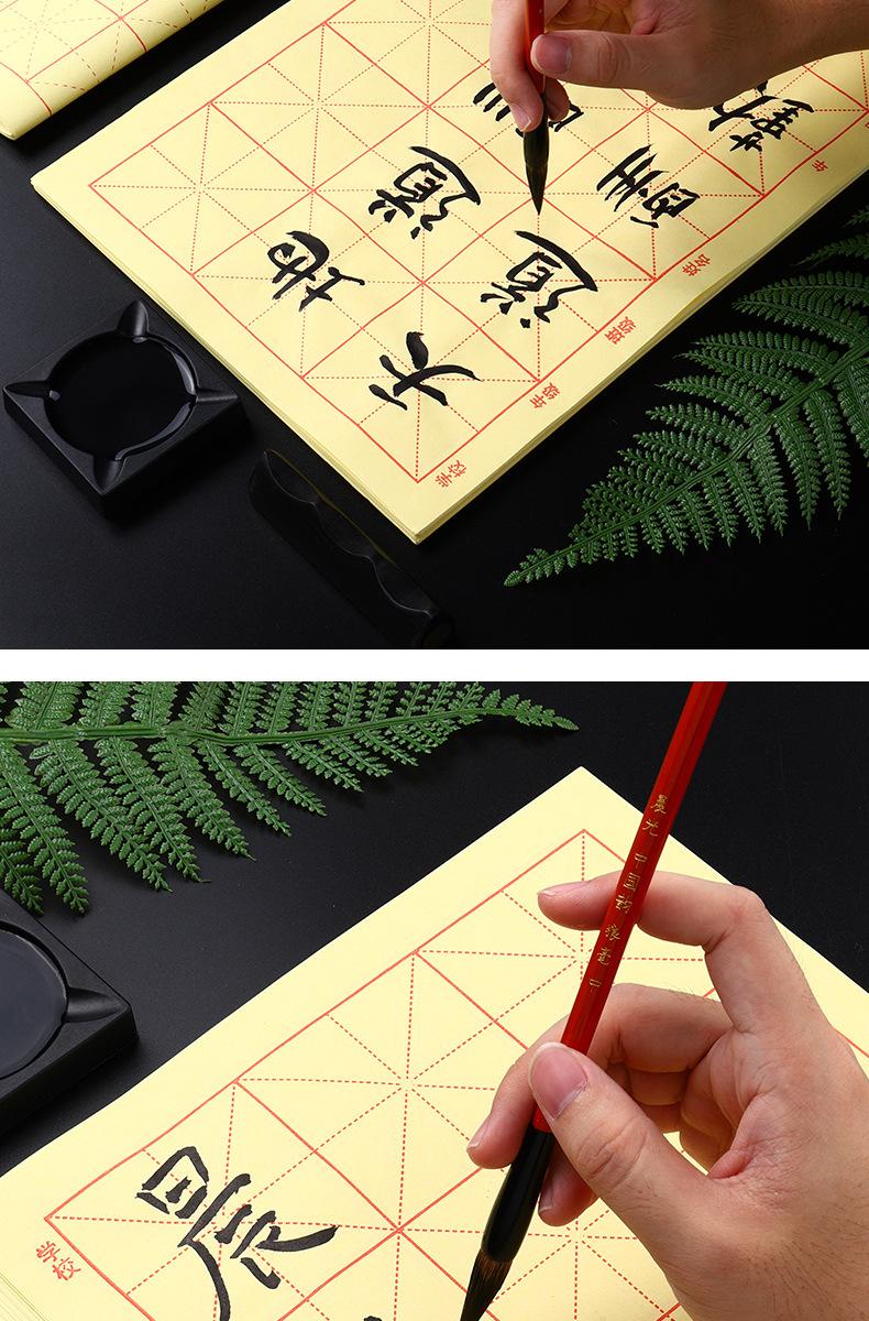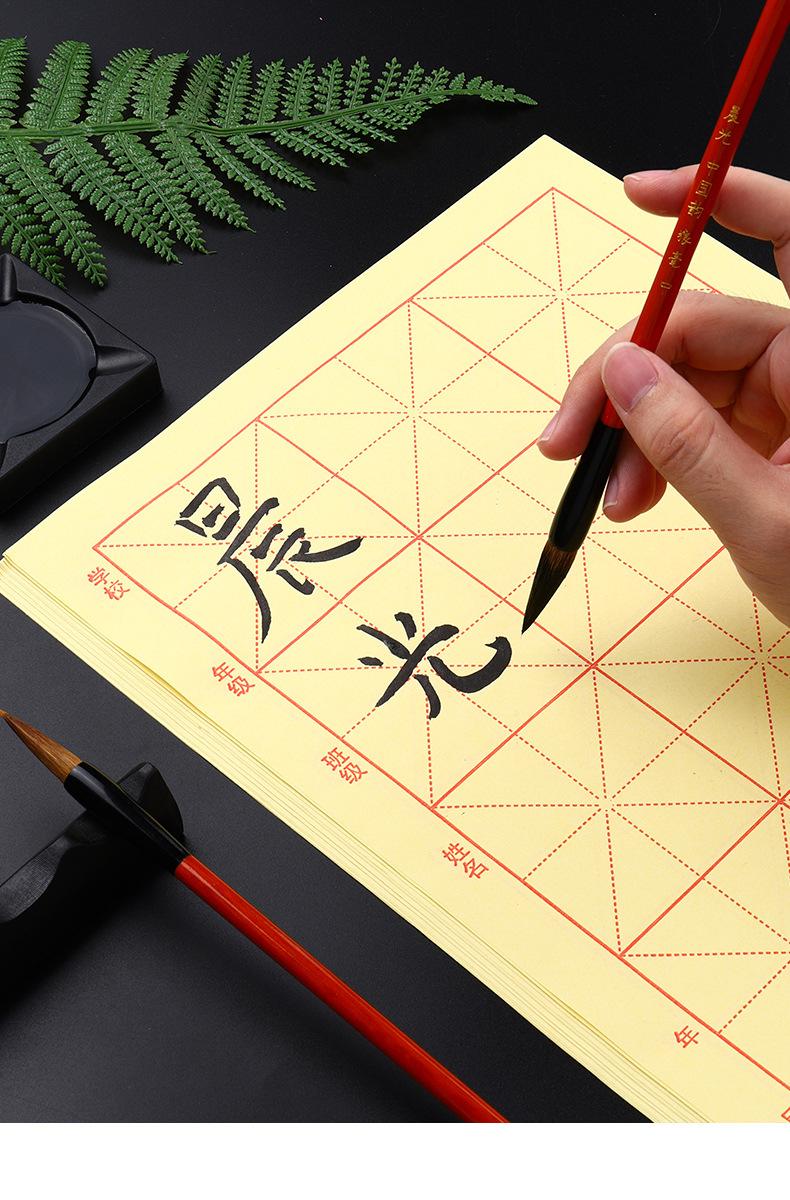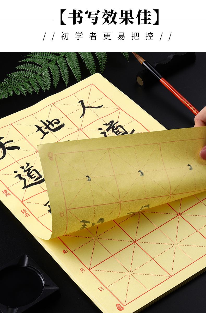 Papel de Borde Crudo Papel de Práctica de Caligrafía para Estudiantes Amarillo Hecho a Mano Papel de Práctica 12 Cuadrículas Papel Xuan 15 Cuadrículas