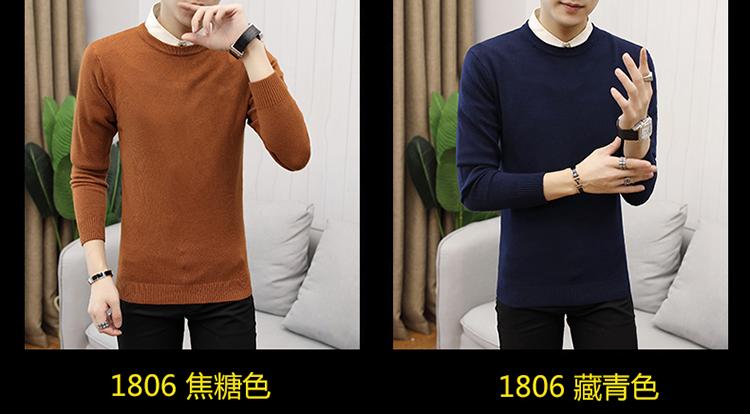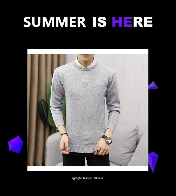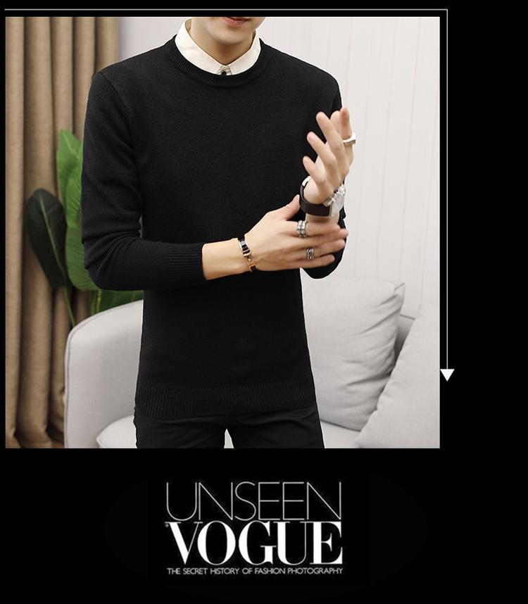 Suéter de cuello redondo y manga larga para hombre, estilo coreano, ajustado, sencillo, de color sólido, otoño 2020