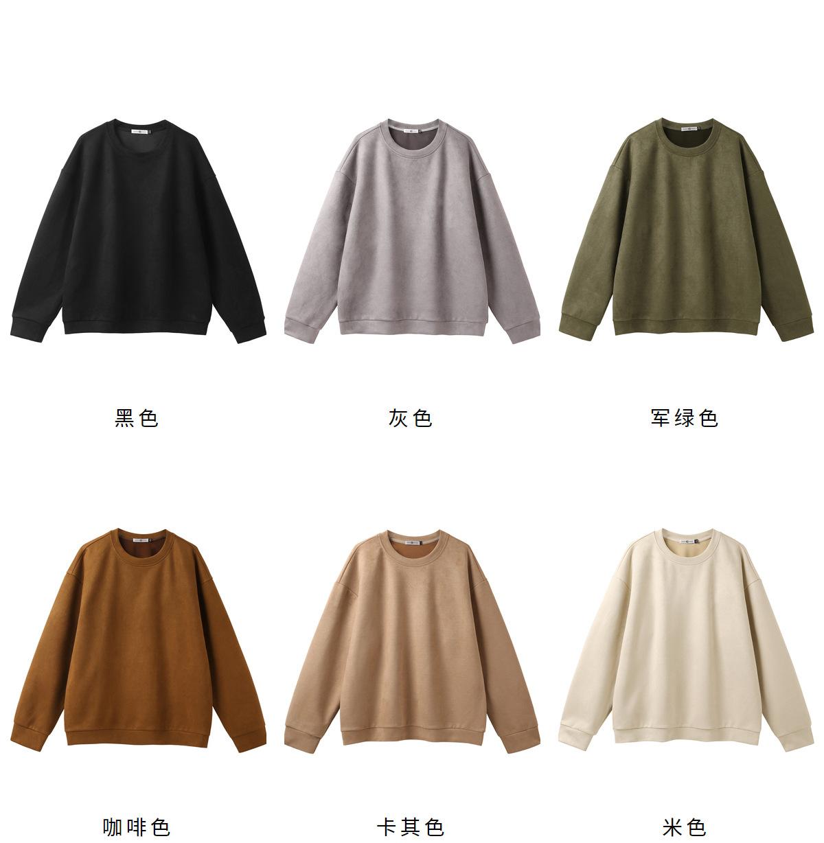 2024 Nuevo Otoño e Invierno Sudadera de Ante Holgada de Color Puro con Cuello Redondo para Hombre Talla Grande Moda Casual Top Deportivo para Hombre